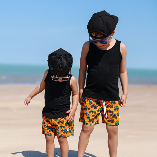 Choose a swim trunk, add a matching towel or hat for bundle savings.
