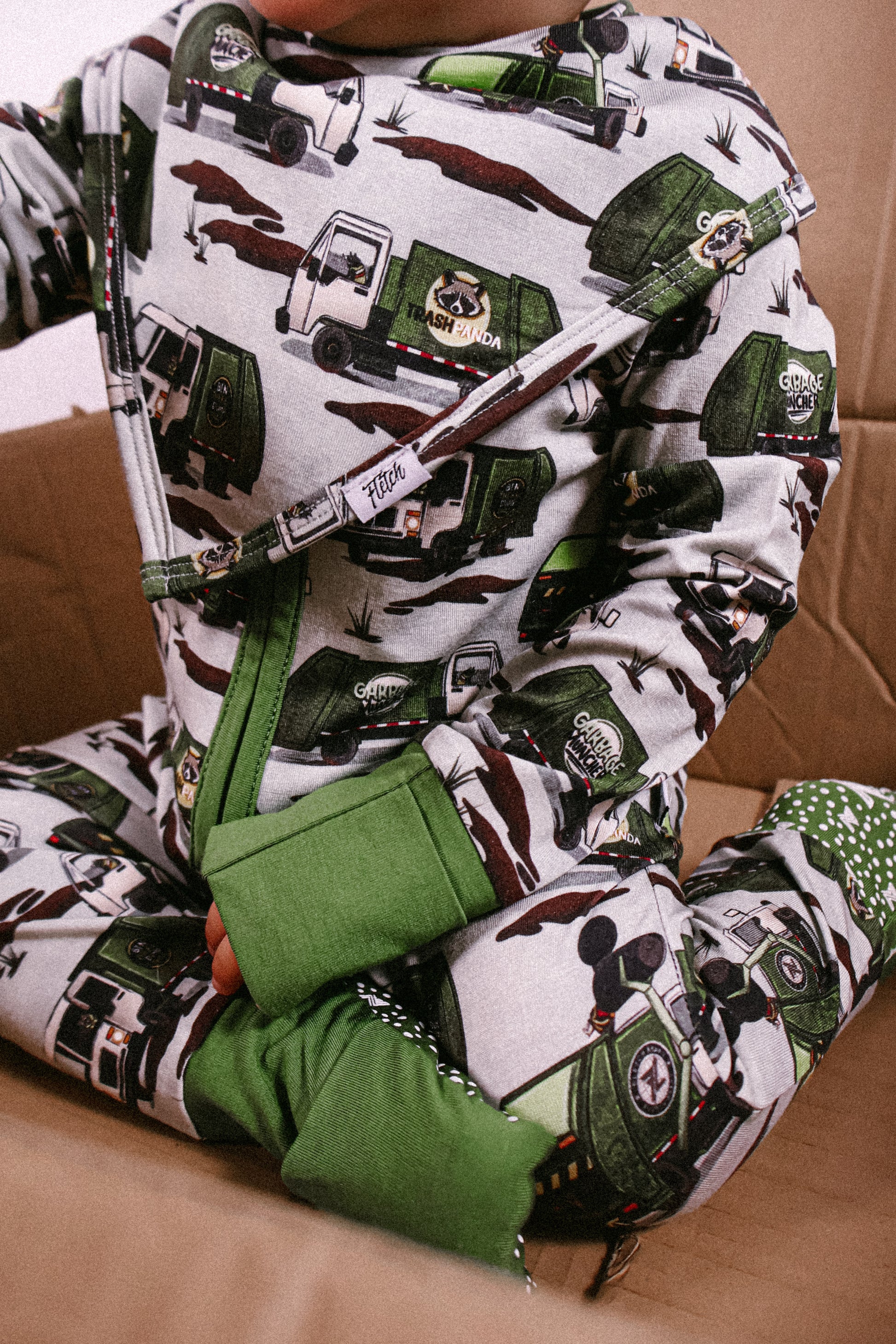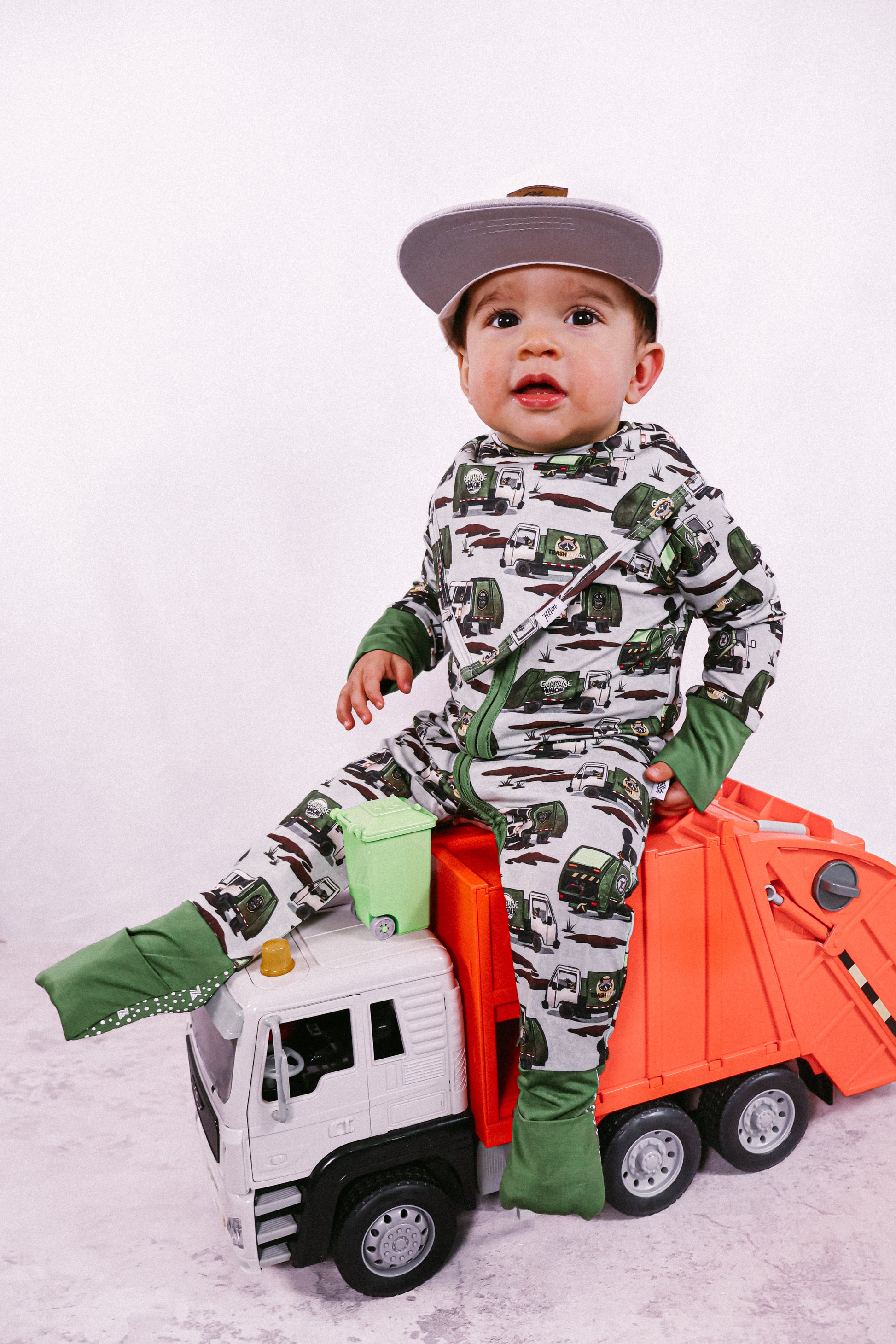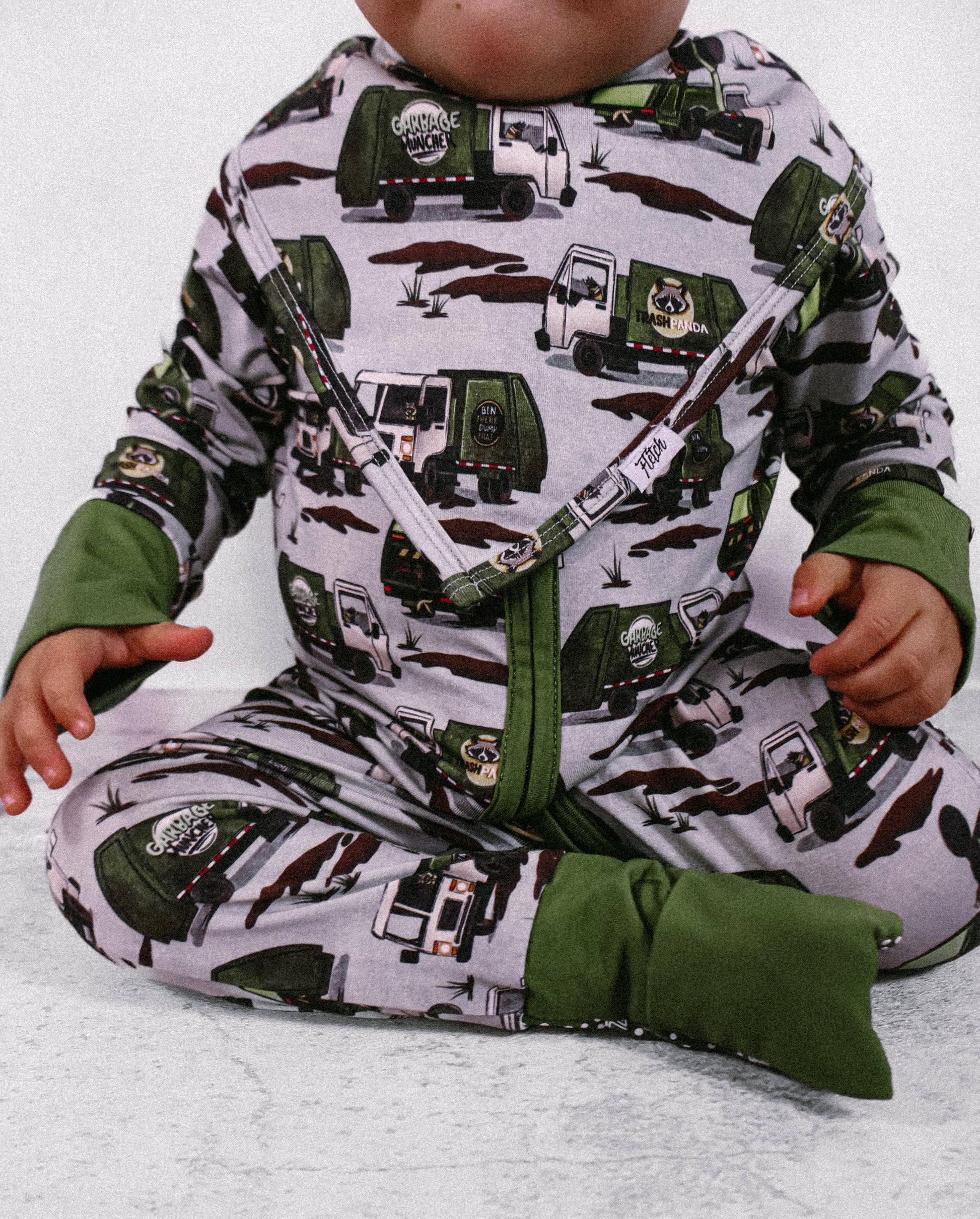 This print celebrates our everyday heroes - featuring green trash trucks we all know our kiddos can’t wait to see once a week, but this time, your hero is there daily. Wave to the garbage man (or is it a racoon!?) in this Bin There Dump That design.