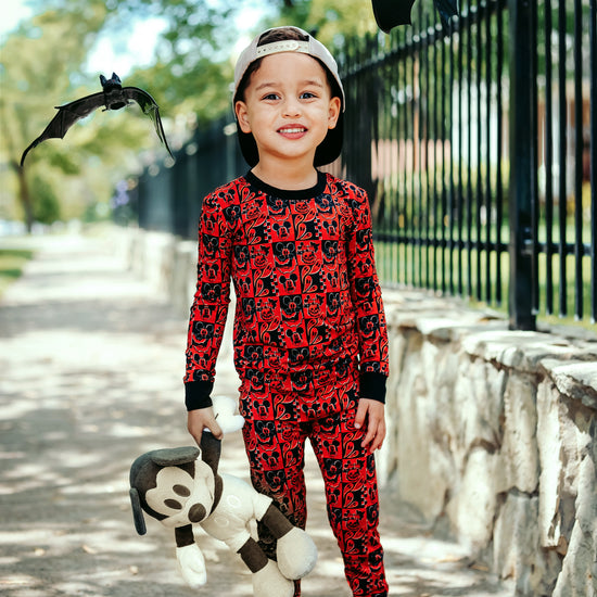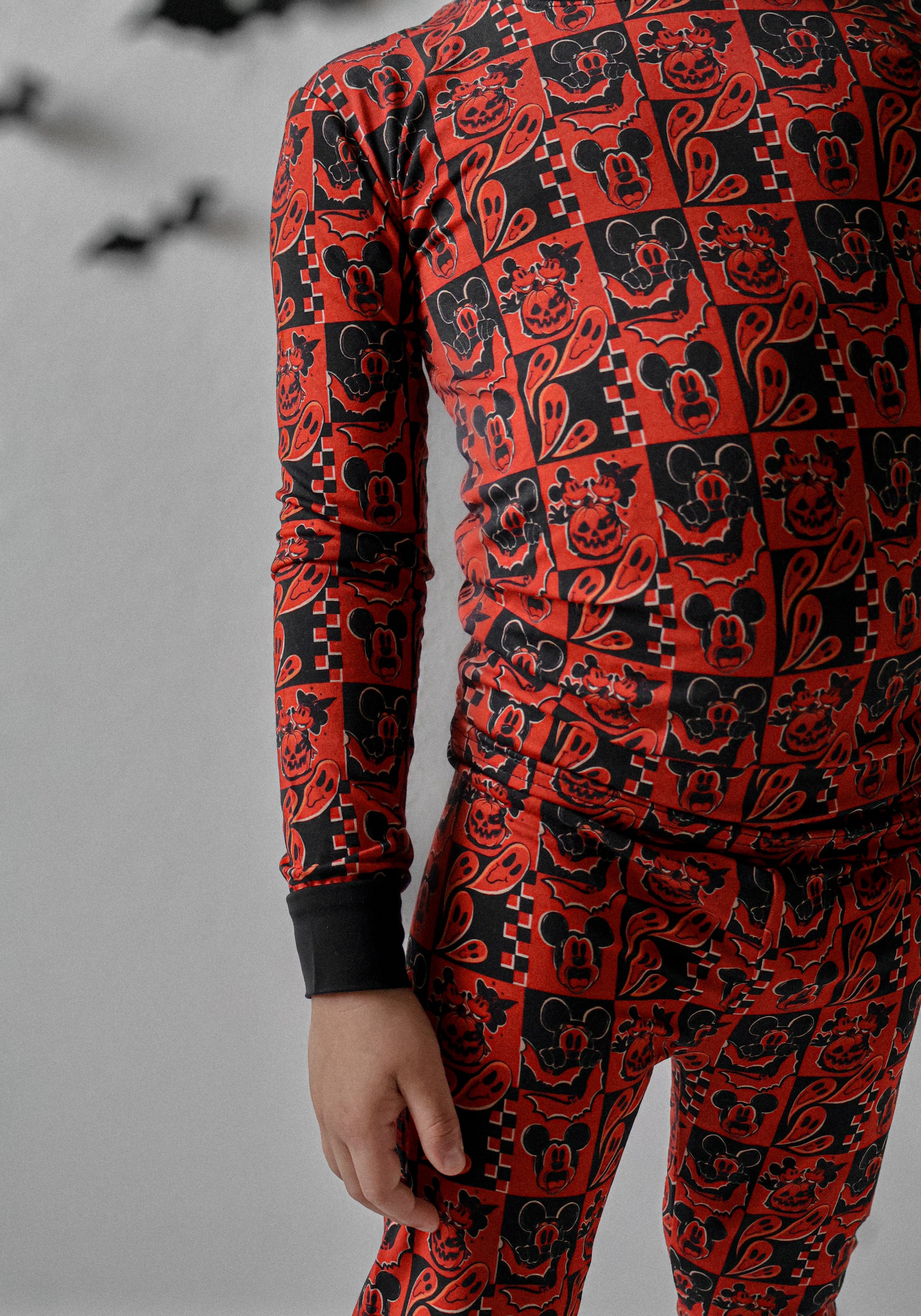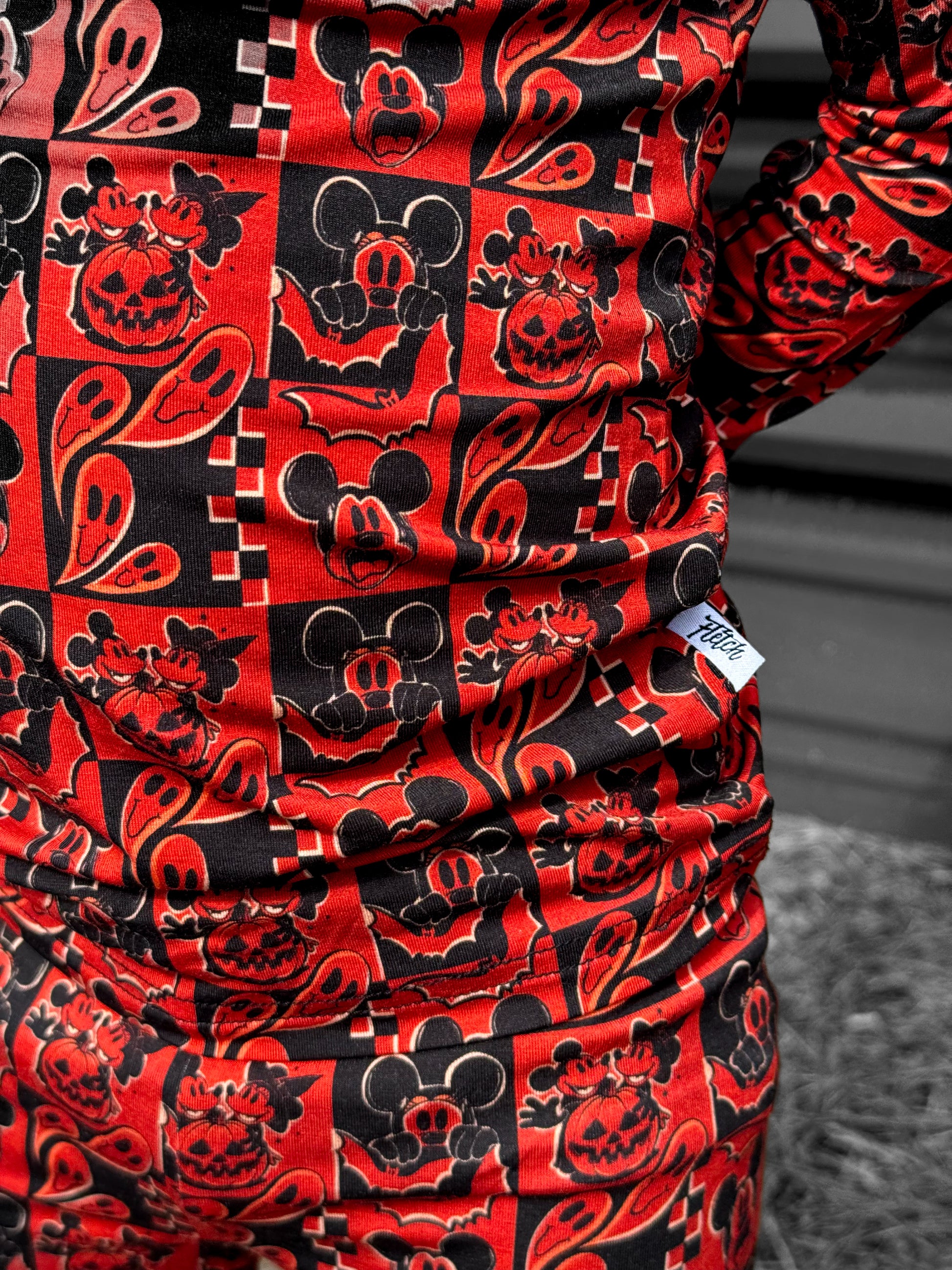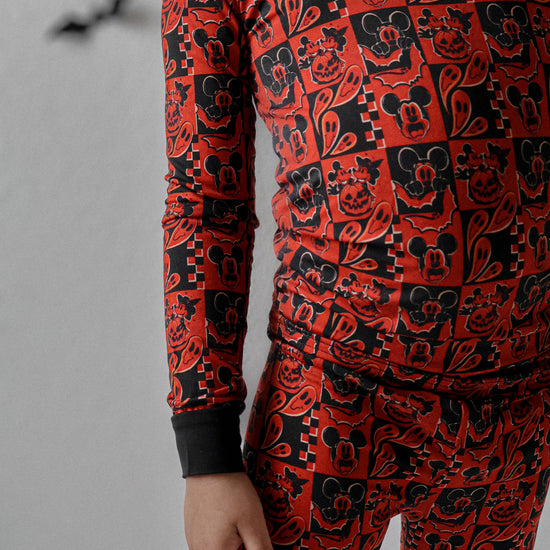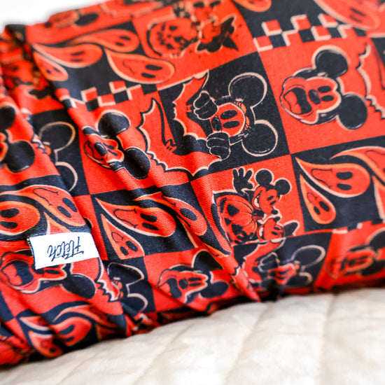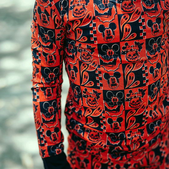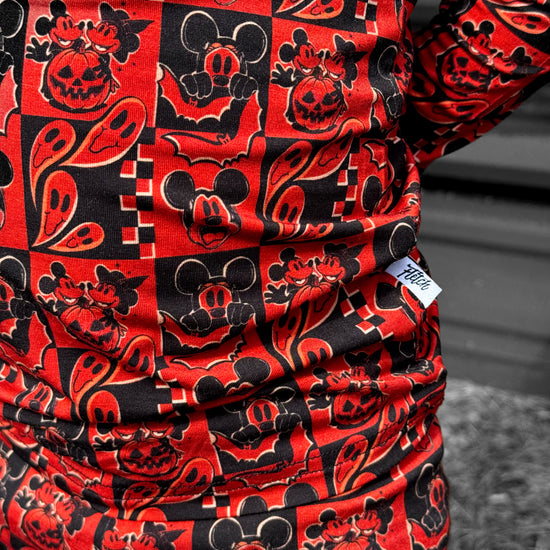 This print features our favorite cartoon mouses alongside their special Halloween moments. There are pumpkin heads mixed with classic jack-o'-lantern faces, spooky ghosts, and rad bats. This design creates the most epic spooky combo that's perfect for your thrill-seeking babe.