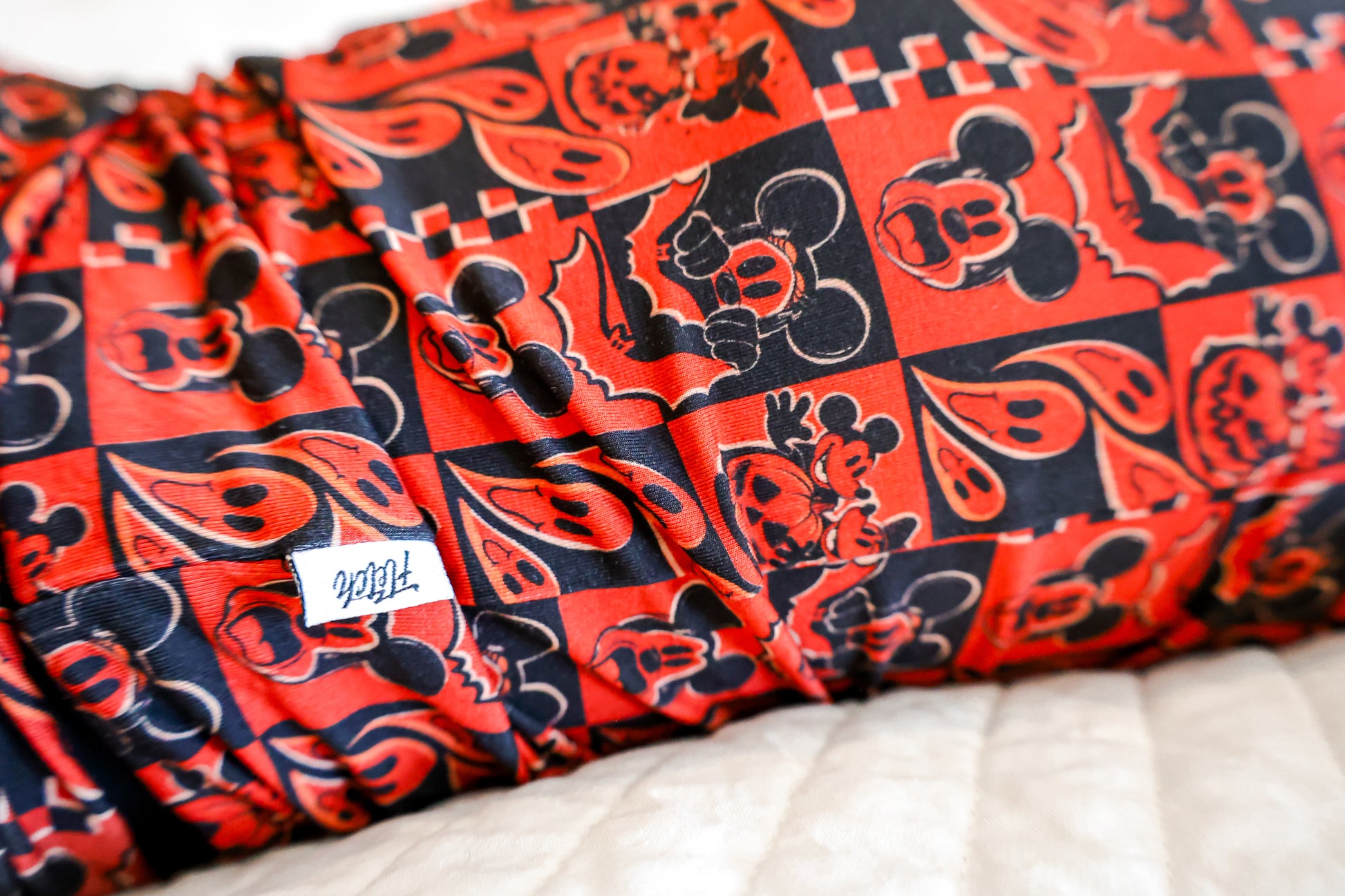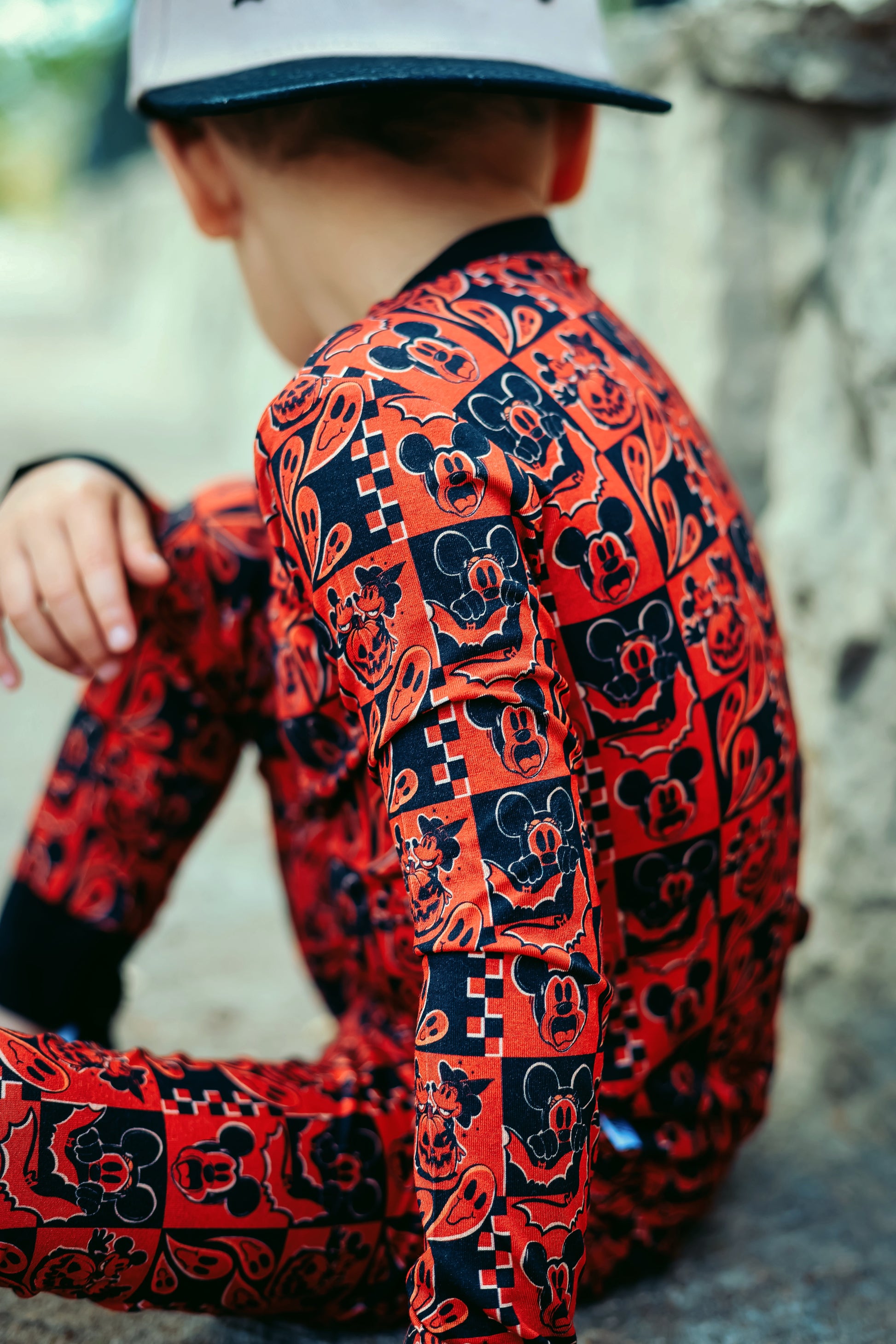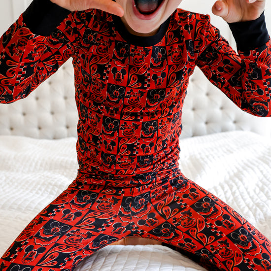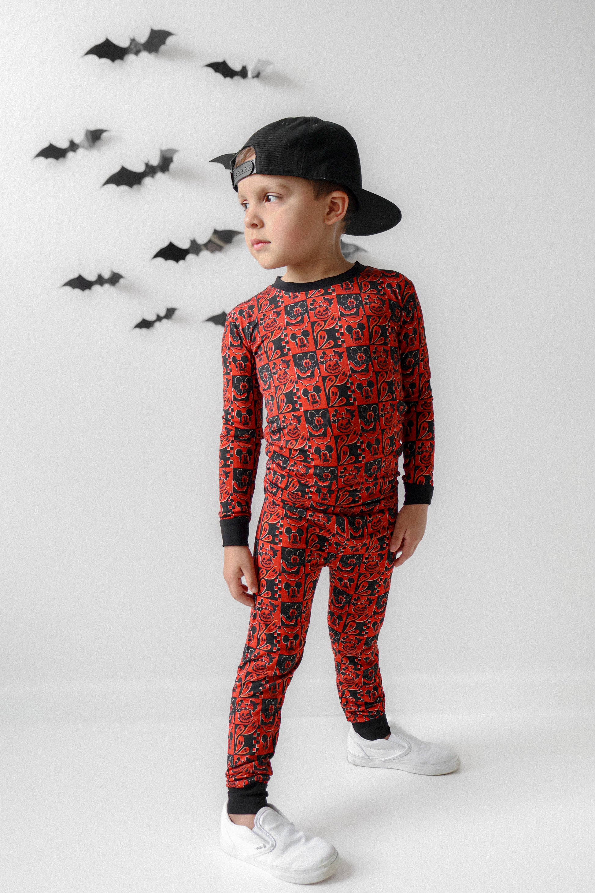 This print features our favorite cartoon mouses alongside their special Halloween moments. There are pumpkin heads mixed with classic jack-o'-lantern faces, spooky ghosts, and rad bats. This design creates the most epic spooky combo that's perfect for your thrill-seeking babe.