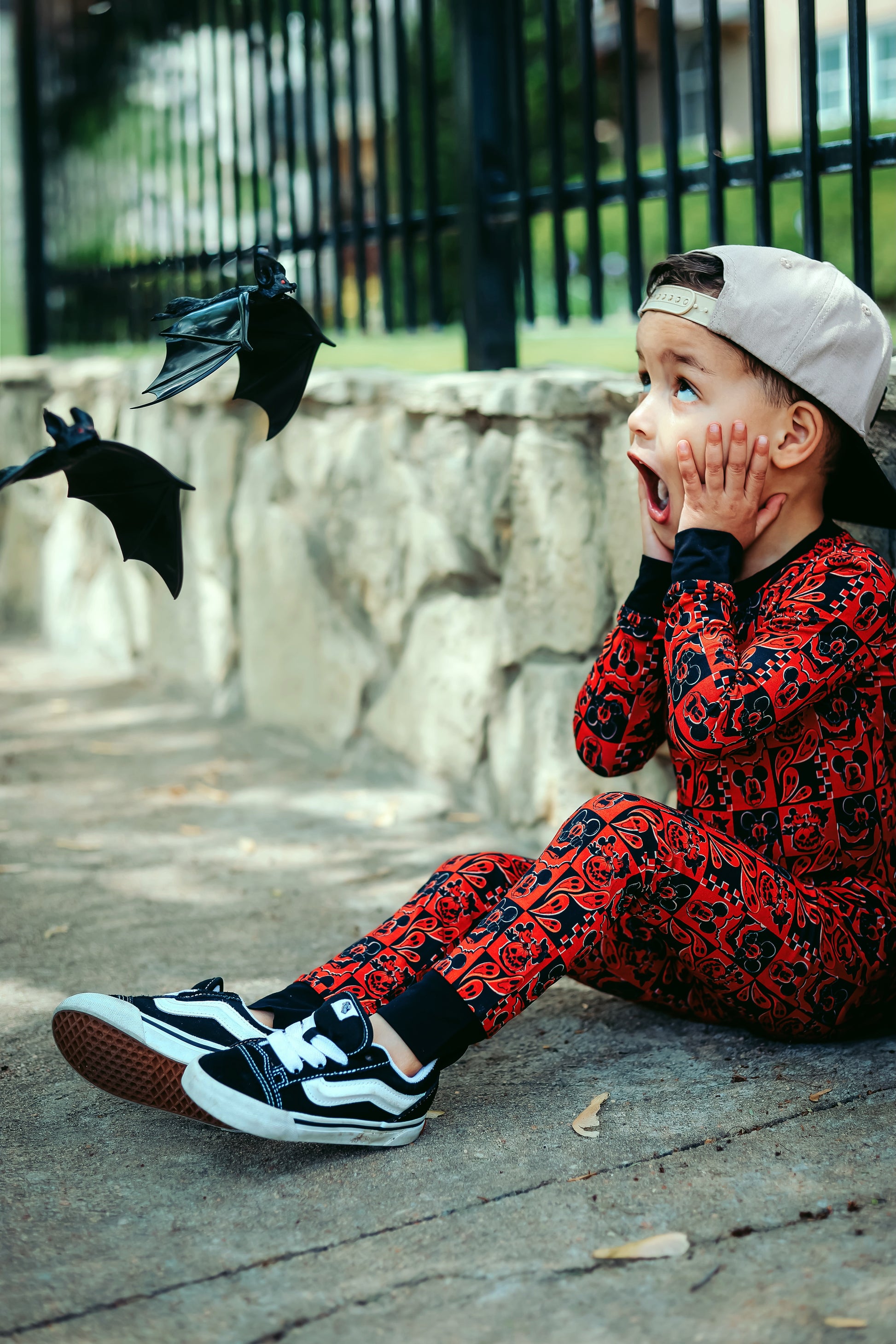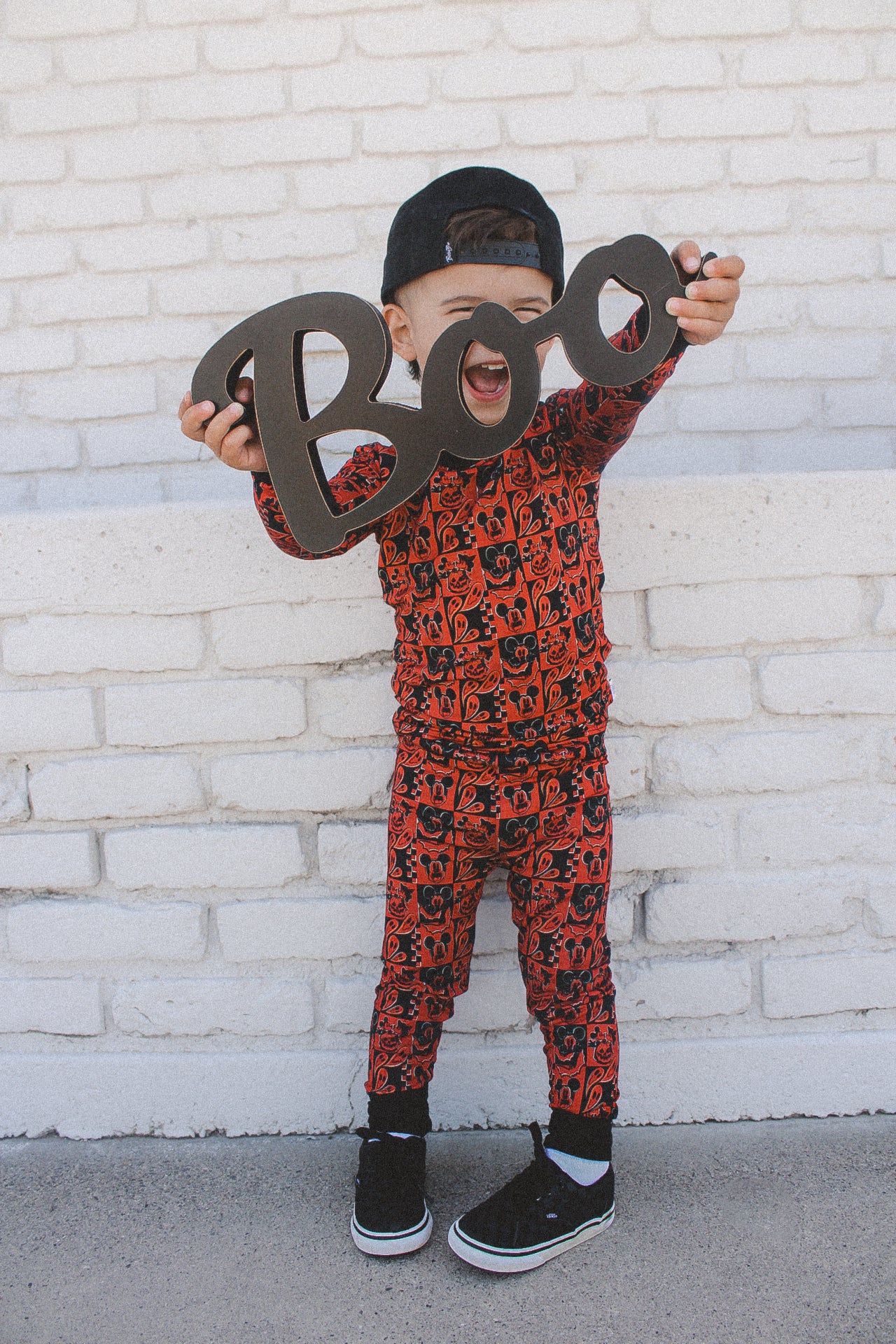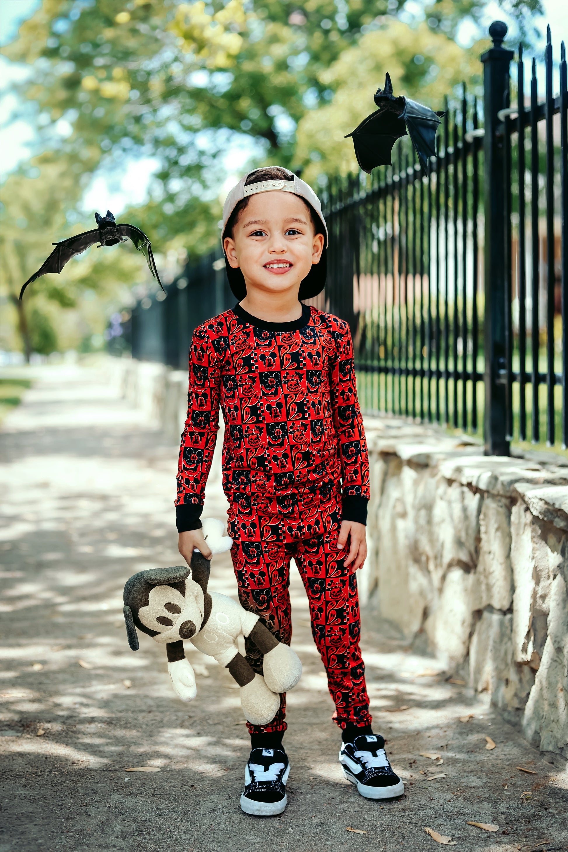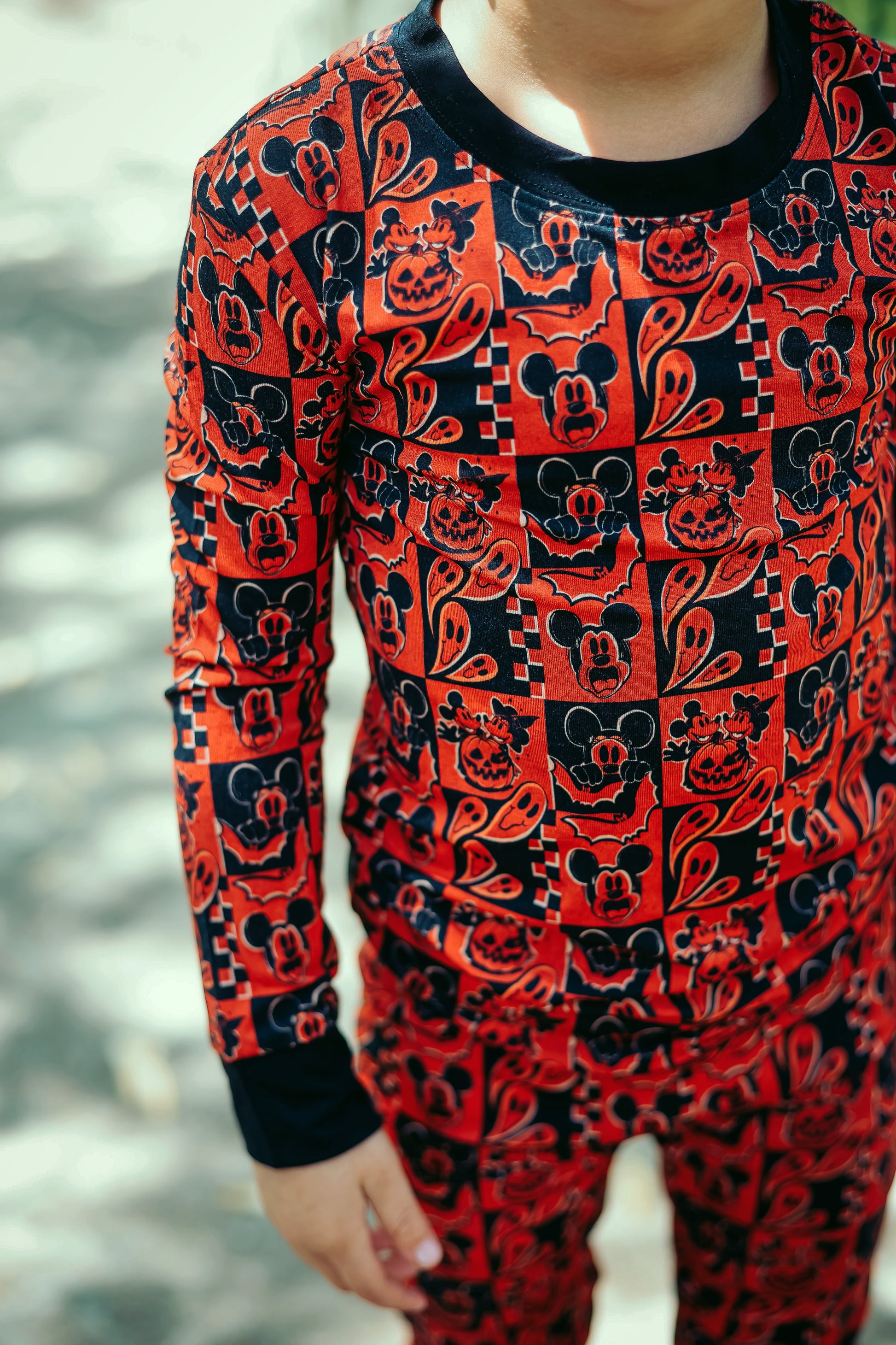 This print features our favorite cartoon mouses alongside their special Halloween moments. There are pumpkin heads mixed with classic jack-o'-lantern faces, spooky ghosts, and rad bats. This design creates the most epic spooky combo that's perfect for your thrill-seeking babe.