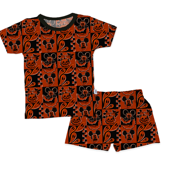 This print features our favorite cartoon mouses alongside their special Halloween moments. There are pumpkin heads mixed with classic jack-o'-lantern faces, spooky ghosts, and rad bats. This design creates the most epic spooky combo that's perfect for your thrill-seeking babe.