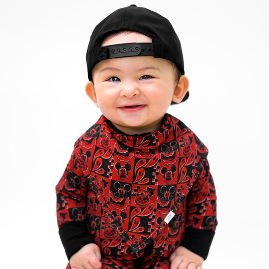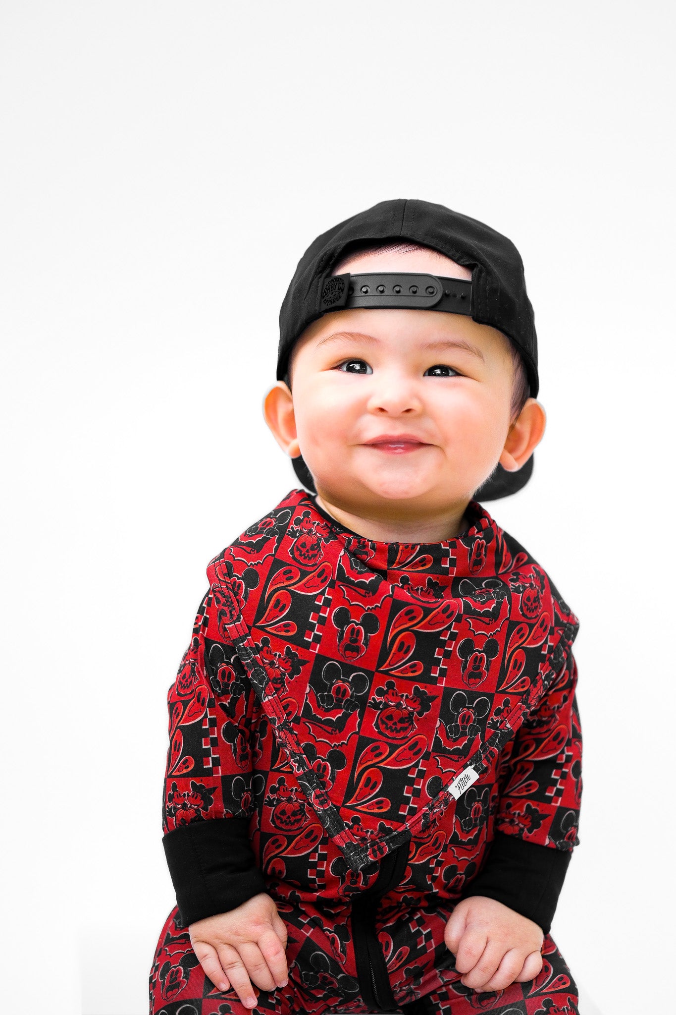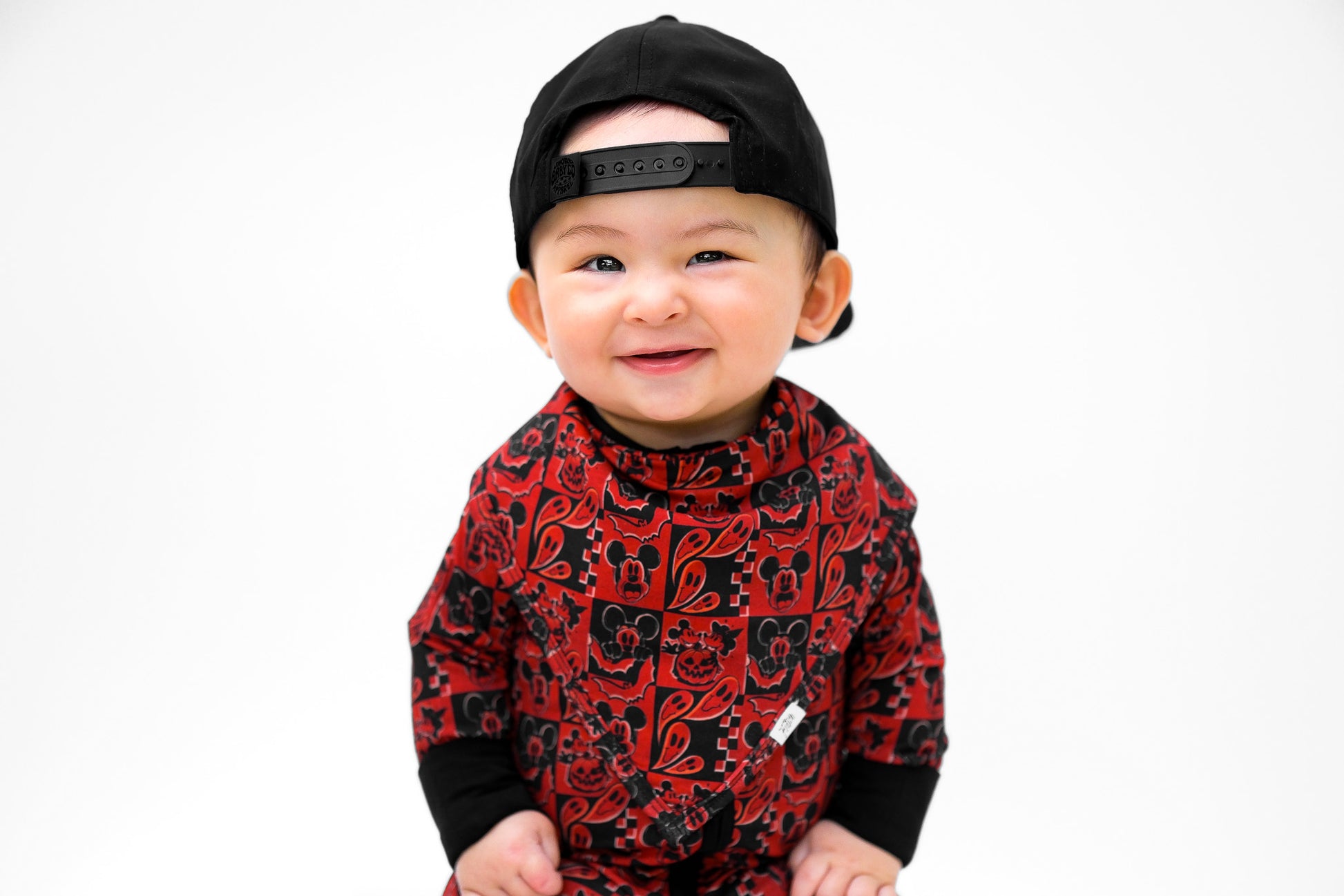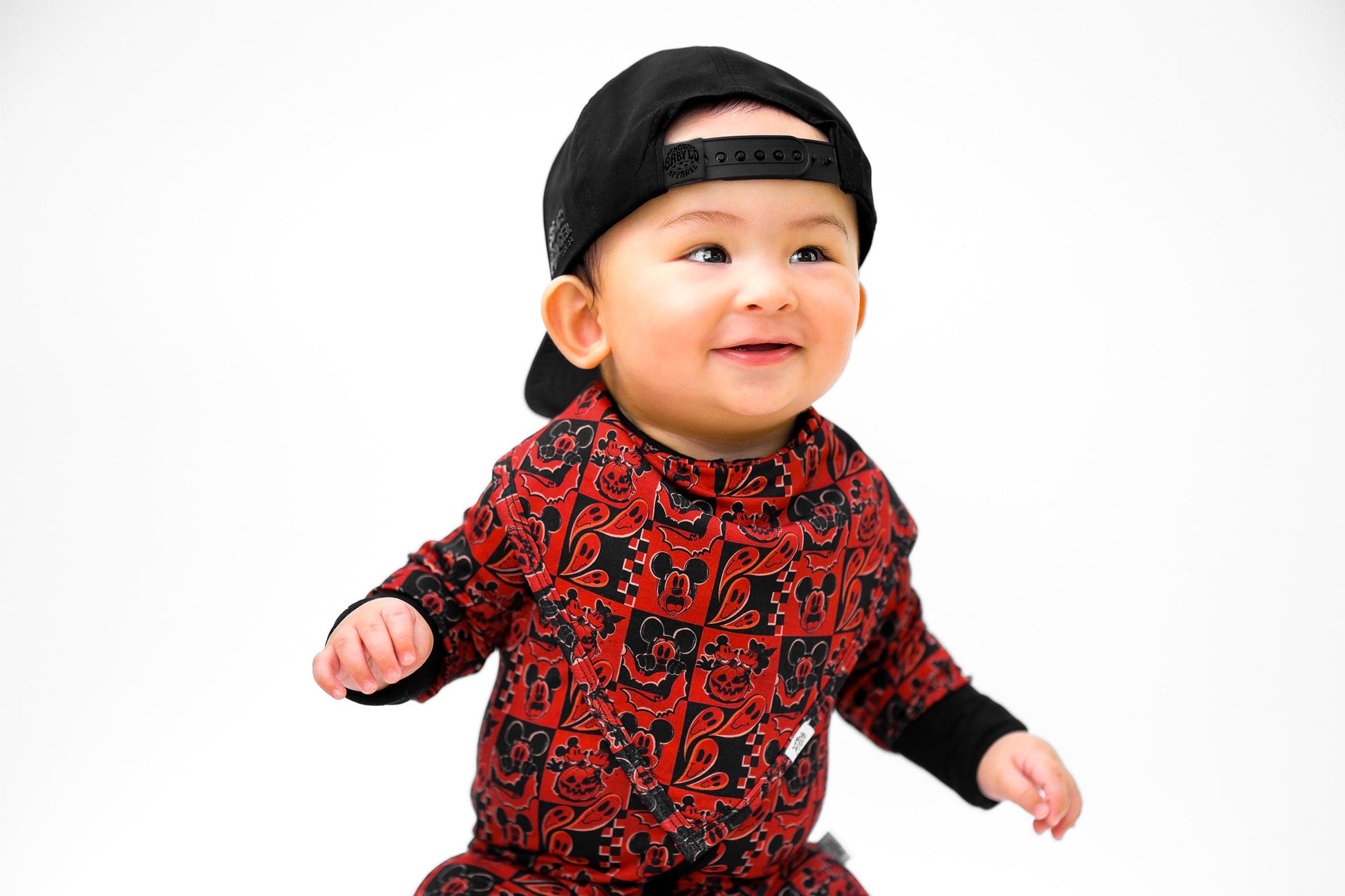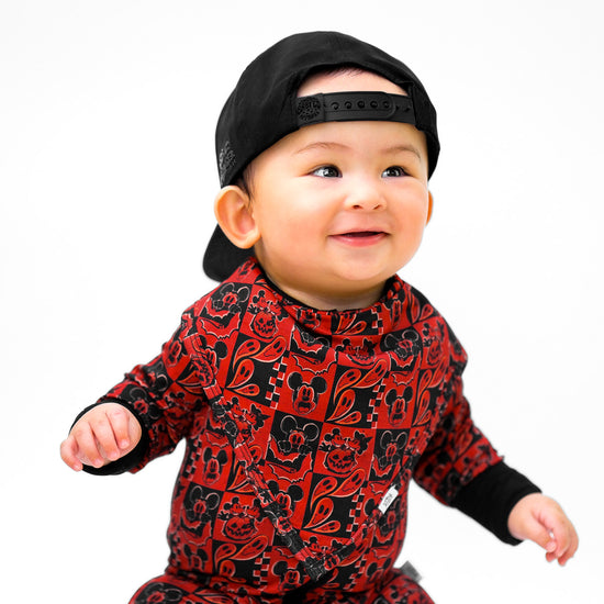 This print features our favorite cartoon mouses alongside their special Halloween moments. There are pumpkin heads mixed with classic jack-o'-lantern faces, spooky ghosts, and rad bats. This design creates the most epic spooky combo that's perfect for your thrill-seeking babe.