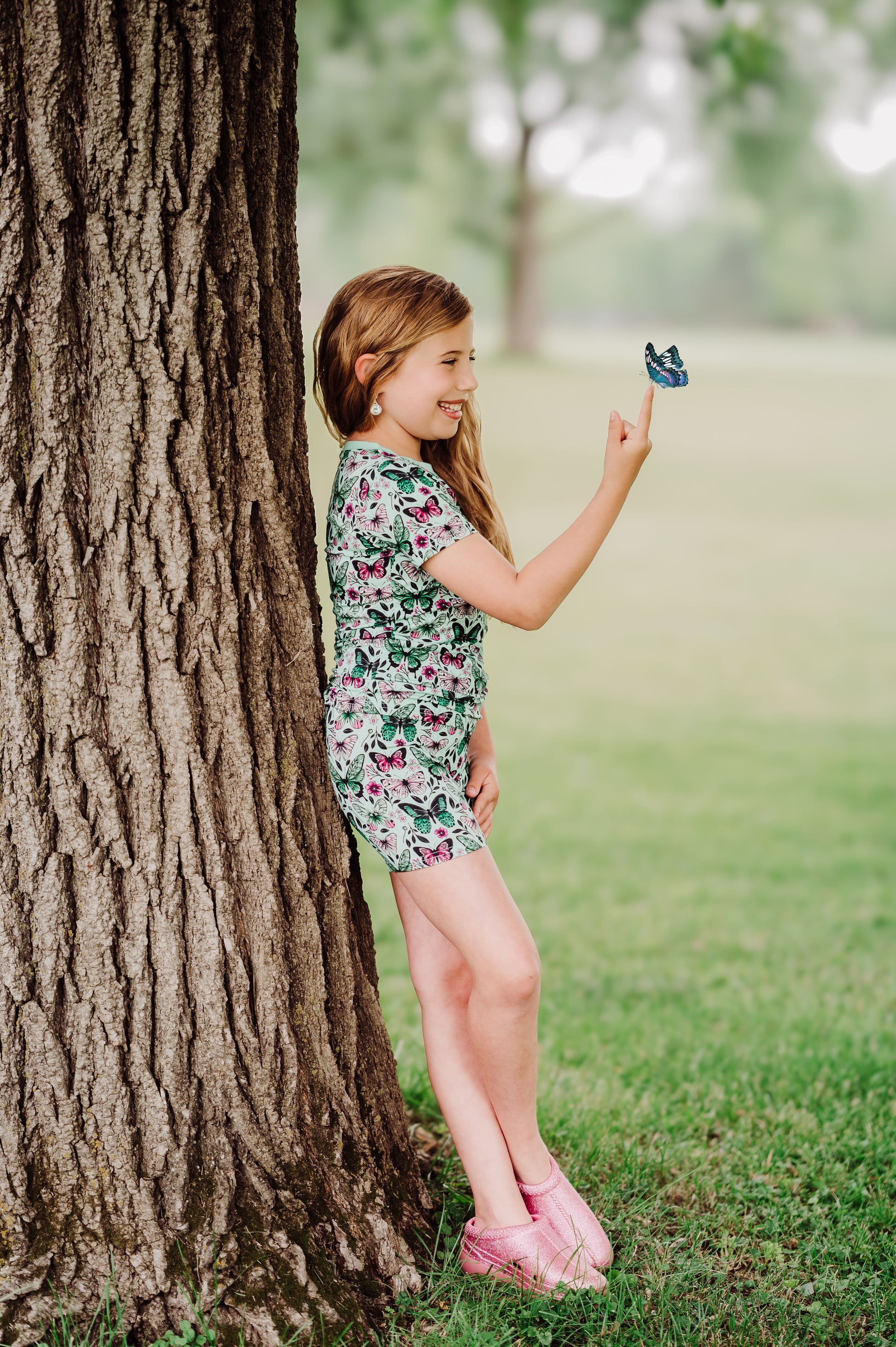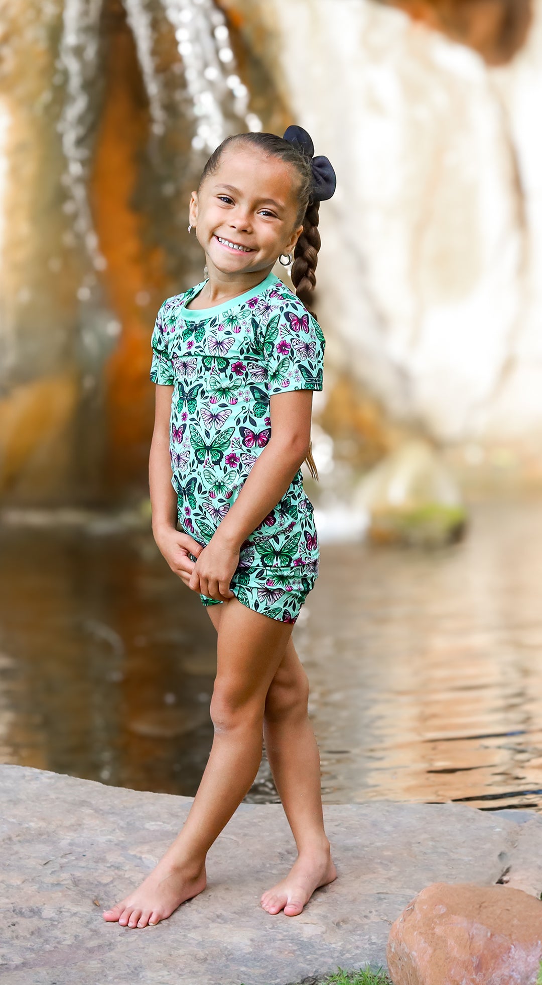 This rad butterfly print is totally epic! The print features a vibrant all-over pattern with colorful butterflies fluttering across a mint green background creating a dreamy, whimsical vibe that's perfect for any little dudette who loves nature and bright colors. It's got that carefree, flutter spirit that makes every kiddo feel like they can spread their wings and fly on any adventure! Go Girls!