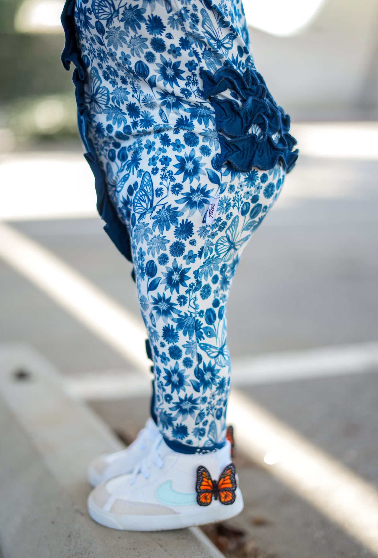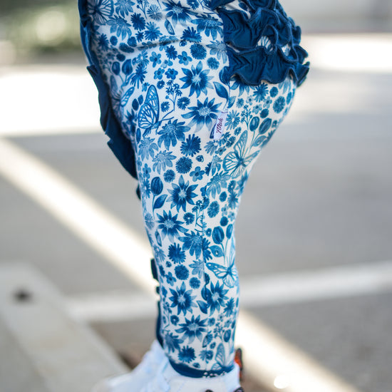 Flutter into style! Butterfly Garden blooms across a soft backdrop with beautiful florals in shades of blue. Butterflies flutter between daisies, tulips, and wildflowers, creating a peaceful garden vibe. Perfect for your little nature girl who loves the beauty of insects in a garden full of petals & flowers!