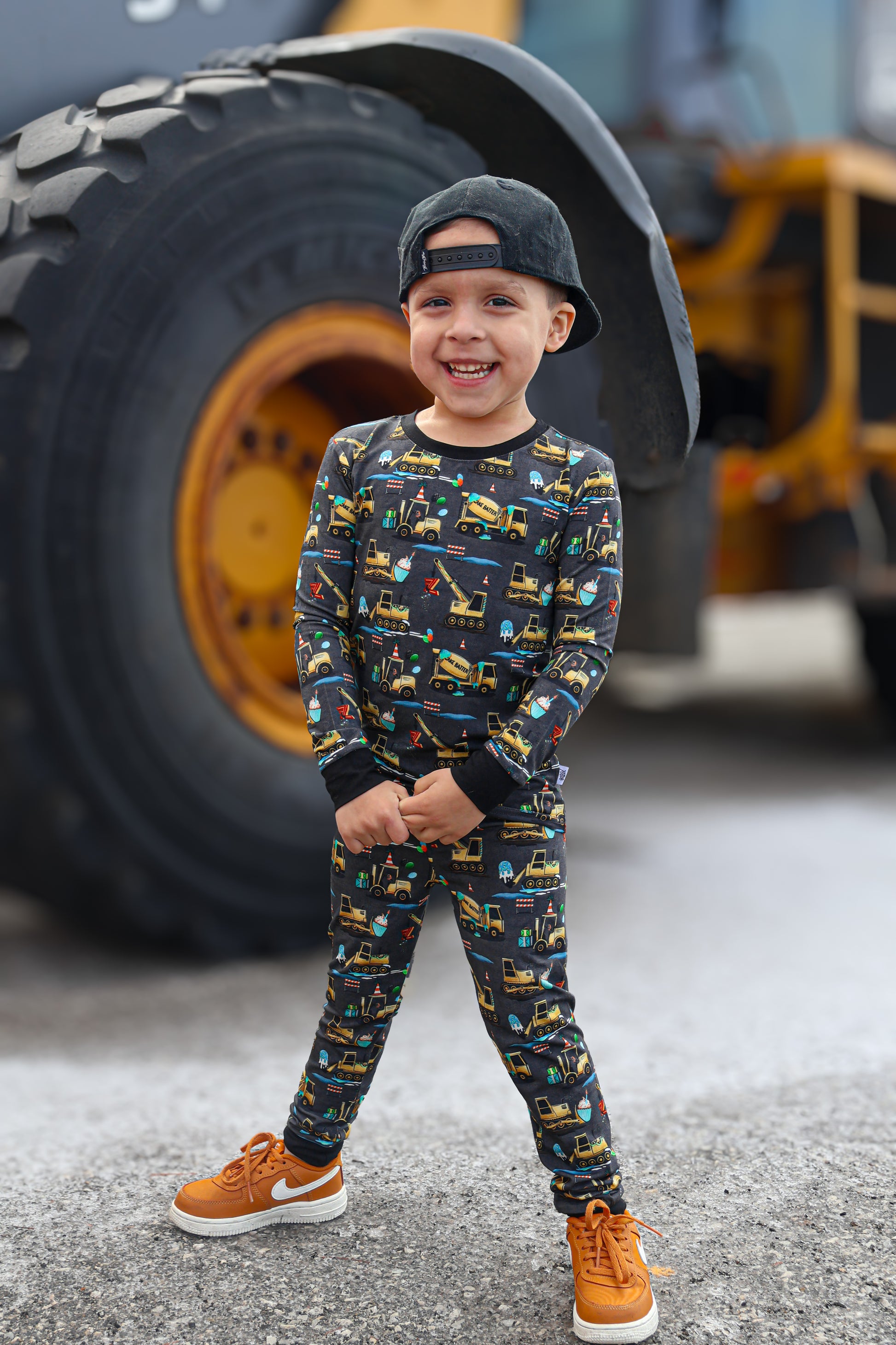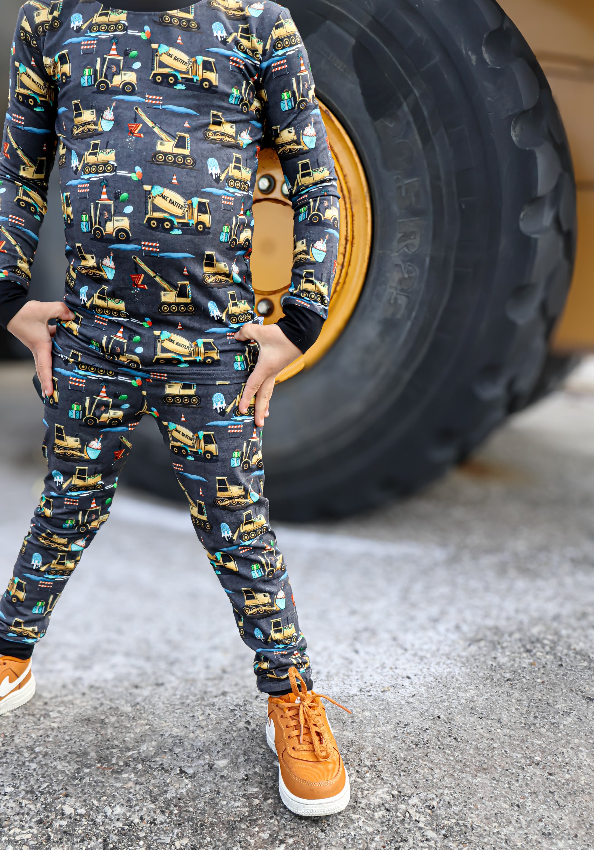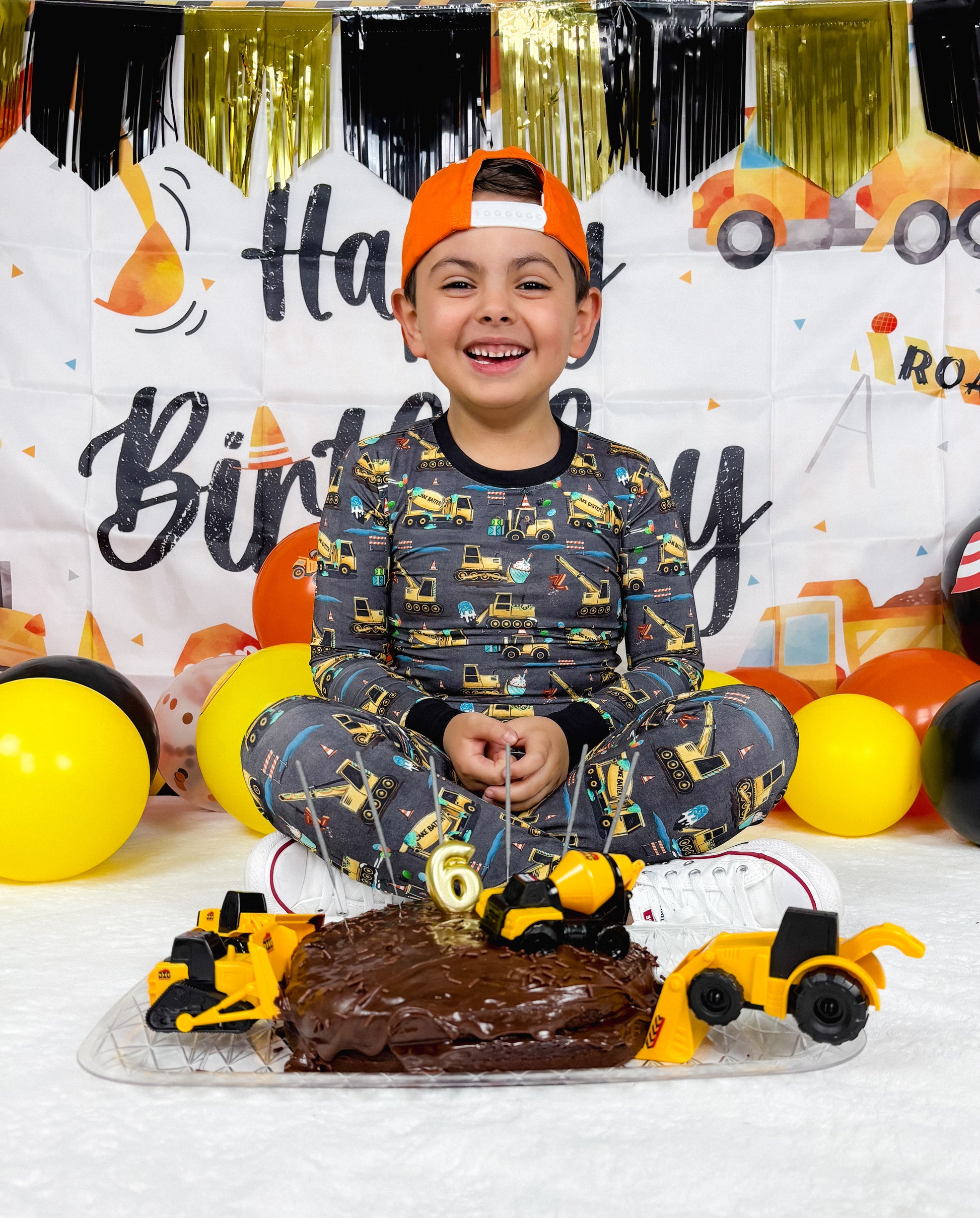 Time to ‘lift” your spirits—it's a celebratory day! This Construction pattern is inspired by Fletch’s 3rd Birthday and anniversary - made special to celebrate with your fam! “Dig” the vibes and the sweet treats adorned in this epic birthday party design with construction vehicles, cupcakes, epic gifts, balloons, and fun animals like a raccoon! Celebrate your own kiddos birthday with The Fletch Fam year-round.