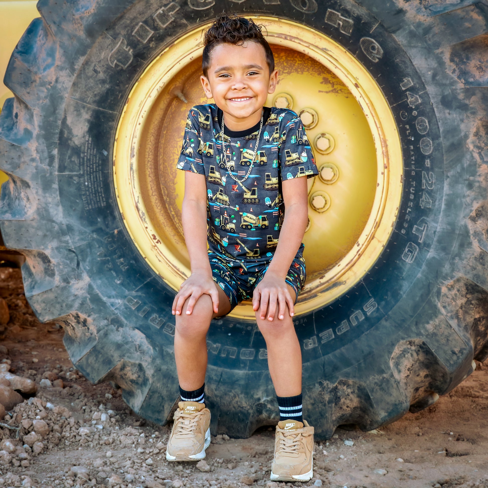 Time to ‘lift” your spirits—it's a celebratory day! This Construction pattern is inspired by Fletch’s 3rd Birthday and anniversary - made special to celebrate with your fam! “Dig” the vibes and the sweet treats adorned in this epic birthday party design with construction vehicles, cupcakes, epic gifts, balloons, and fun animals like a raccoon! Celebrate your own kiddos birthday with The Fletch Fam year-round.