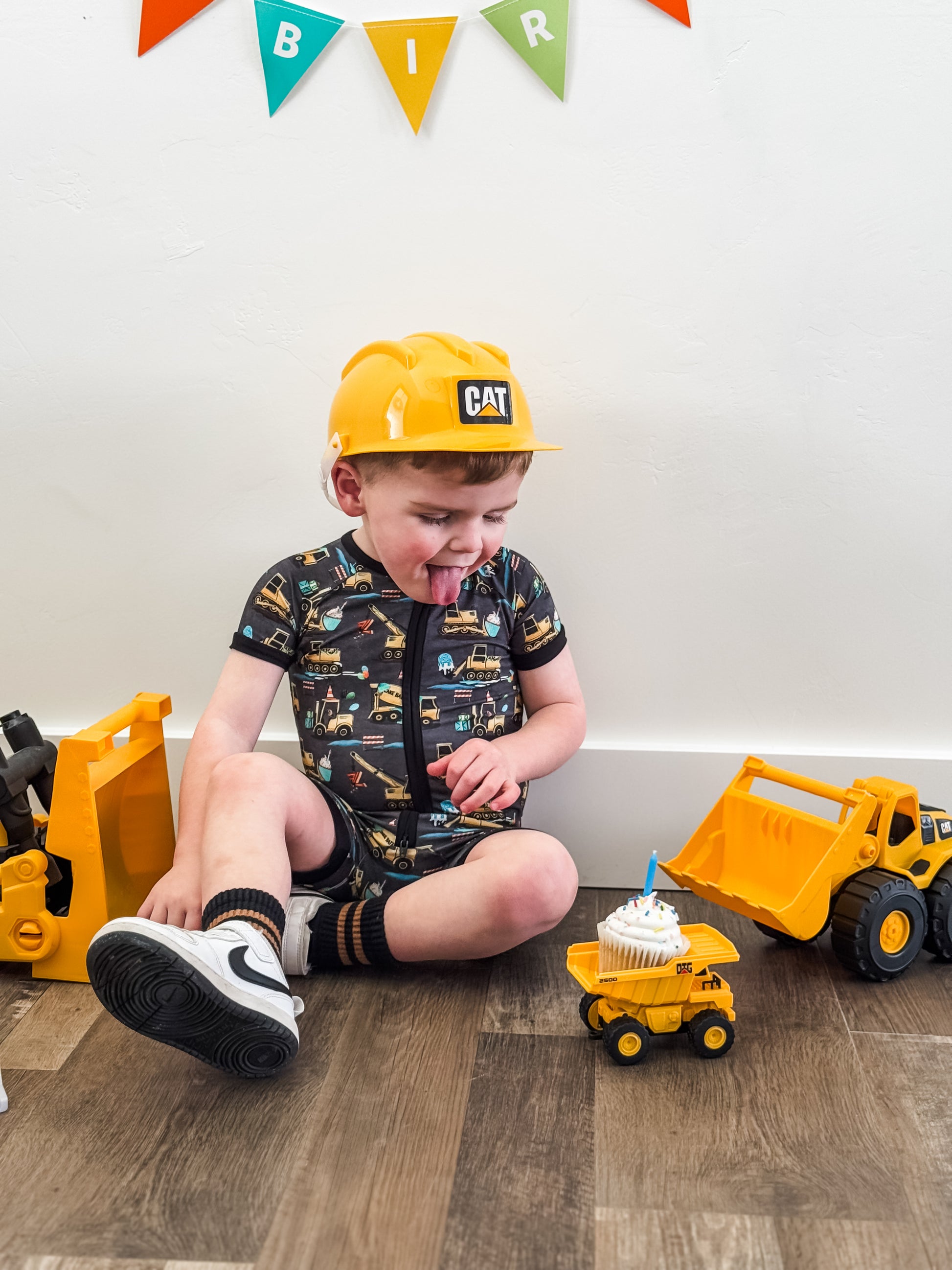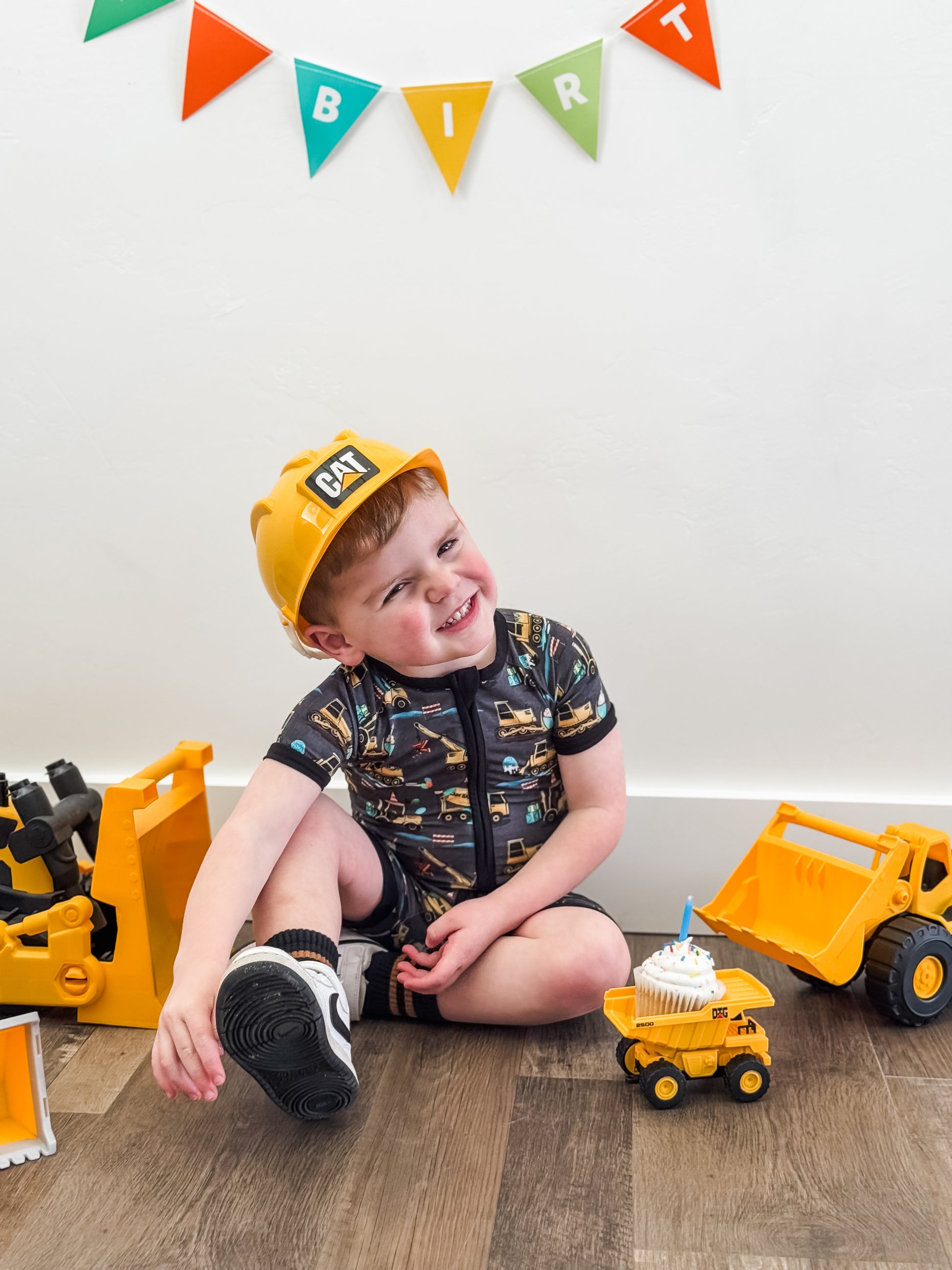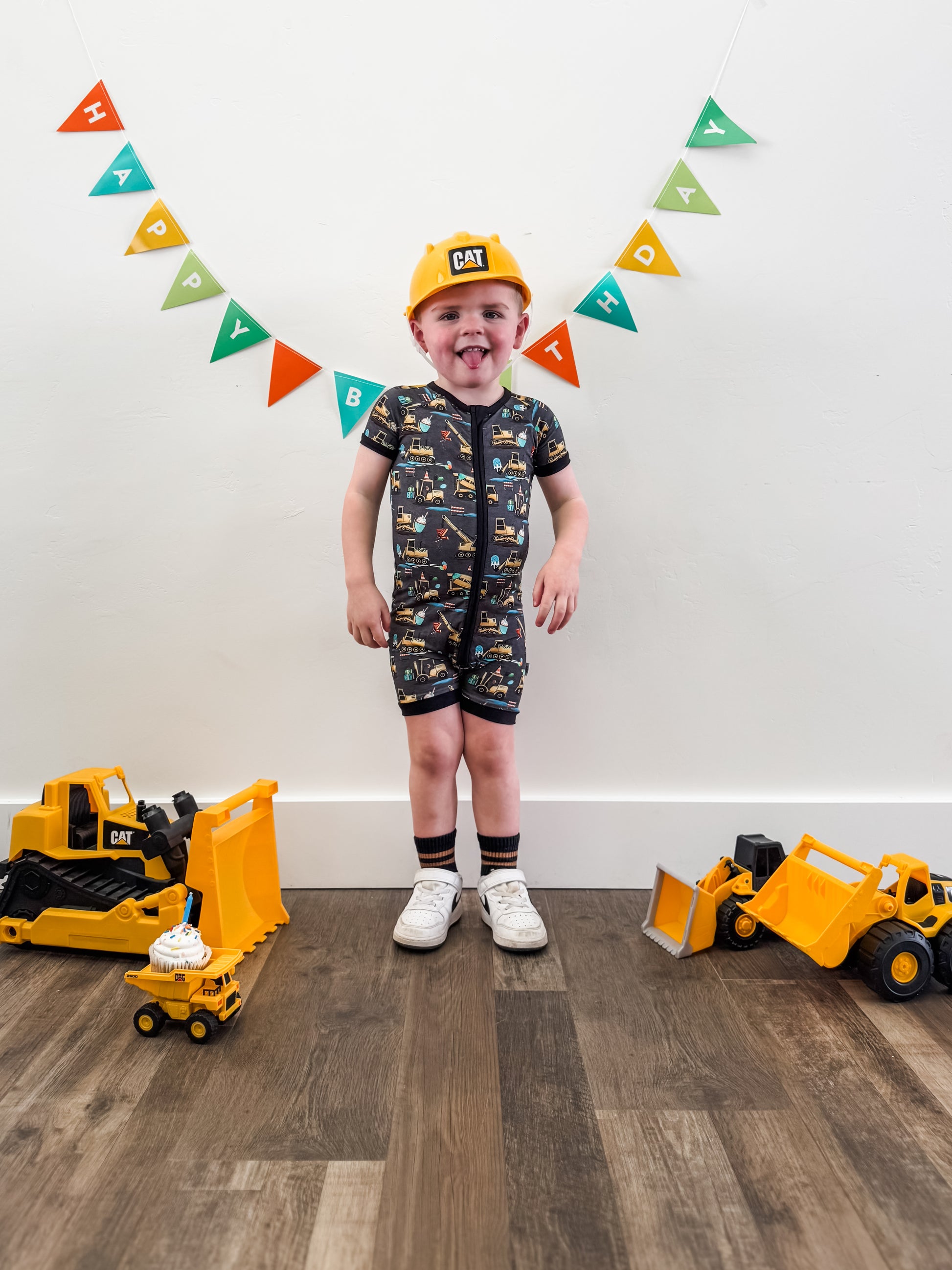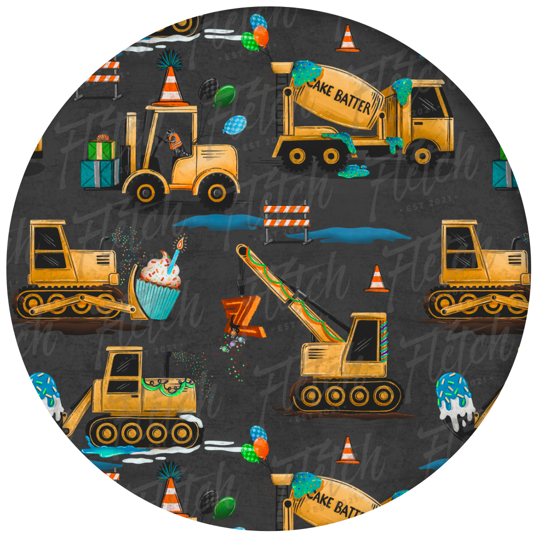 Time to ‘lift” your spirits—it's a celebratory day! This Construction pattern is inspired by Fletch’s 3rd Birthday and anniversary - made special to celebrate with your fam! “Dig” the vibes and the sweet treats adorned in this epic birthday party design with construction vehicles, cupcakes, epic gifts, balloons, and fun animals like a raccoon! Celebrate your own kiddos birthday with The Fletch Fam year-round.