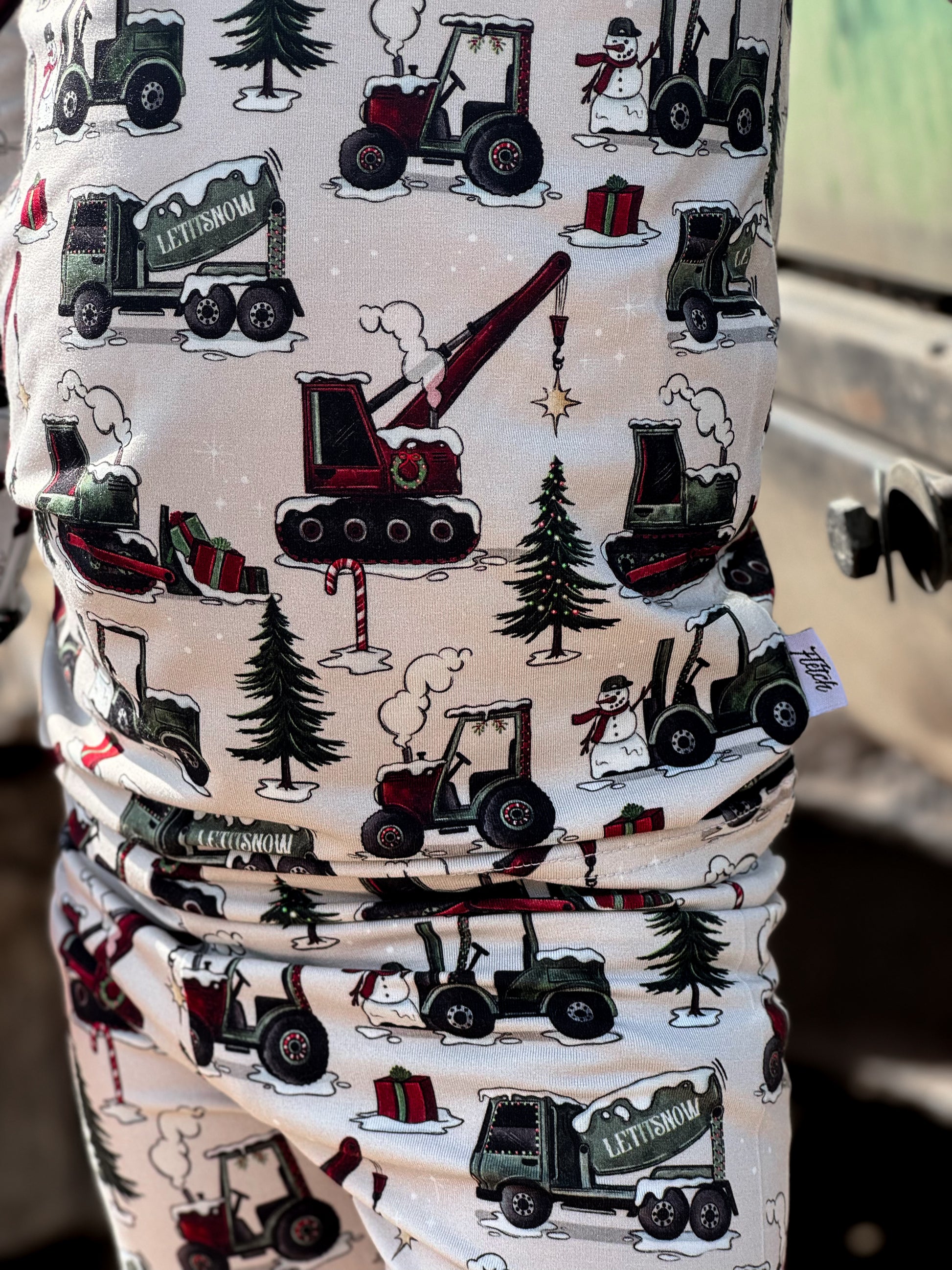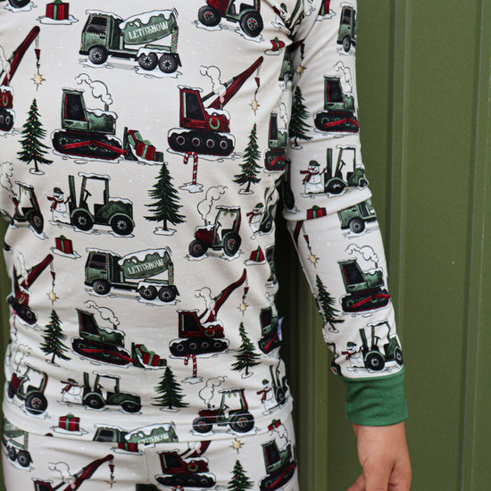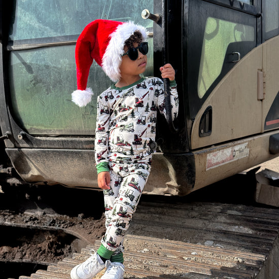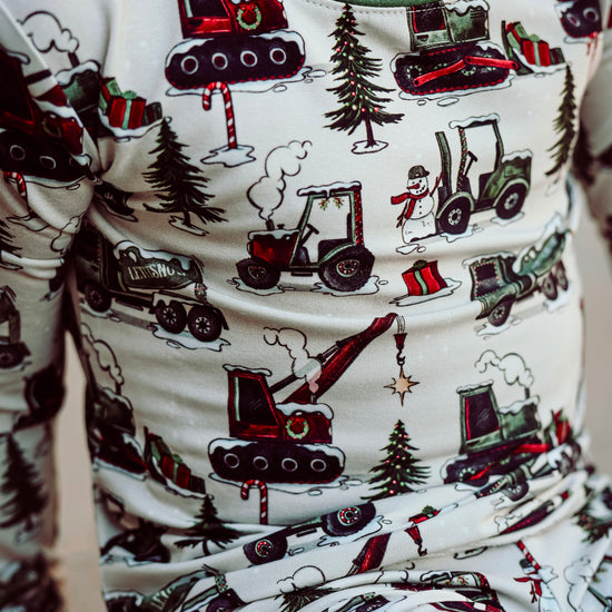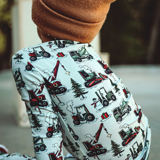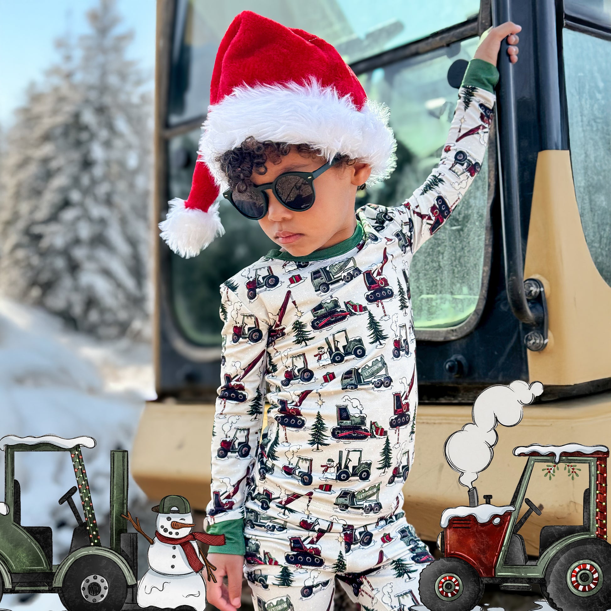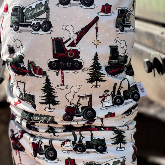 This totally rad Christmas print is packed with epic construction vehicles that'll have little dudes and dudettes revving with jolly excitement! The awesome design features a whole fleet of construction trucks, cranes, and merry machinery.. You'll spot dump trucks hauling their loads, towering cranes ready for action, and rugged construction vehicles of all kinds - perfect for any little builder who dreams big for the holidays!