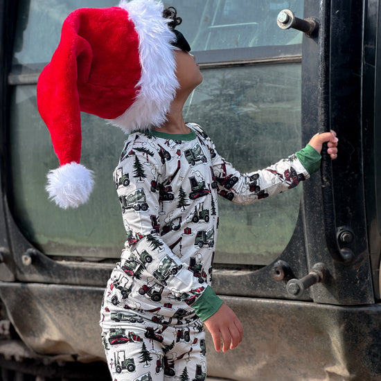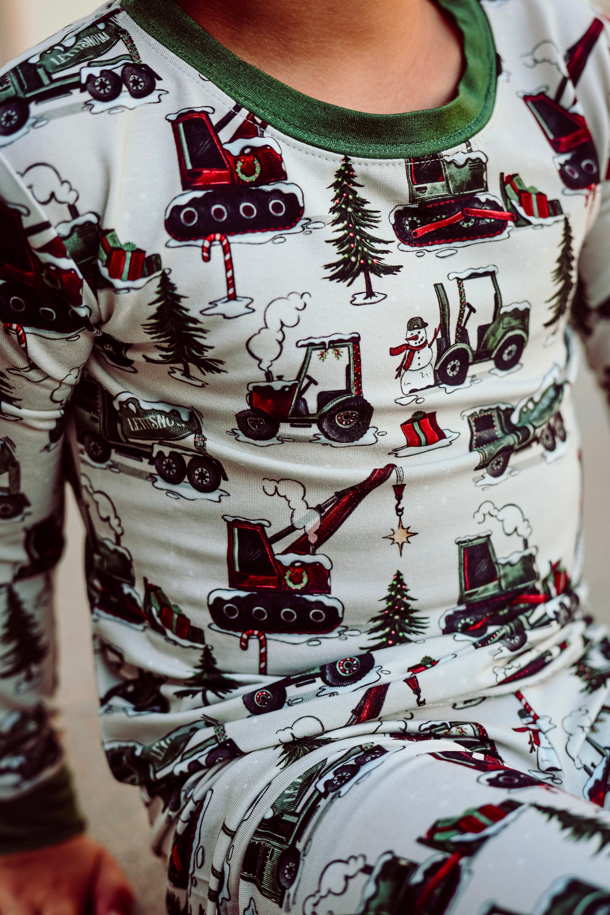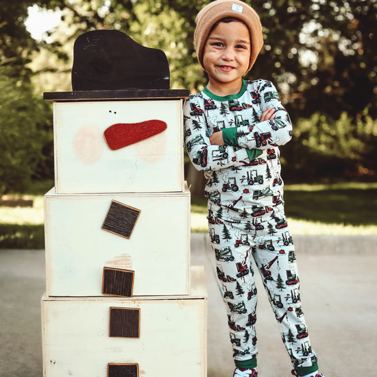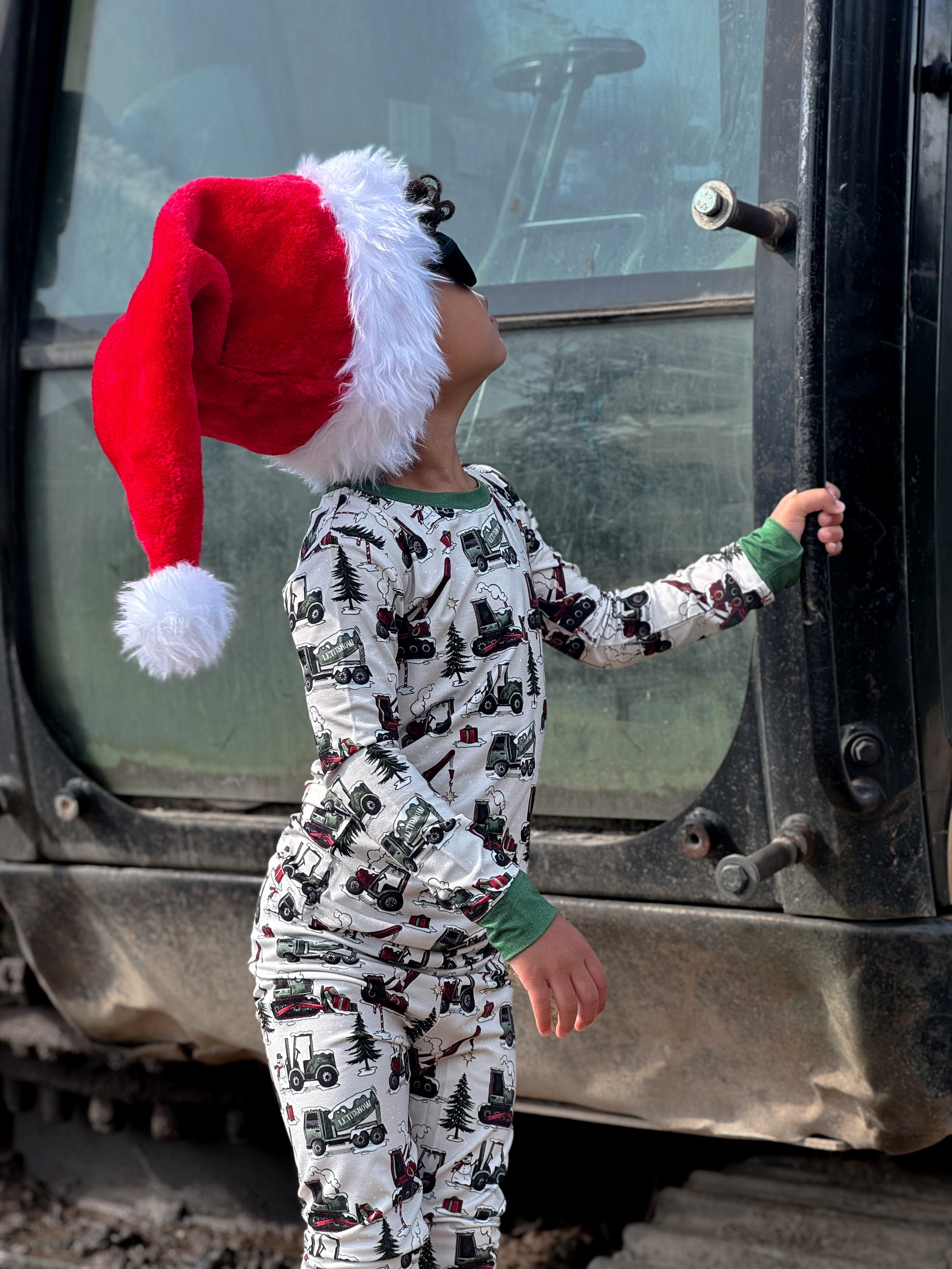 This totally rad Christmas print is packed with epic construction vehicles that'll have little dudes and dudettes revving with jolly excitement! The awesome design features a whole fleet of construction trucks, cranes, and merry machinery.. You'll spot dump trucks hauling their loads, towering cranes ready for action, and rugged construction vehicles of all kinds - perfect for any little builder who dreams big for the holidays!