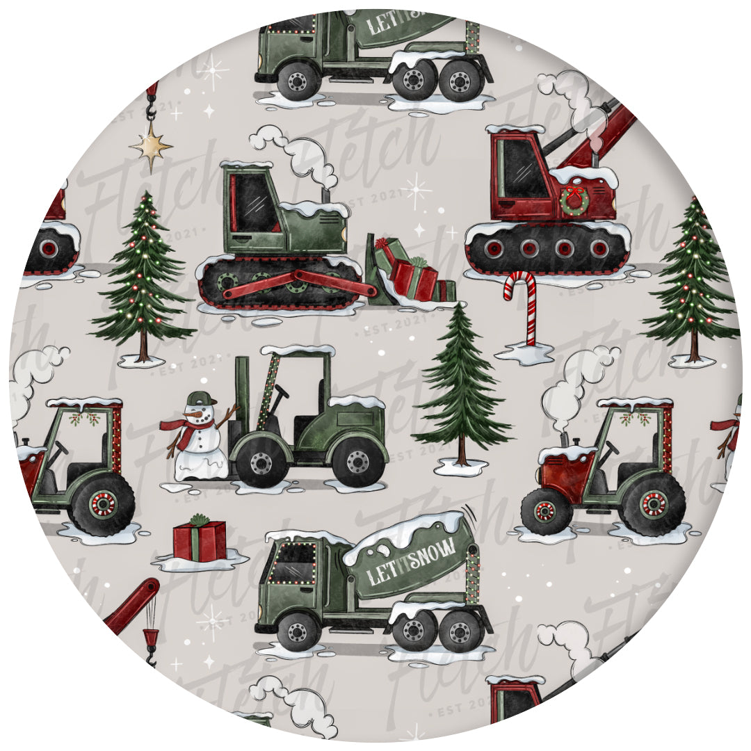This totally rad Christmas print is packed with epic construction vehicles that'll have little dudes and dudettes revving with jolly excitement! The awesome design features a whole fleet of construction trucks, cranes, and merry machinery.. You'll spot dump trucks hauling their loads, towering cranes ready for action, and rugged construction vehicles of all kinds - perfect for any little builder who dreams big for the holidays!