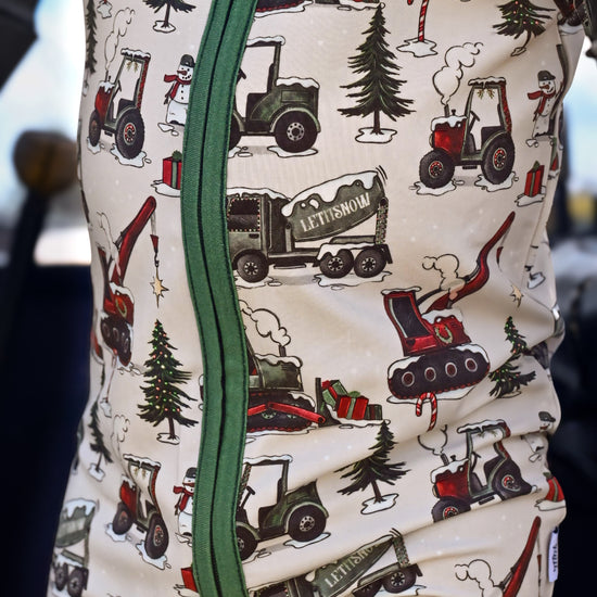 This totally rad Christmas print is packed with epic construction vehicles that'll have little dudes and dudettes revving with jolly excitement! The awesome design features a whole fleet of construction trucks, cranes, and merry machinery.. You'll spot dump trucks hauling their loads, towering cranes ready for action, and rugged construction vehicles of all kinds - perfect for any little builder who dreams big for the holidays!