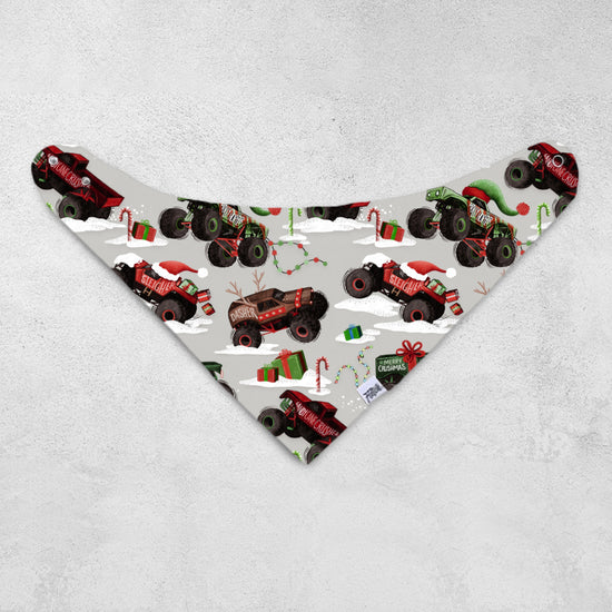 This epic Christmas design is revving up the holiday spirit with some seriously rad monster trucks! Little dudes/dudettes will be stoked to see these big-wheeled motors decked out in festive holiday style. The print features monster trucks with names like "Sleighride," "Merry Crushmas," and "Joyride" that are totally perfect for the season because who says Santa can't ride in style with oversized tires and serious horsepower!