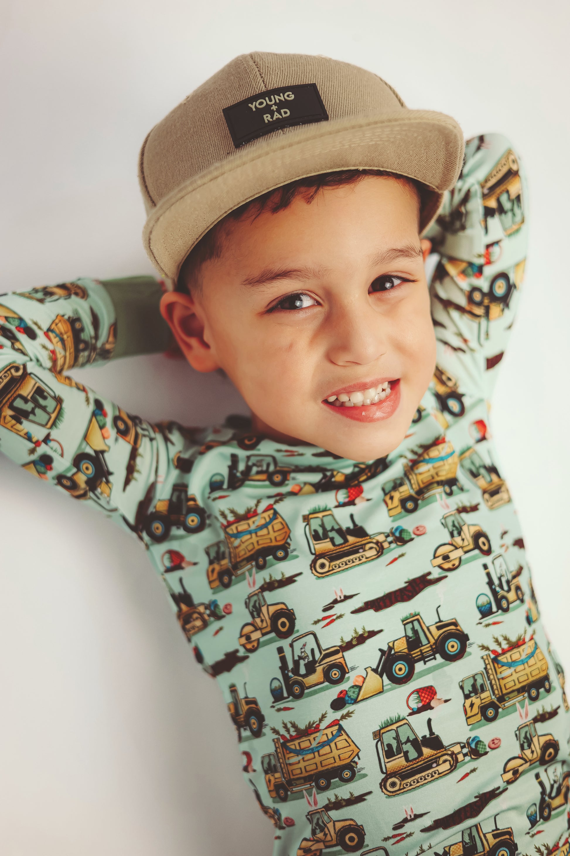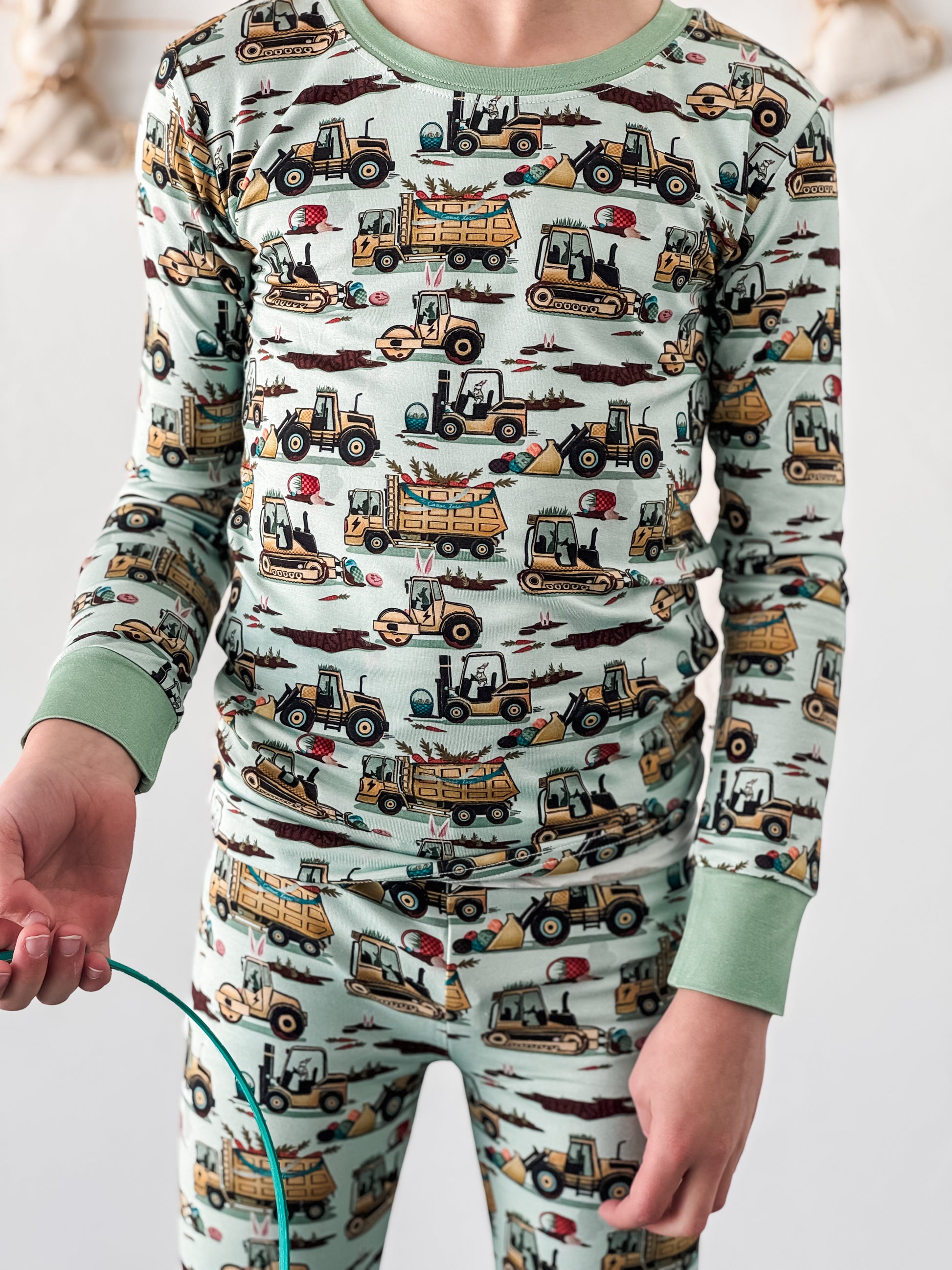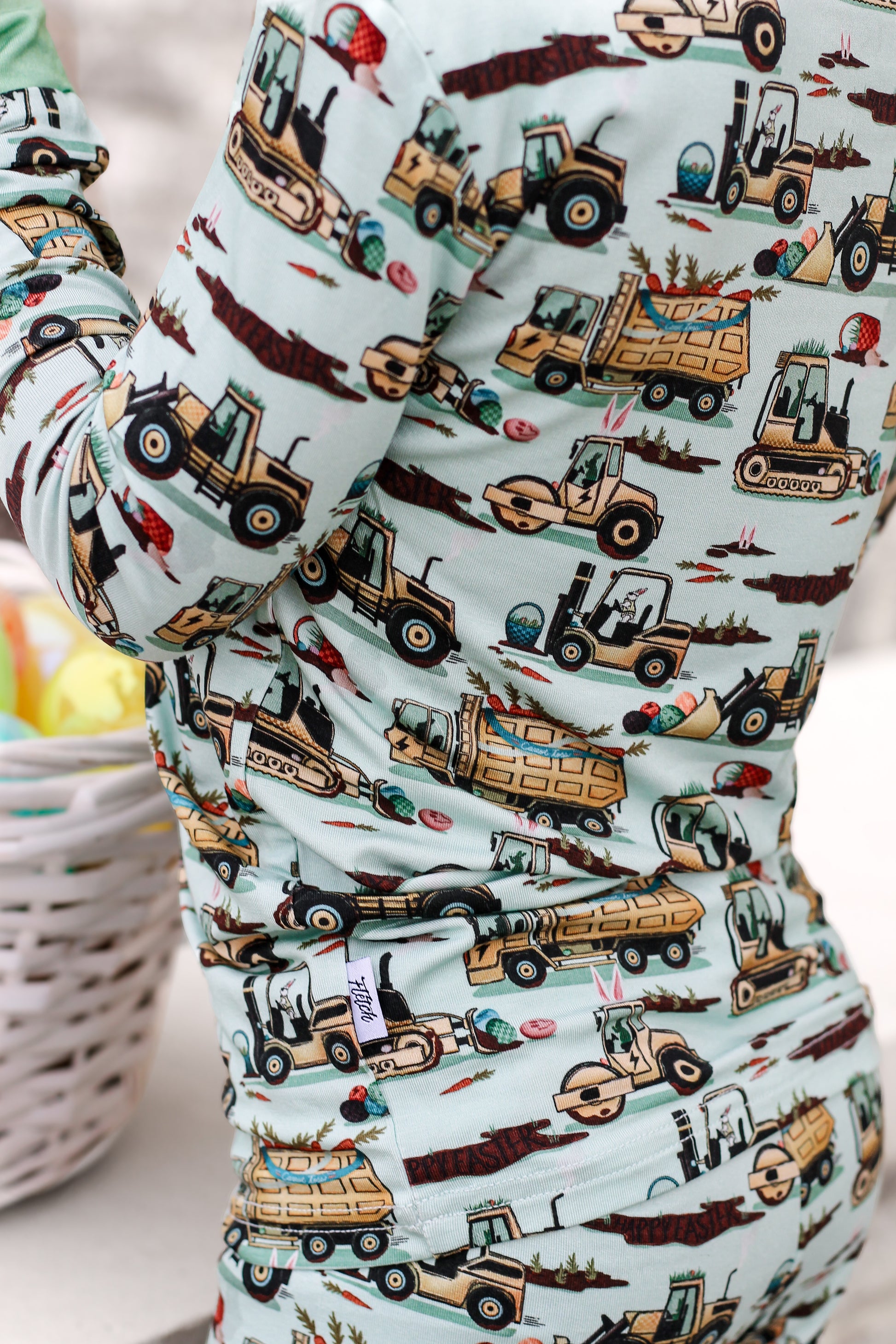 Easter Egg-scavation Crew: Dig into Easter fun! This egg-cellent construction print brings the Easter egg hunt to the job site with tractors, dump trucks, bulldozers, and steamrollers working overtime. Little bunnies supervise the Easter eggs getting loaded, hauled, and delivered across the construction zone. Plaid egg crates ride in truck beds alongside Easter treasures waiting to be discovered. Heavy motors keep it rolling while bunny ears bring the hoppy Easter magic. Perfect for little builders ready to excavate some Easter fun and construct the ultimate Sunday egg hunt! The perfect Easter basket gift.