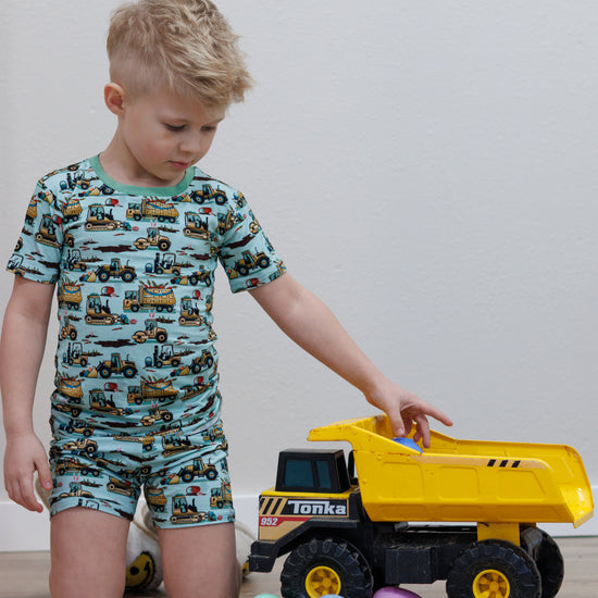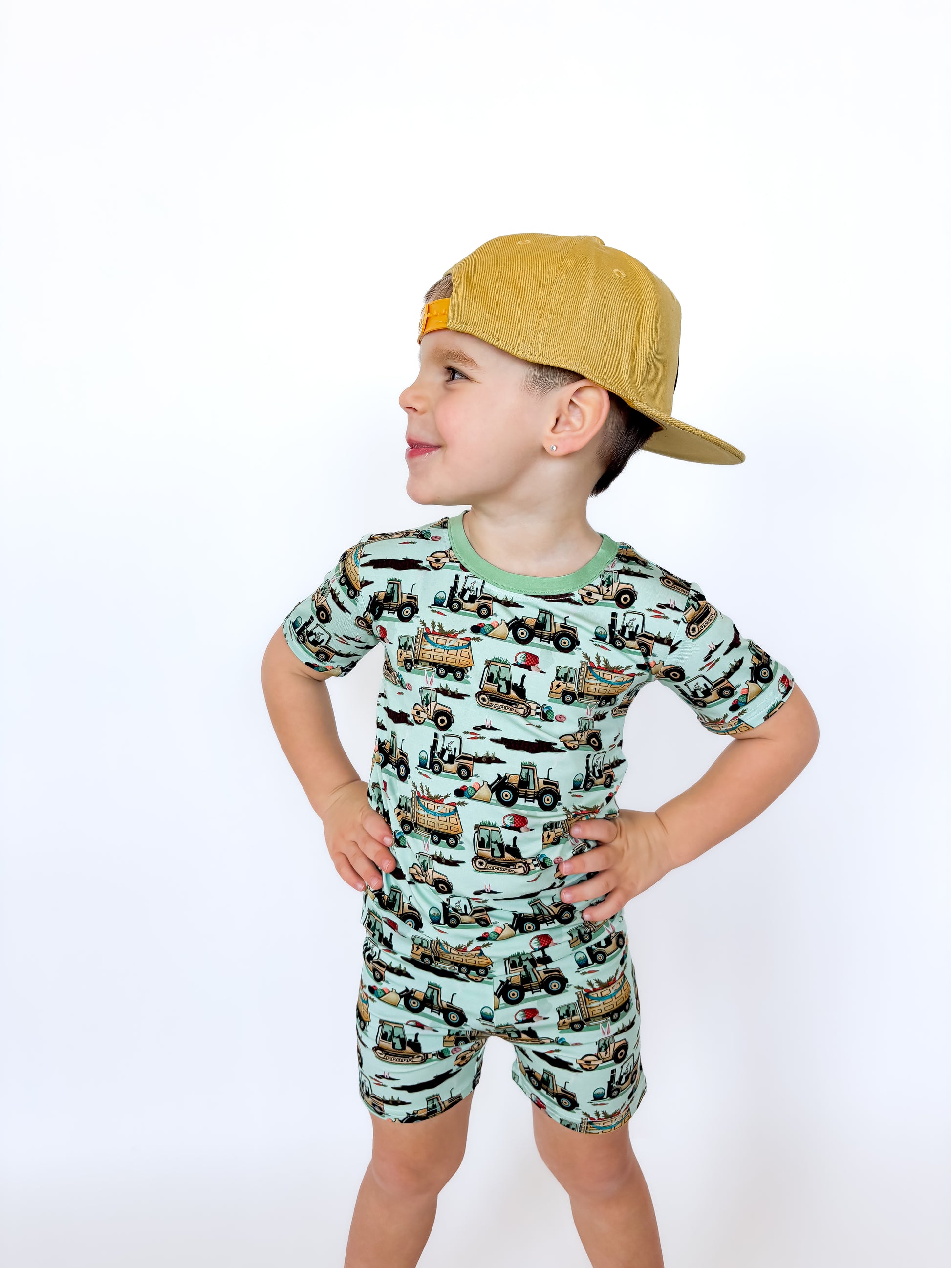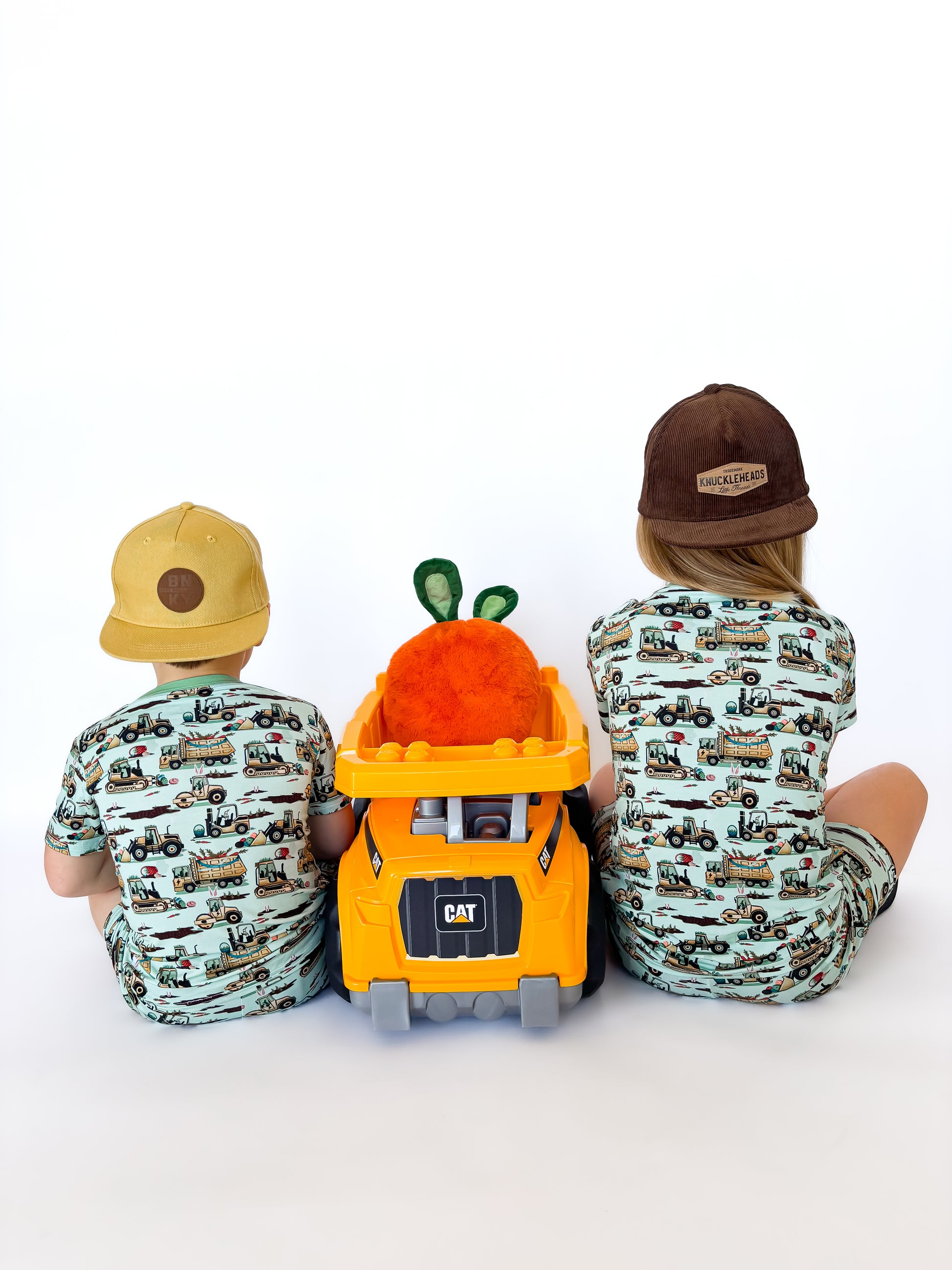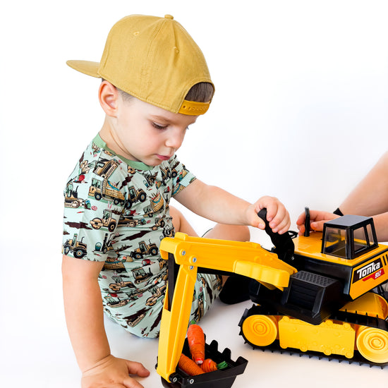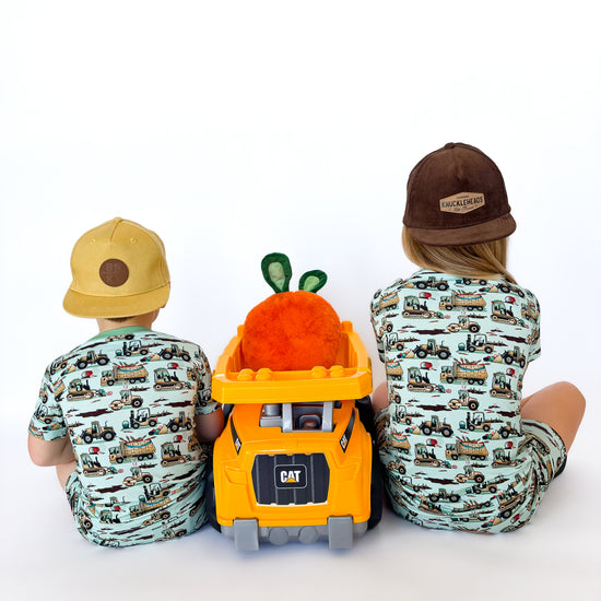 Easter Egg-scavation Crew: Dig into Easter fun! This egg-cellent construction print brings the Easter egg hunt to the job site with tractors, dump trucks, bulldozers, and steamrollers working overtime. Little bunnies supervise the Easter eggs getting loaded, hauled, and delivered across the construction zone. Plaid egg crates ride in truck beds alongside Easter treasures waiting to be discovered. Heavy motors keep it rolling while bunny ears bring the hoppy Easter magic. Perfect for little builders ready to excavate some Easter fun and construct the ultimate Sunday egg hunt! The perfect Easter basket gift.