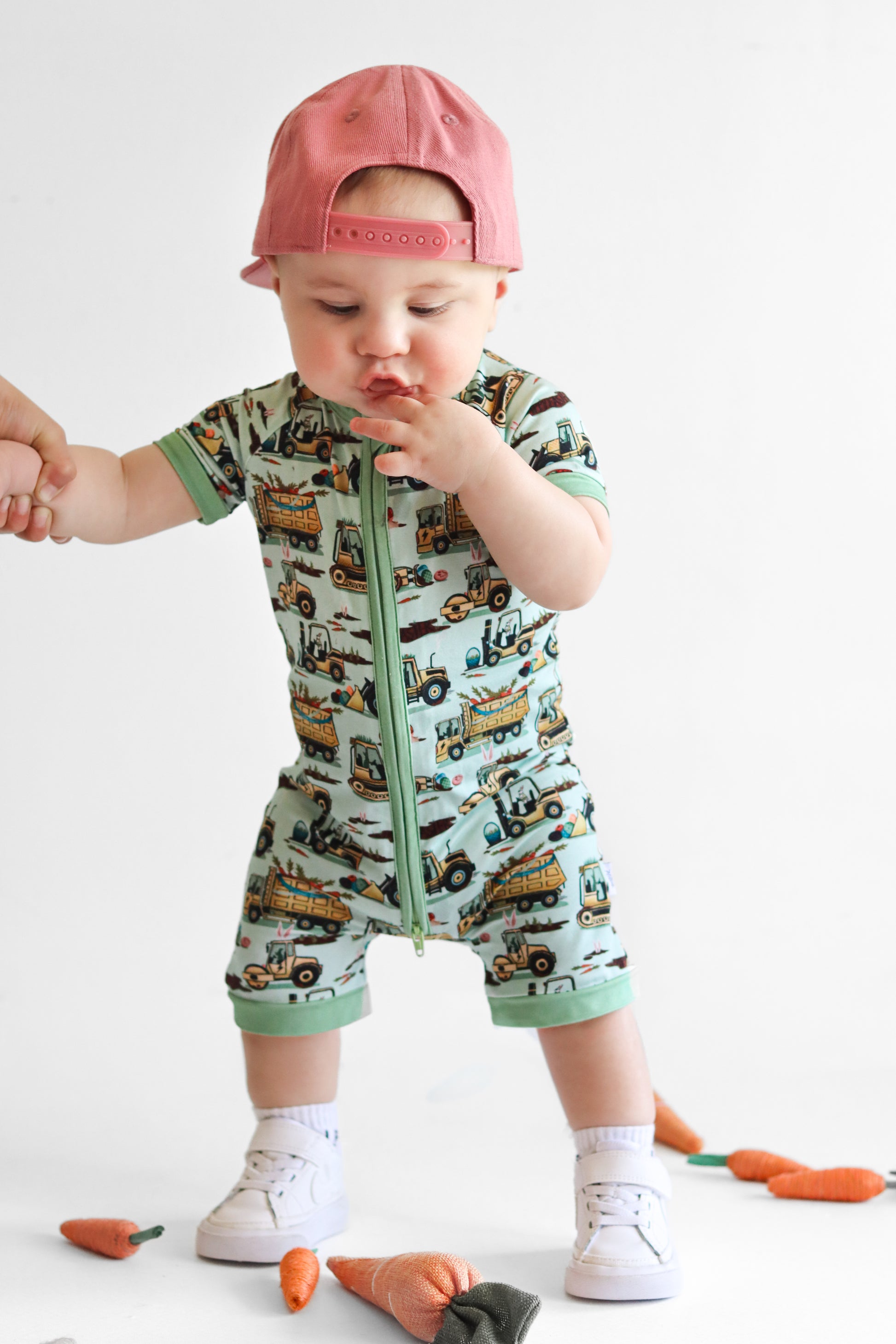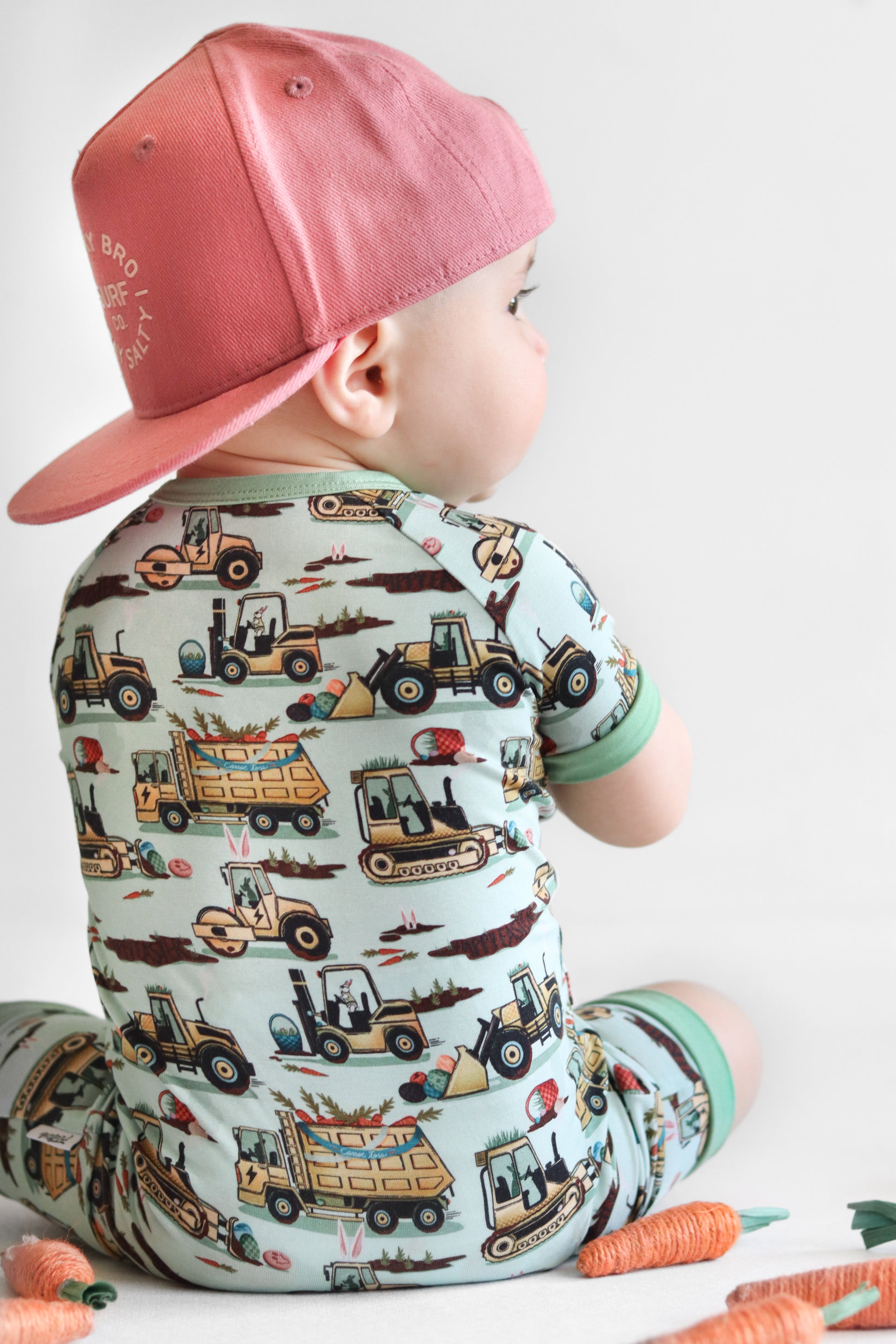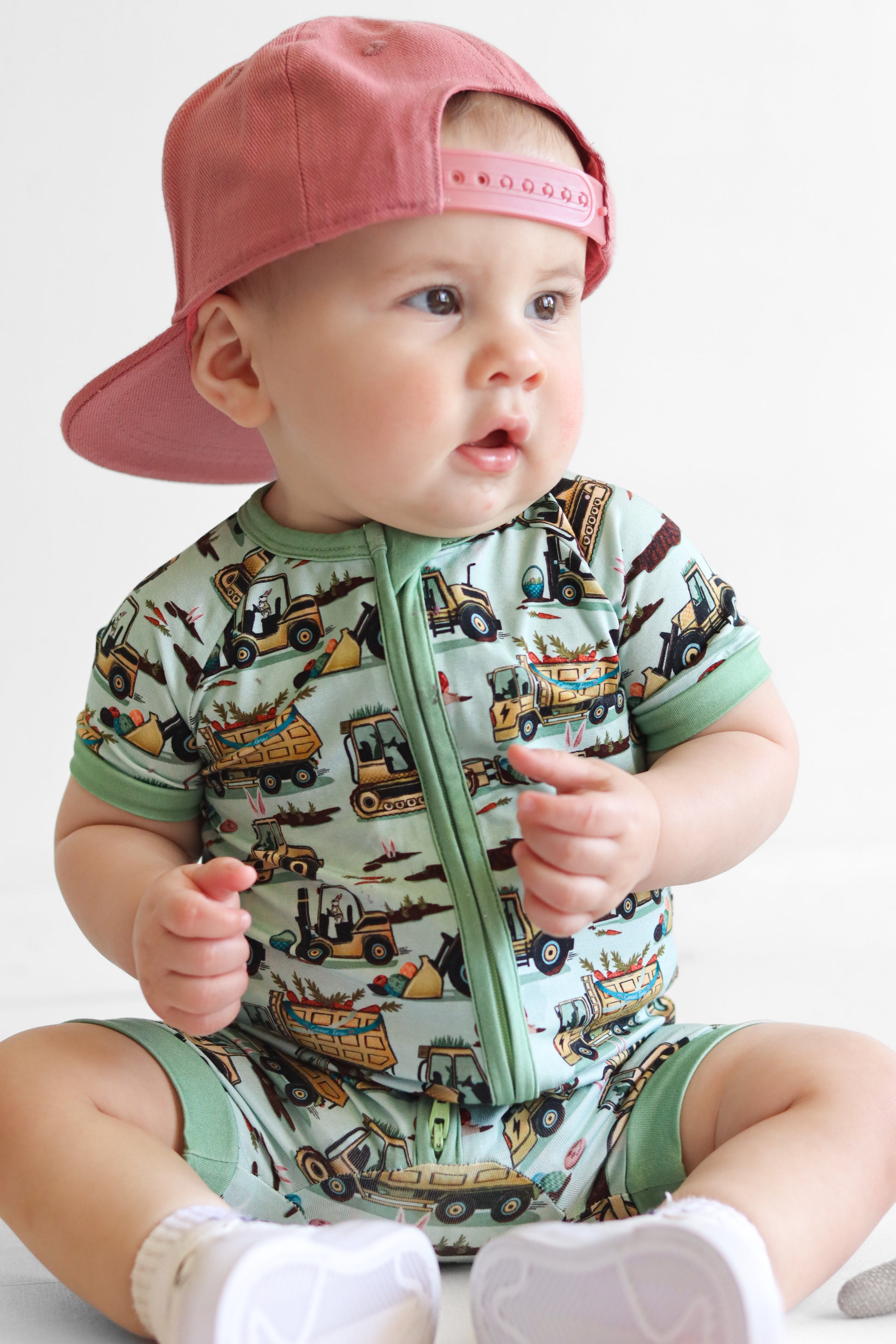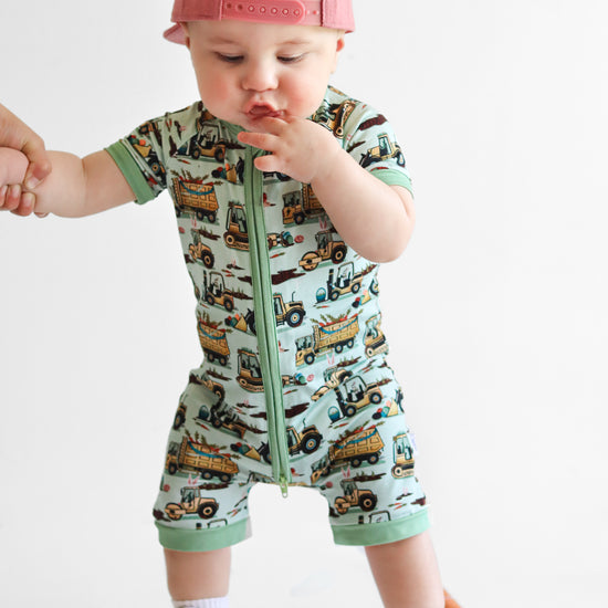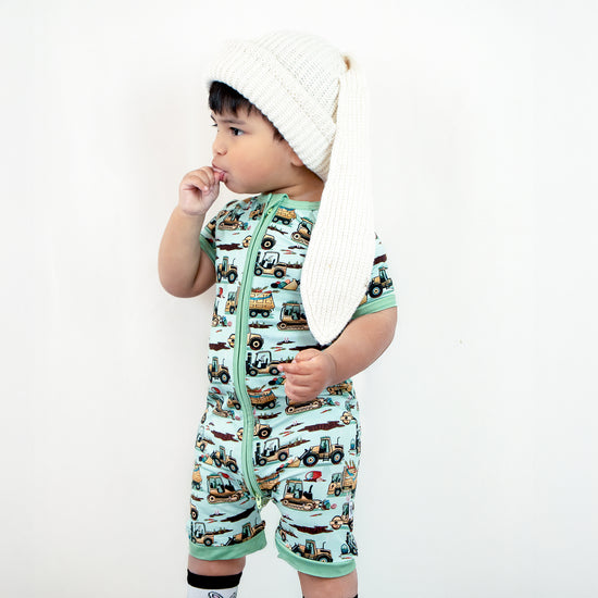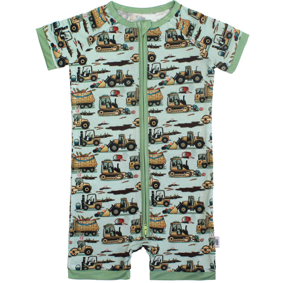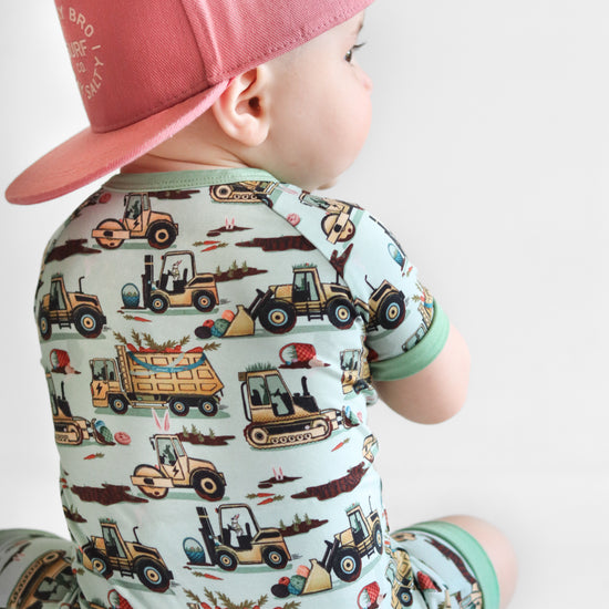 Easter Egg-scavation Crew: Dig into Easter fun! This egg-cellent construction print brings the Easter egg hunt to the job site with tractors, dump trucks, bulldozers, and steamrollers working overtime. Little bunnies supervise the Easter eggs getting loaded, hauled, and delivered across the construction zone. Plaid egg crates ride in truck beds alongside Easter treasures waiting to be discovered. Heavy motors keep it rolling while bunny ears bring the hoppy Easter magic. Perfect for little builders ready to excavate some Easter fun and construct the ultimate Sunday egg hunt! The perfect Easter basket gift.