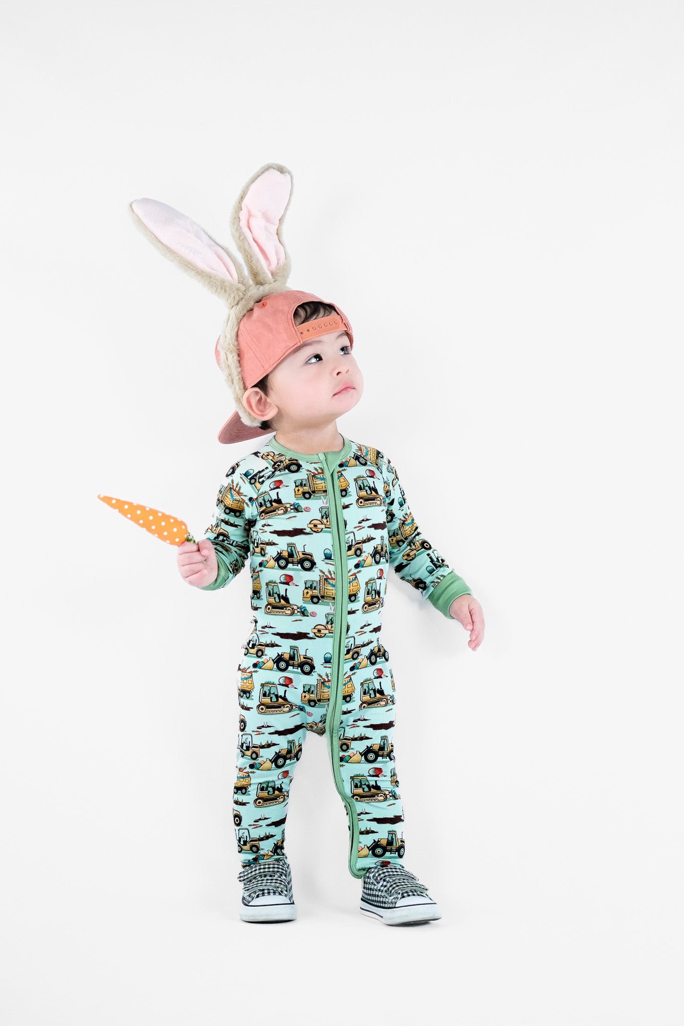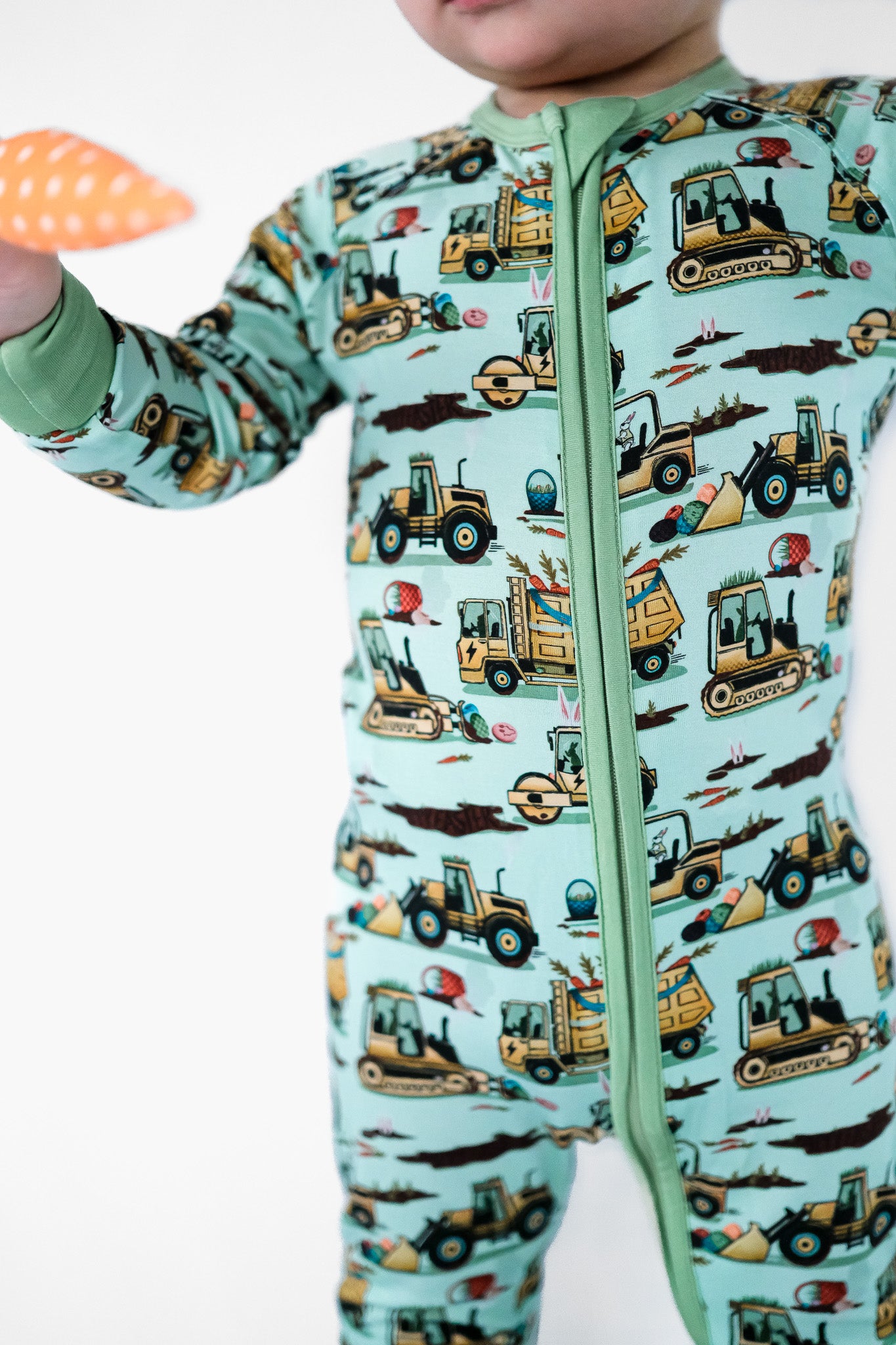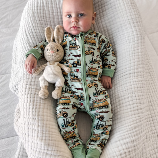Easter Egg-scavation Crew: Dig into Easter fun! This egg-cellent construction print brings the Easter egg hunt to the job site with tractors, dump trucks, bulldozers, and steamrollers working overtime. Little bunnies supervise the Easter eggs getting loaded, hauled, and delivered across the construction zone. Plaid egg crates ride in truck beds alongside Easter treasures waiting to be discovered. Heavy motors keep it rolling while bunny ears bring the hoppy Easter magic. Perfect for little builders ready to excavate some Easter fun and construct the ultimate Sunday egg hunt! The perfect Easter basket gift.