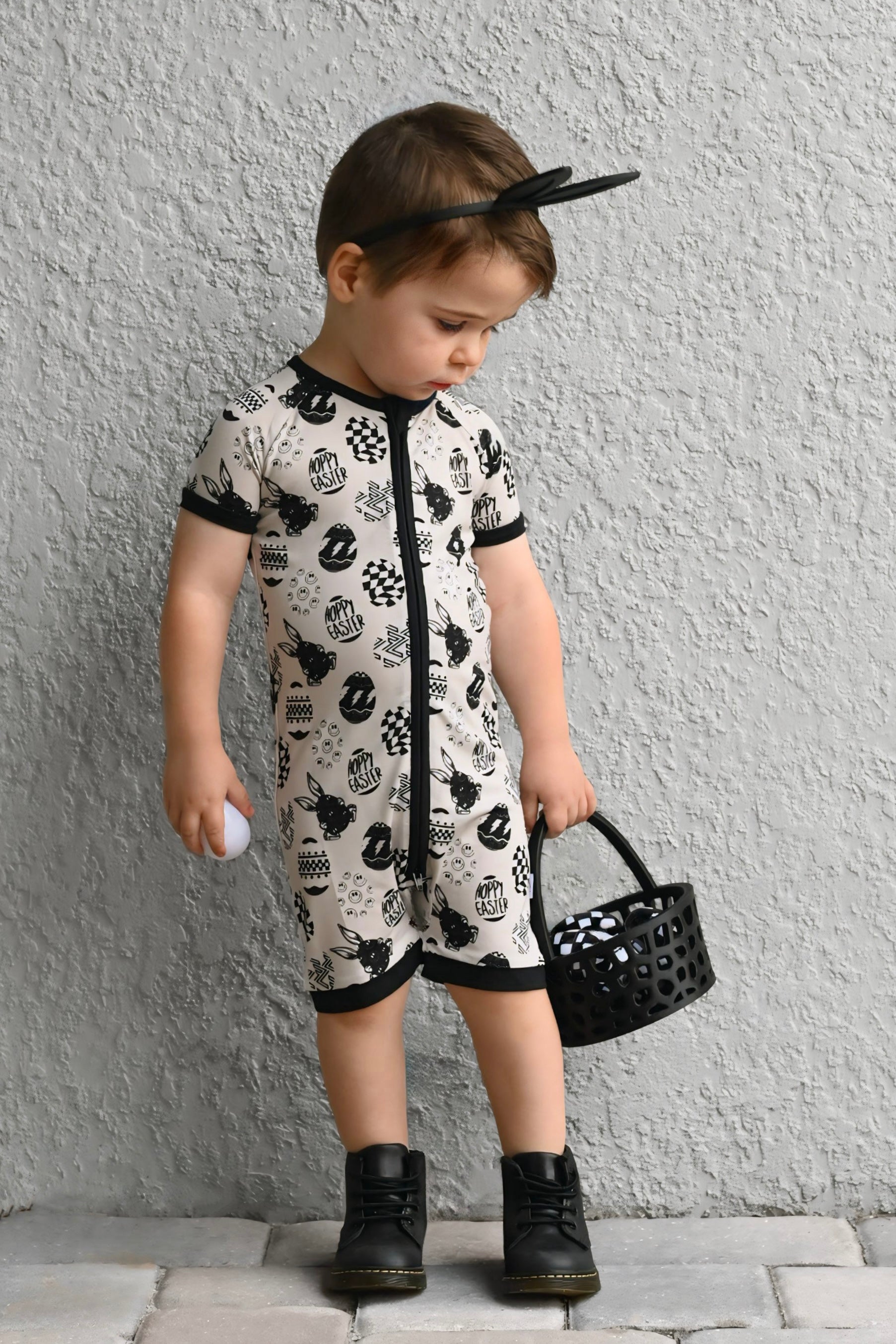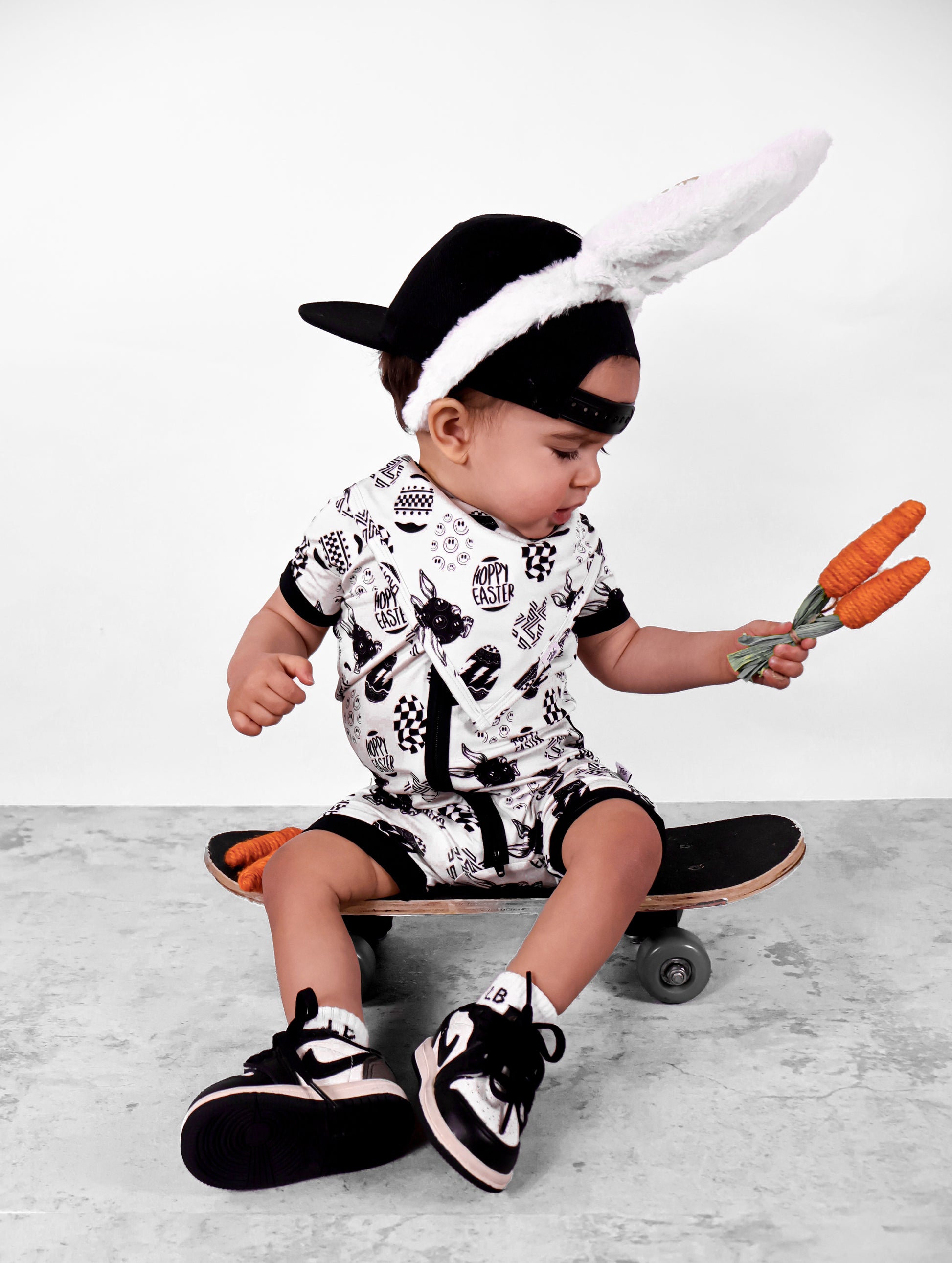 This print is a Hoppy Easter spin on our core collection that’s eggcellent for your little rad bunny. Featuring epic designs such as checkers and smiley faces in a simple yet stand-out black-and-white theme, these radical eggs are certainly the right amount of EGGstra for your little hopper.