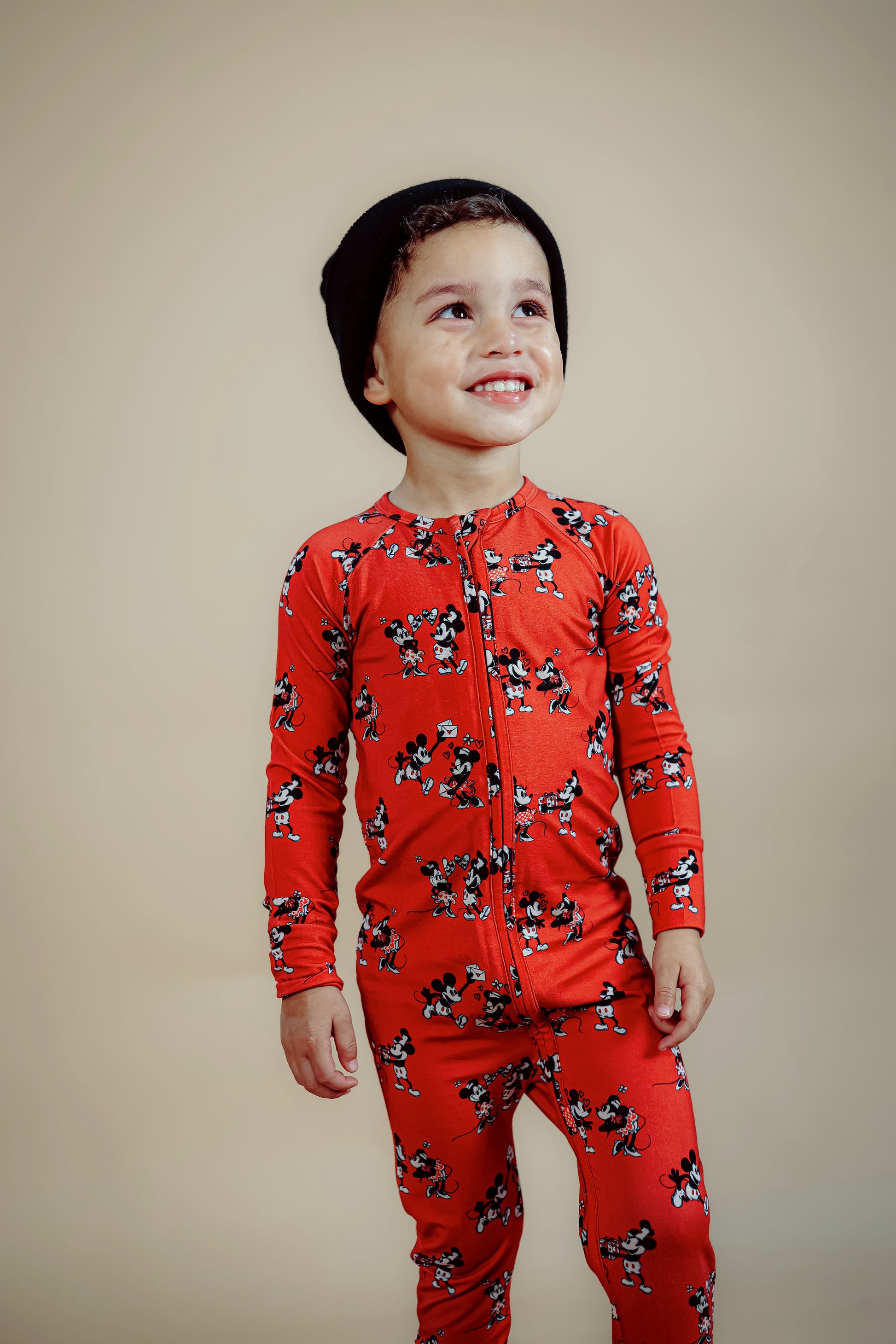 Feel the love in our print that features our favorite cartoon mouse couple sharing the Valentine’s Day spirit in a red background meant to spread Valentine's warmth to your little one.