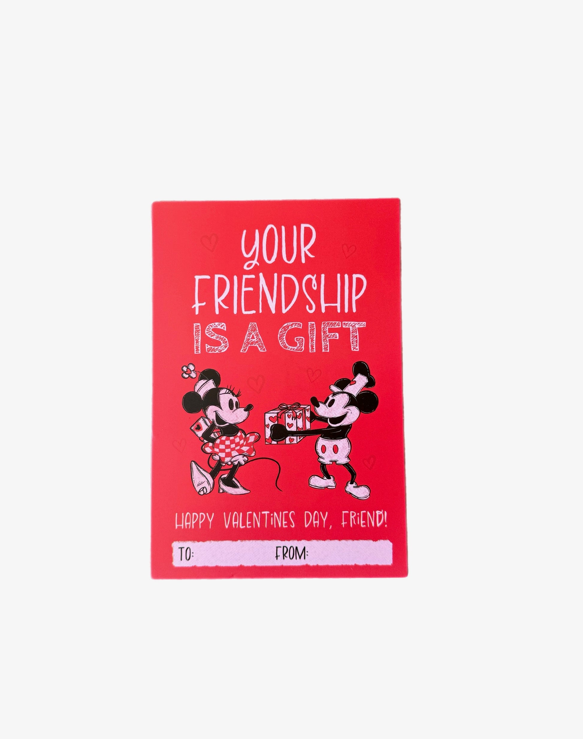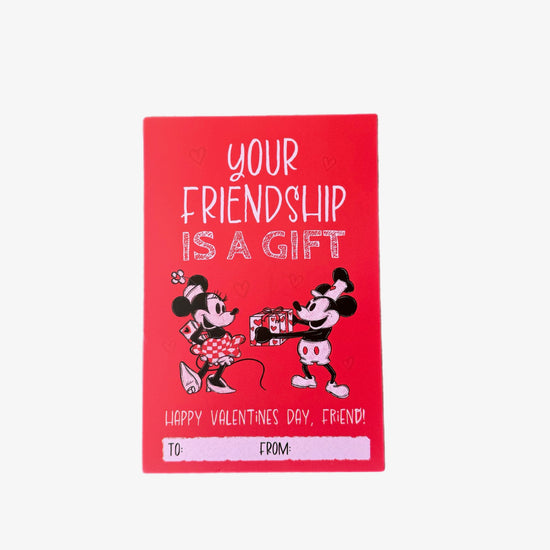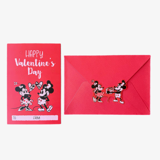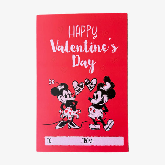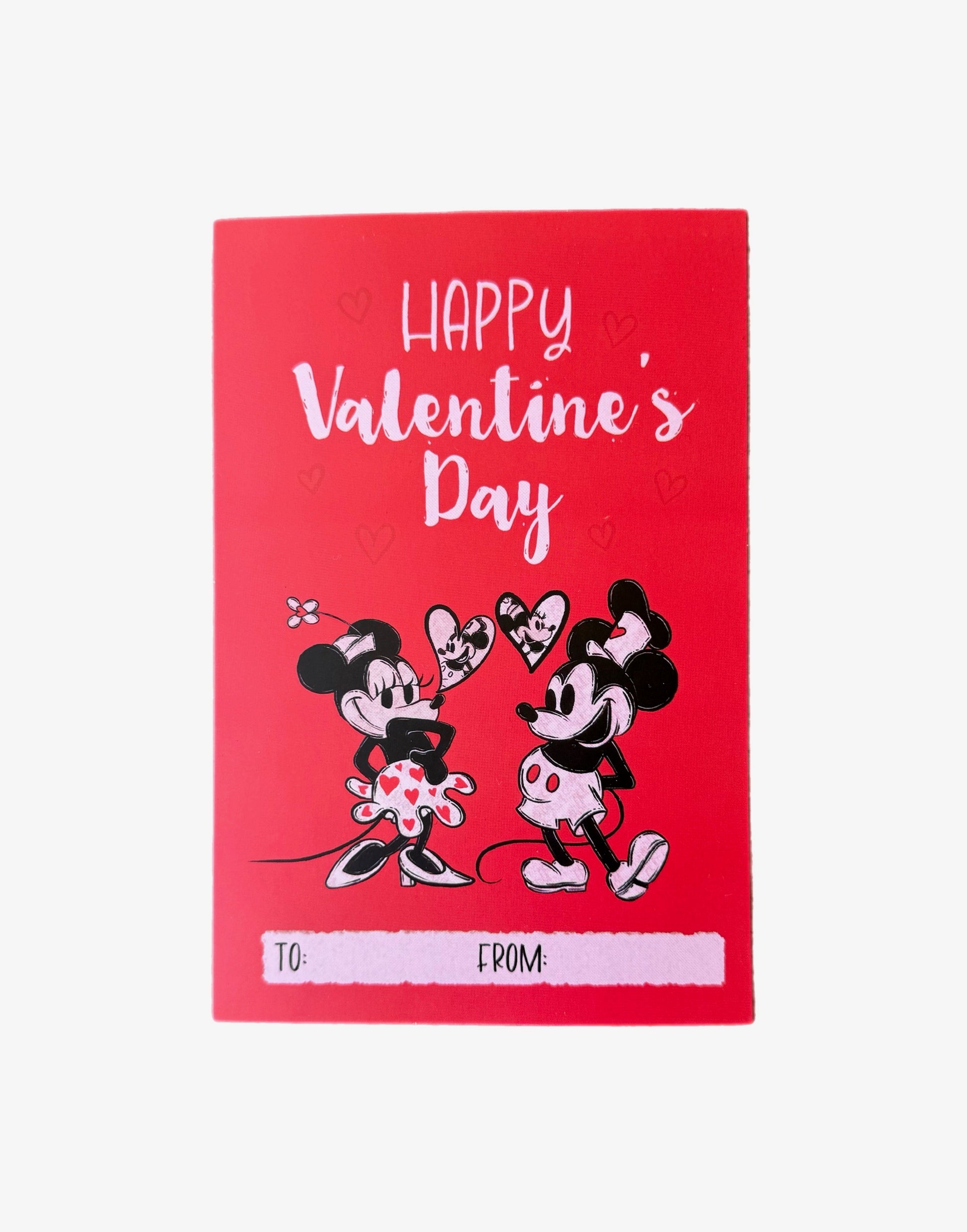Feel the love in our print that features our favorite cartoon mouse couple sharing the Valentine’s Day spirit in a red background meant to spread Valentine's warmth to your little one.