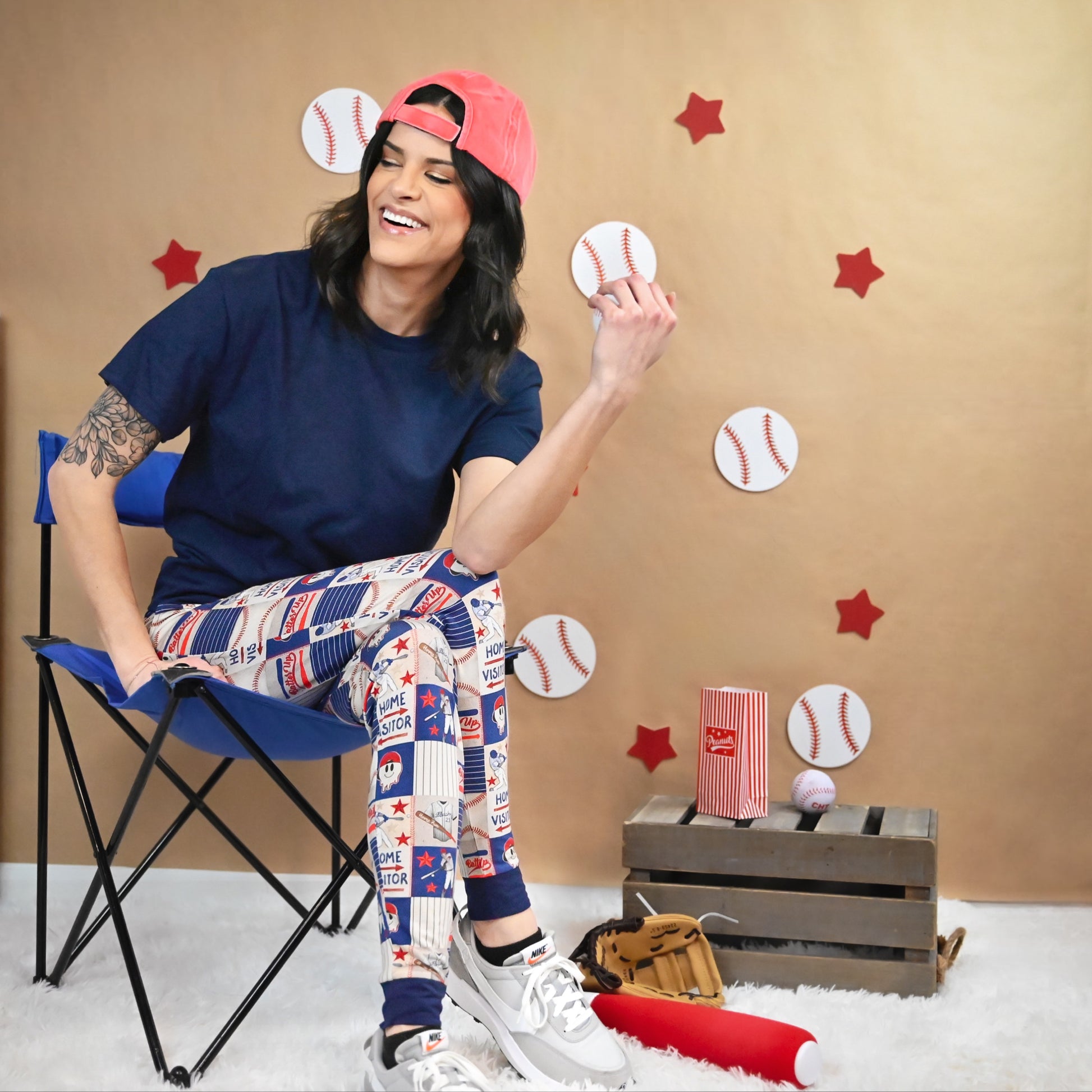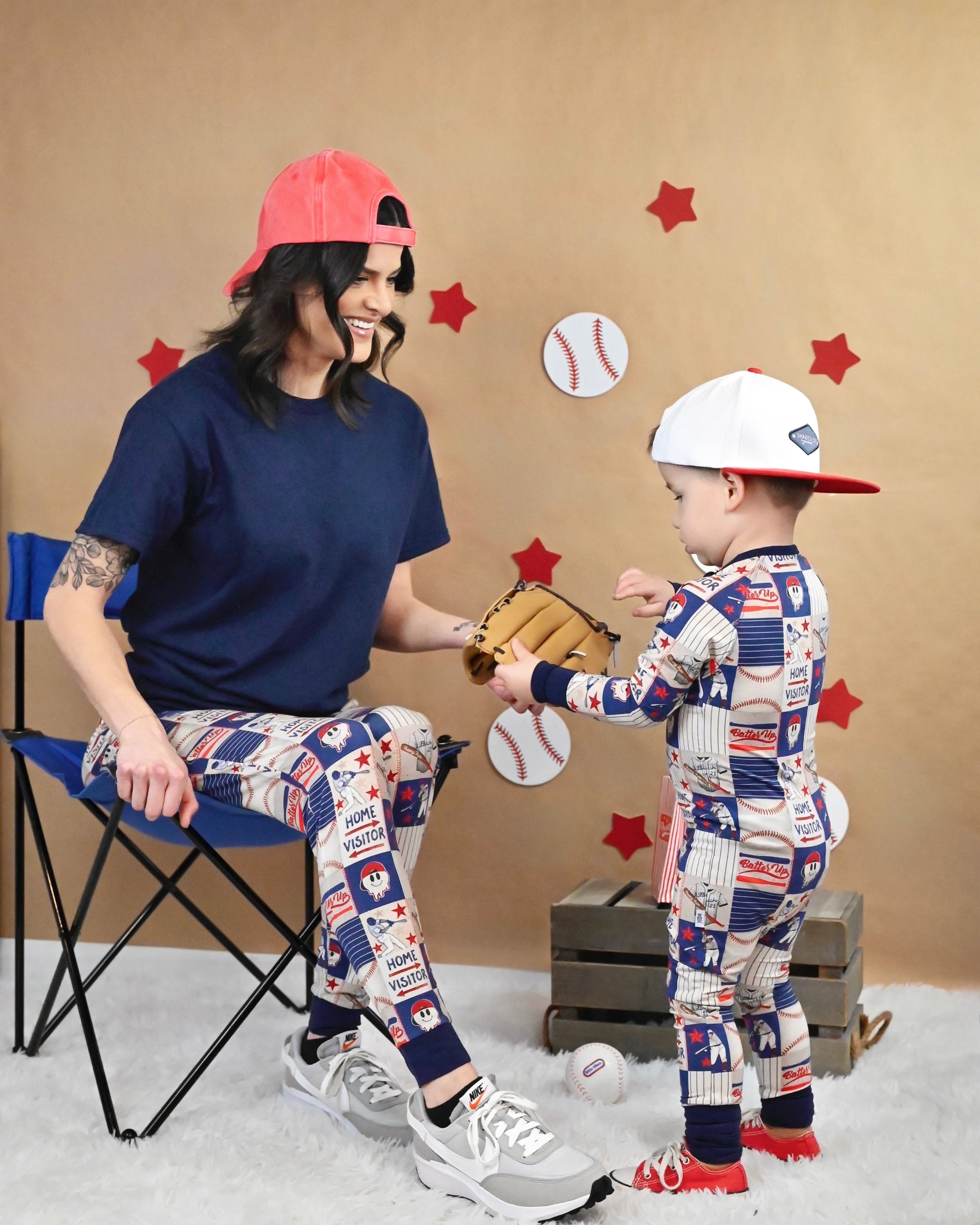 Batters up! Your babe is ready to run in this sporty American design featuring a home run hit and a baseball buddy, your lucky hitter, in red, white and blue. Field of Dreams is sportin' our cool vintage baseball vibe that your very own babe will be sportin' themselves in no time.