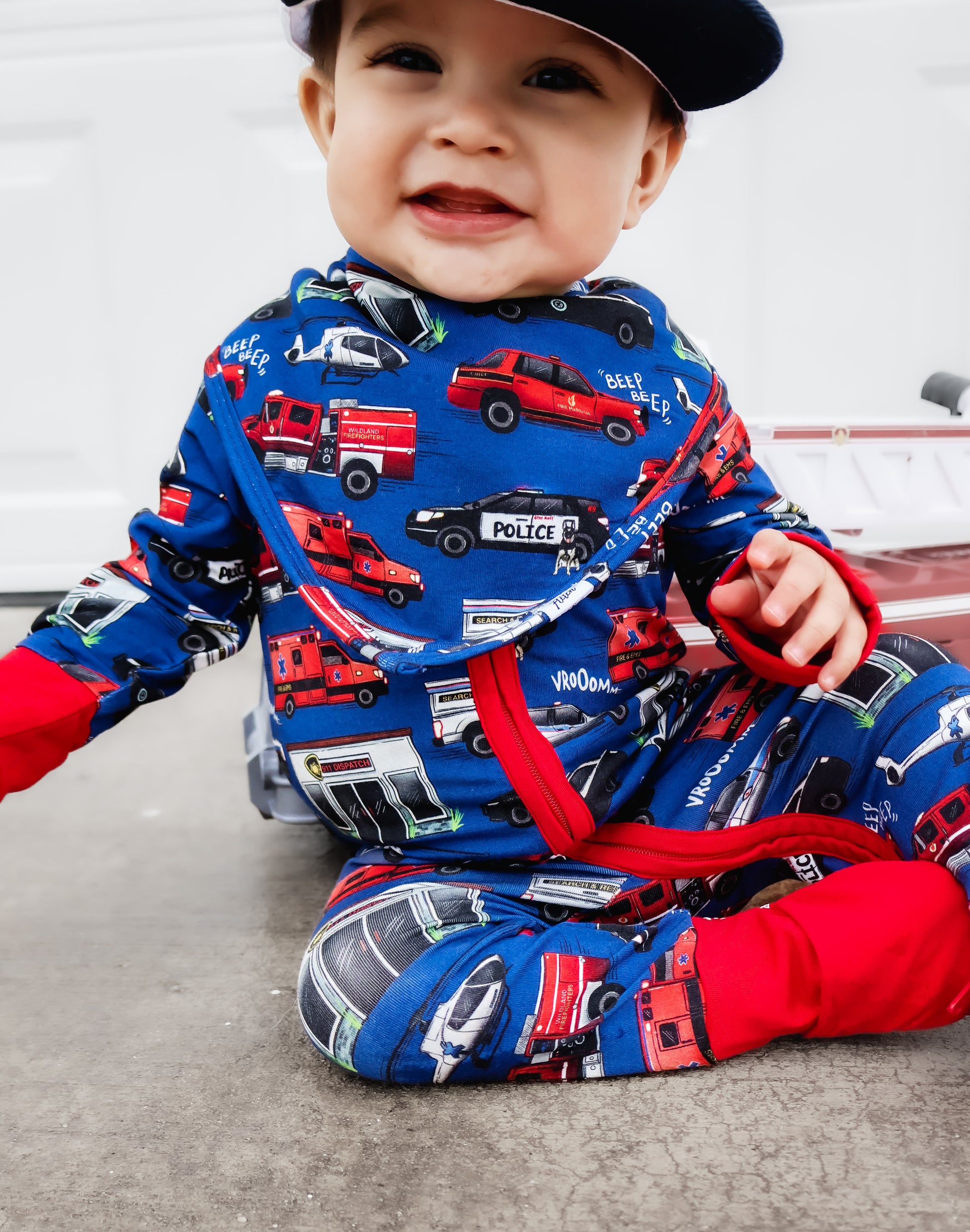 This blue dispatch themed print features modernized emergency vehicles of the rescuers we all depend upon and trust including fire trucks, police cars, airplanes and ambulances. Represent our first responders; heroes we love and rely on everyday.