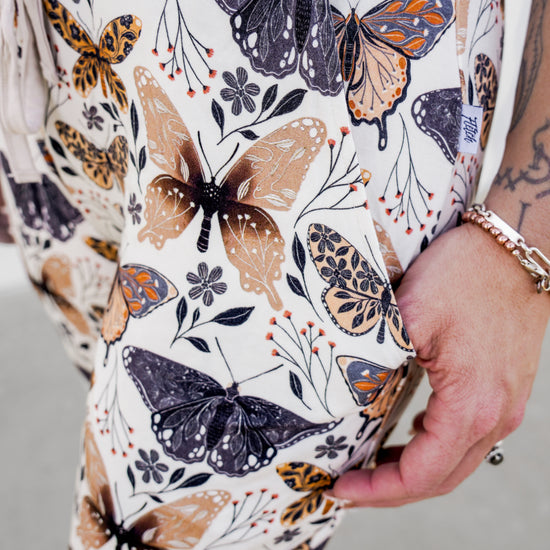 This neutral-colored print features butterflies in varying designs, each one as unique as your little one. From bed to brunch, nature, or playdates with your best butterfly buds, this print will have your outdoorsy babe flying freely.
