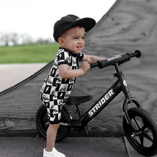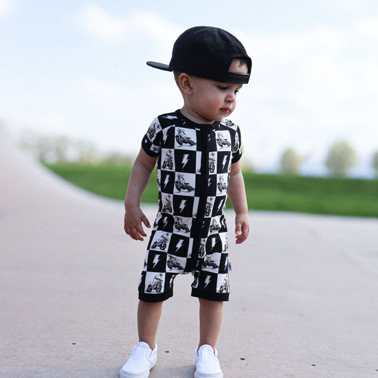An adrenaline pumping, heart- racing print for kids obsessed with extreme sports and electric motorbike adventures. Featuring dirt bikes and motorcycles in full action mode, this design has a killer black & white checkered pattern with lightning bolts. It’s all about high- voltage adventure and two- wheeled thrills. Perfect for any future rider who lives for the rush and isn't afraid to push the limits! You can feel the dirt flying and engine motors roaring! Warning: May cause shocking levels of rad.