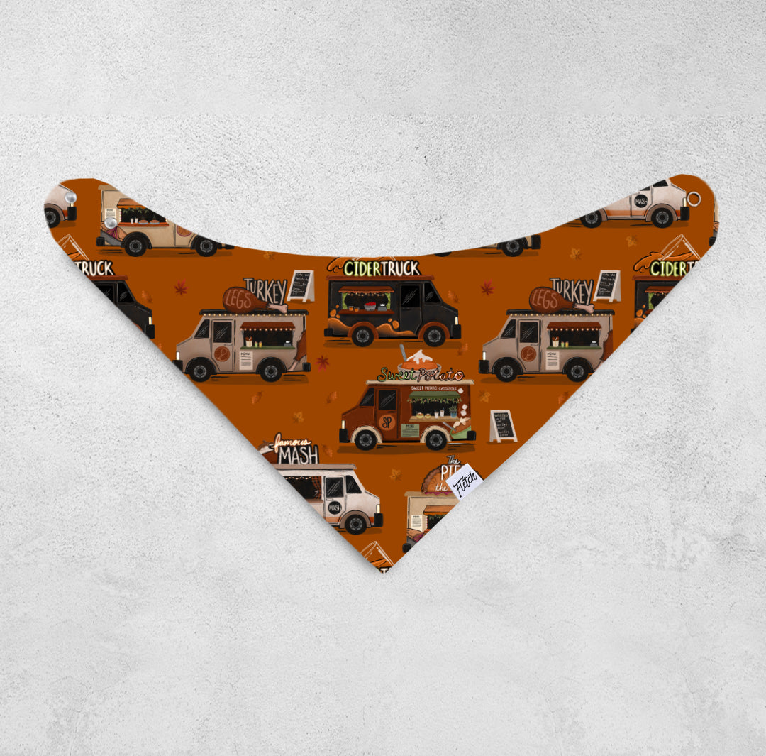 Your kiddo is ready to roll in this fall truck fest design! Autumn vibes vroom with food trucks that are serving up style on wheels - from taco trucks to ice cream wagons cruising across the print, this print brings all the delicious food festivals and thanksgiving vibes with a fun fall attitude! Get ready for cider, pies, turkey & mash!