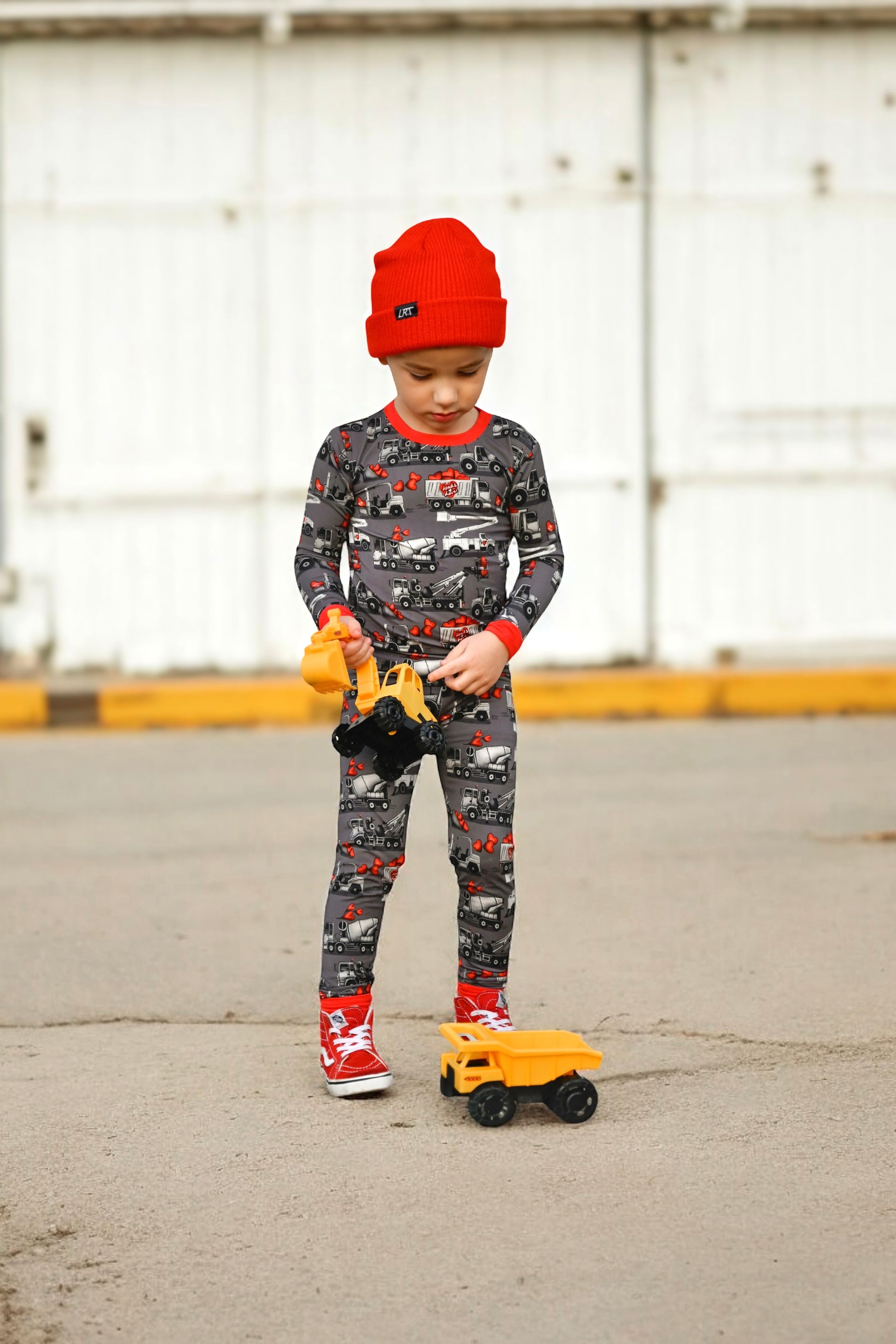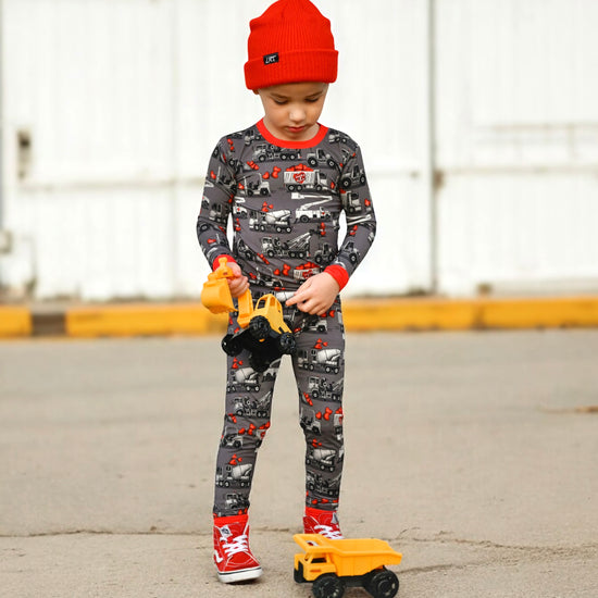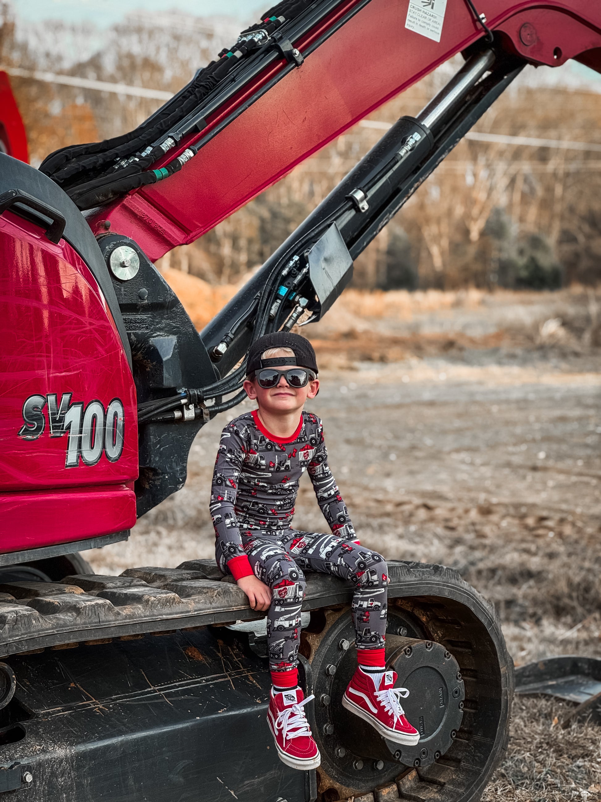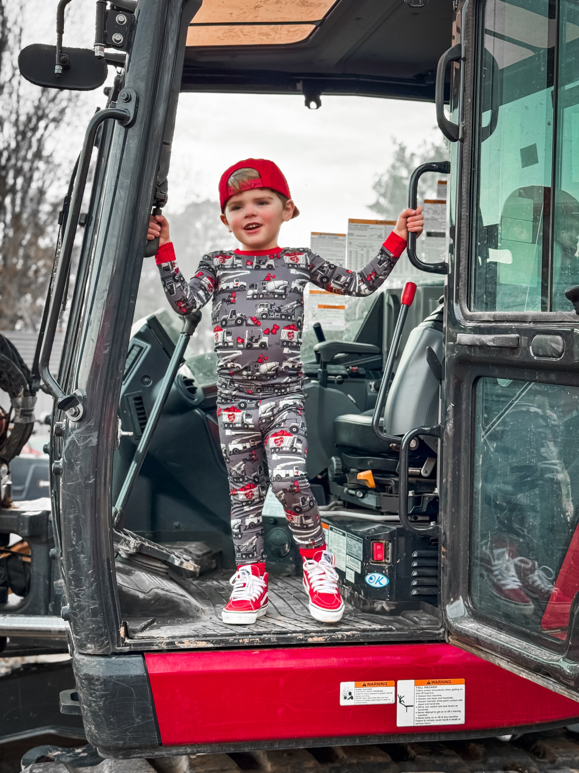 Delivering some serious Valentine's vibes with Loads of Love! This construction truck print hauls valentines' love with big rigs, cement mixers, dump trucks, and tractors carrying their precious cargo - bright red hearts! These hardworking vehicles are on a special Valentine's mission, scooping up hearts and spreading love everywhere they go. "Be Mine" and "Fragile" signs add that sweet touch to all the construction action. It's the perfect mix of tough trucks with tender hearts - because even the biggest machines can deliver the biggest love! Ideal for little builders who dig big trucks and aren't afraid to show their sweet side!