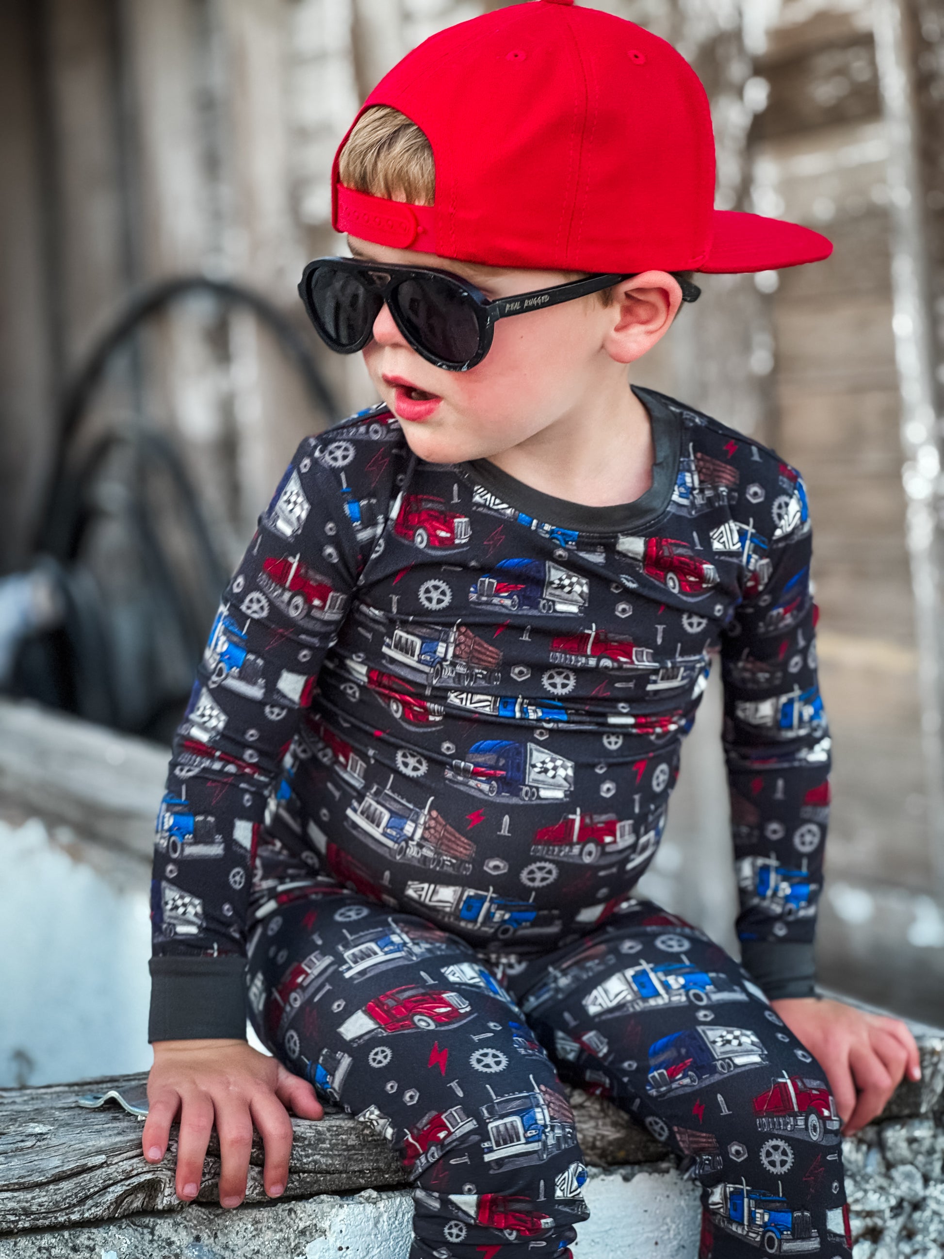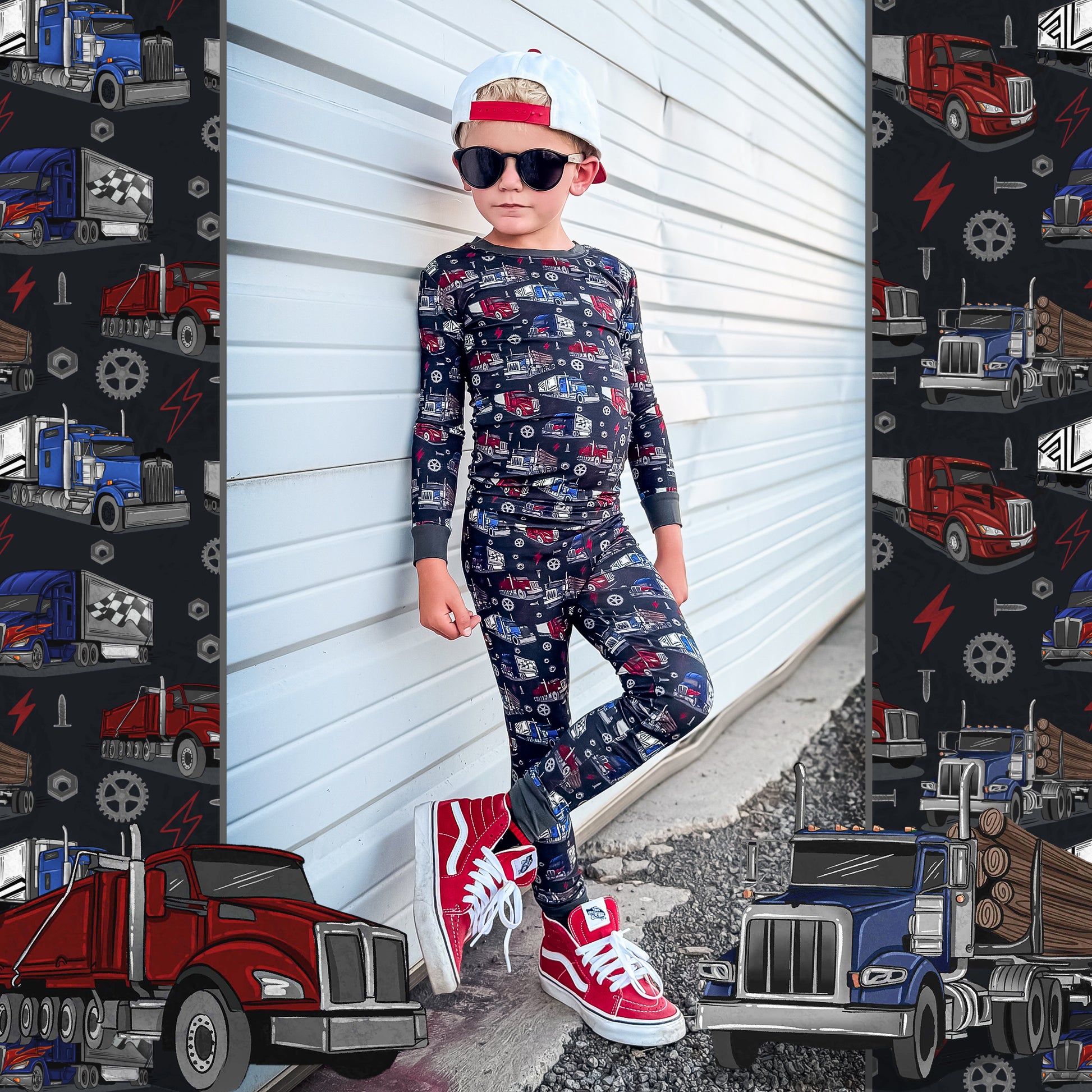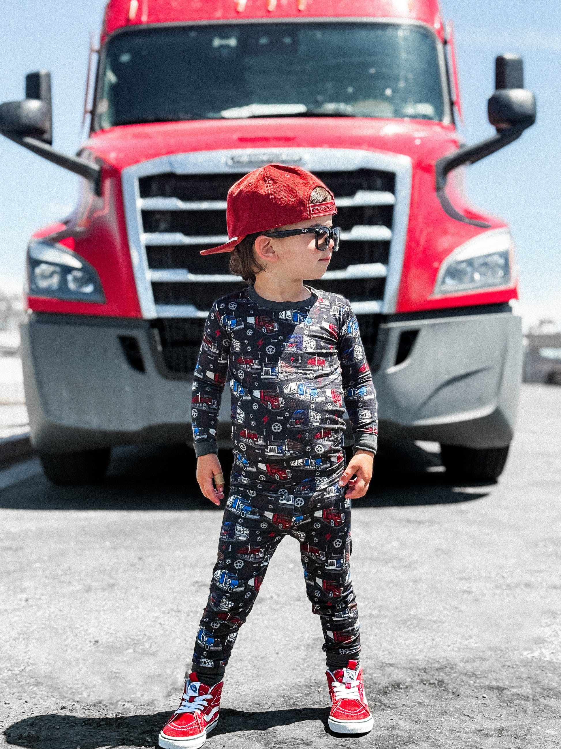 This totally rad truck print is absolutely epic for any little dude who's obsessed with big rigs! The design features an awesome all-over pattern of semi-trucks and 18-wheelers in bold colors. It's got serious highway hero energy that'll make any little dudette or dude feel like they're ready to hit the open road! Rig your red, white and blue adventure to your style.