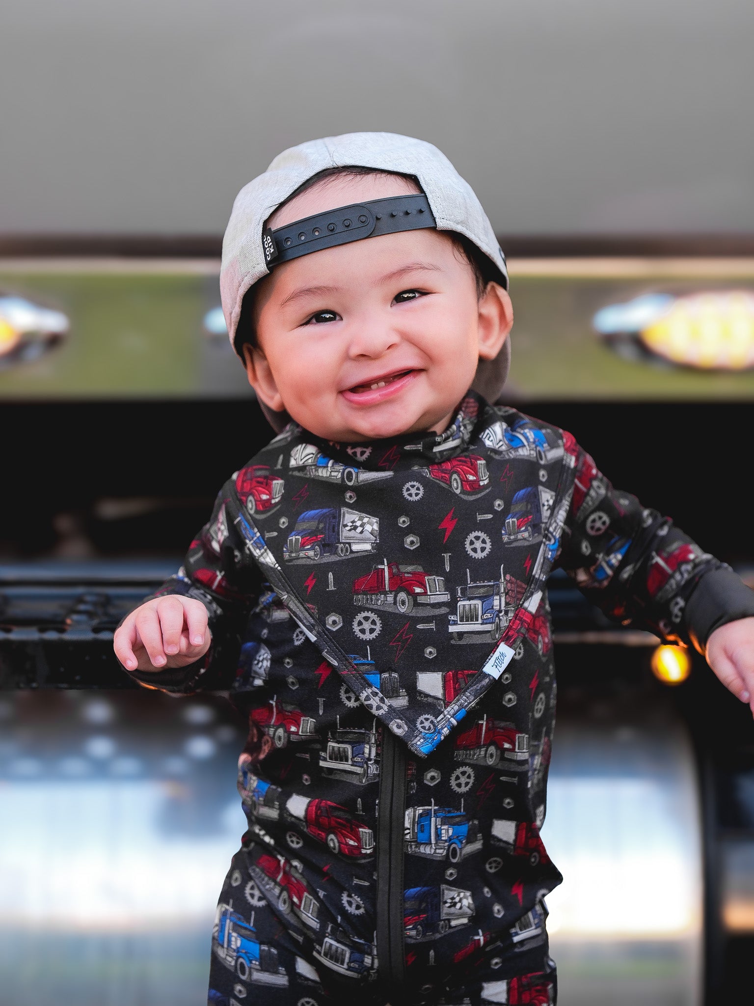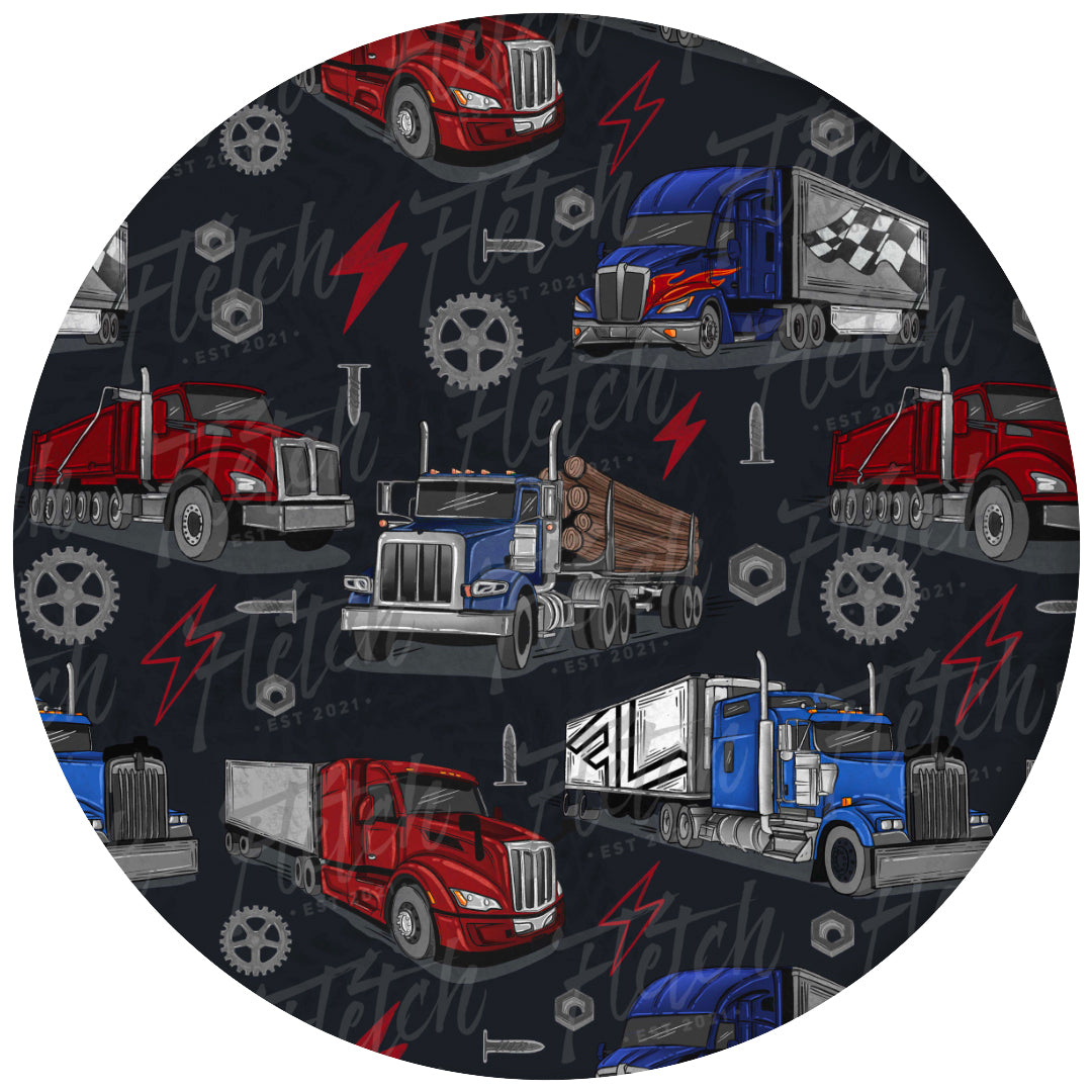 This totally rad truck print is absolutely epic for any little dude who's obsessed with big rigs! The design features an awesome all-over pattern of semi-trucks and 18-wheelers in bold colors. It's got serious highway hero energy that'll make any little dudette or dude feel like they're ready to hit the open road! Rig your red, white and blue adventure to your style.