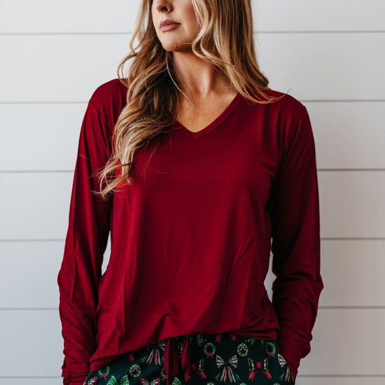 Jingle Bows Adult Women's Long Sleeve V-Neck Shirt