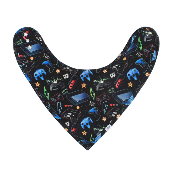 Game on! This totally epic video game print is loaded with awesome controllers, rad consoles, and cool power-up stars scattered across a black backdrop. With "Game Over" vibes, lightning bolts, and hearts for extra lives, this arcade design is absolutely perfect for any little gamer ready to level up their style and conquer the most retro gaming adventures!