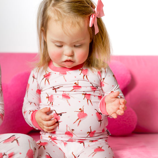 Twirl into something sweet for Valentines Day! Graceful ballerinas spin with their pink tutus - dancing with sweet candy hearts. Perfect for little dancers who live for tutus, pointe shoes, and expressing themselves through dance. Creating the perfect Valentine's Day vibe, this dancing ballerina print brings the fairy-tale ballet performance feeling with love-filled candy-hearts. It's all about beauty, grace, and spreading the love.