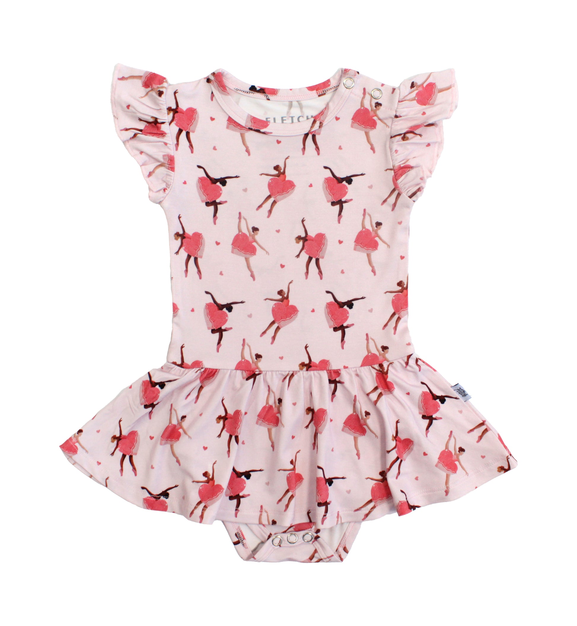 The attached skirt adds the perfect twirl, while the snap closure underneath makes diaper changes quick and easy. Comfortable, secure, and easy to wear — it’s an everyday favorite for babies up to 18–24 months.