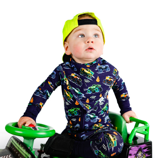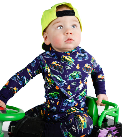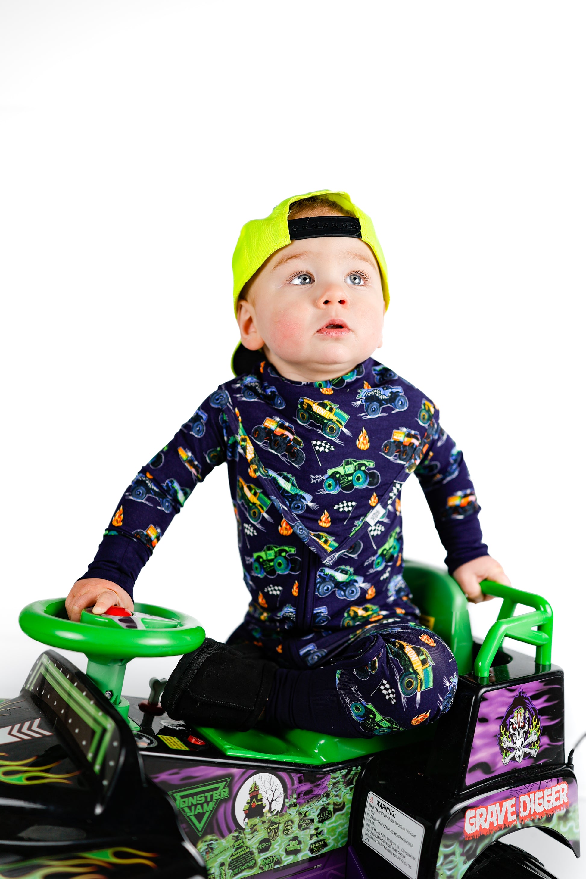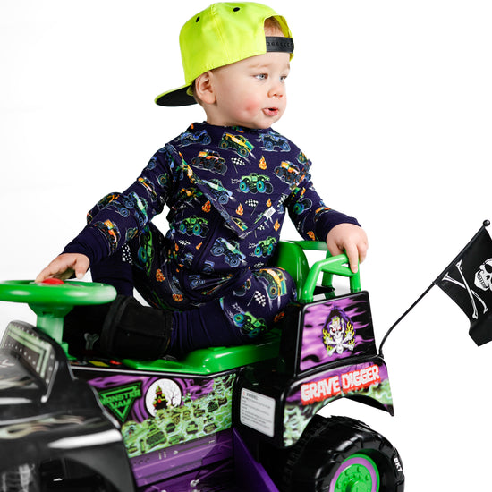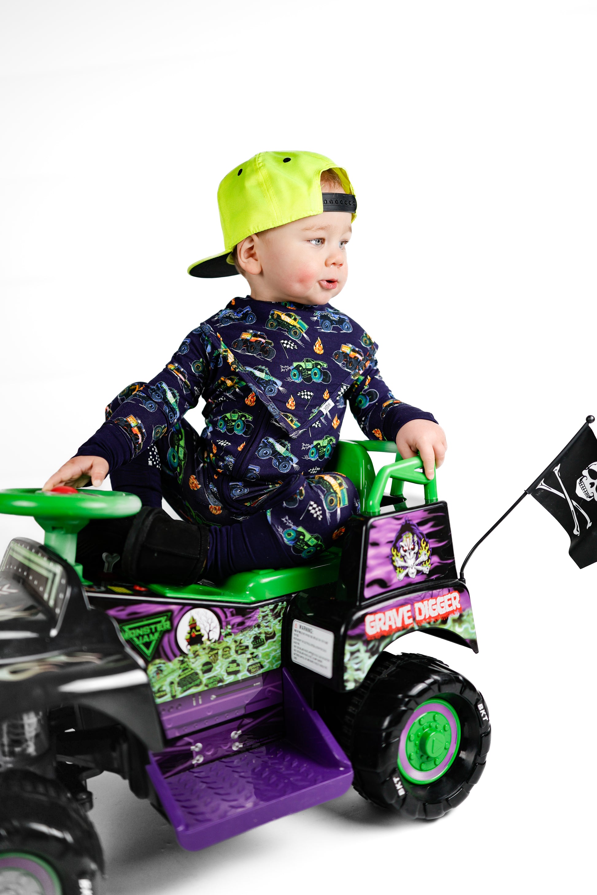 Rev those engines and light up the night! Monster jams are here in this epic neon glow-in-the-dark monster truck print. It’s bringing stadium energy and big trucks are crushing it. Checkered racing flags wave between flames and tire tracks while wheels own the arena. The best part? When the lights go out, this print glows - keeping the monster truck mayhem going all night long! Racers will shine their motors bright, even after bedtime. This design is totally revved up and ready to glow!
