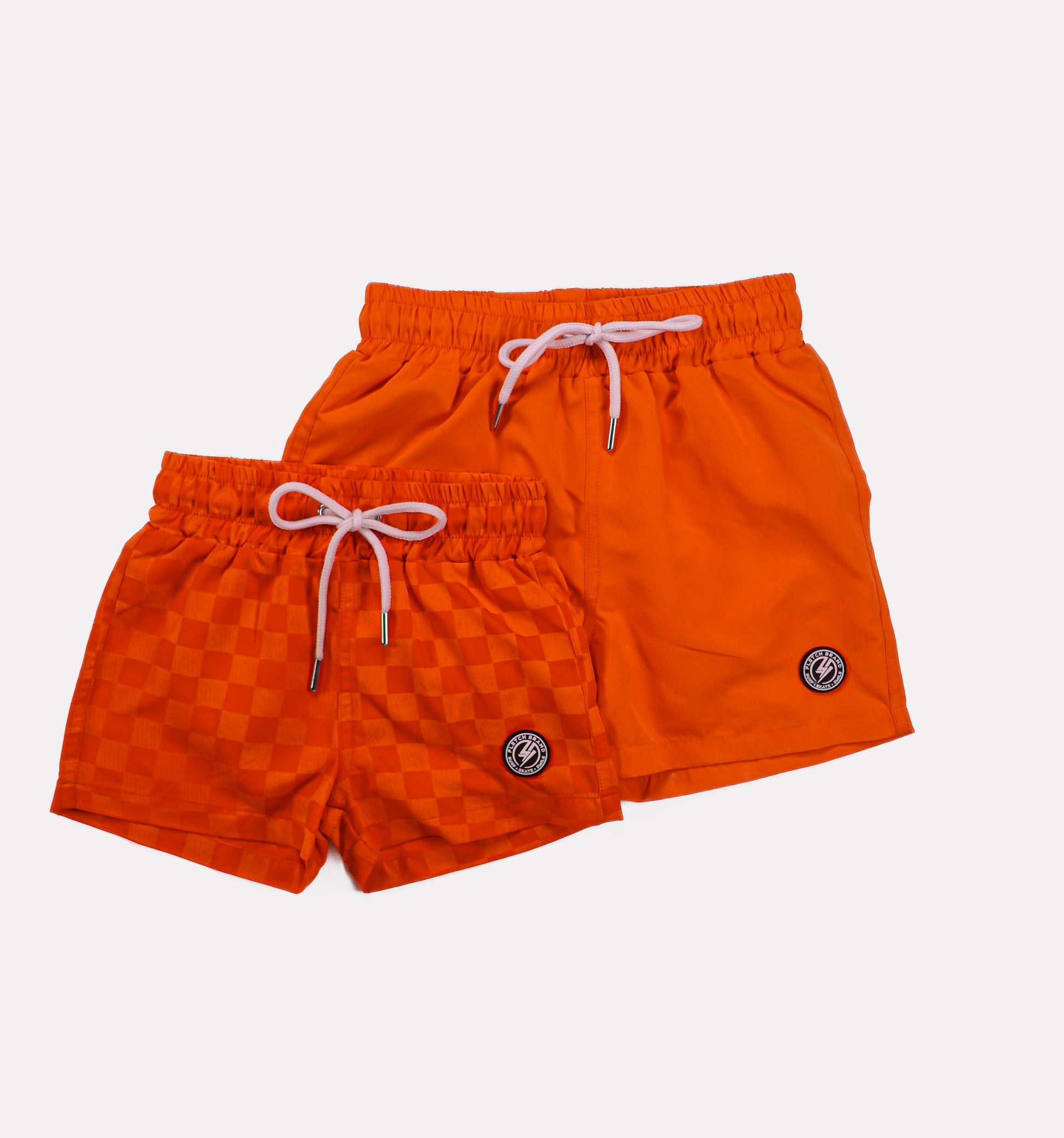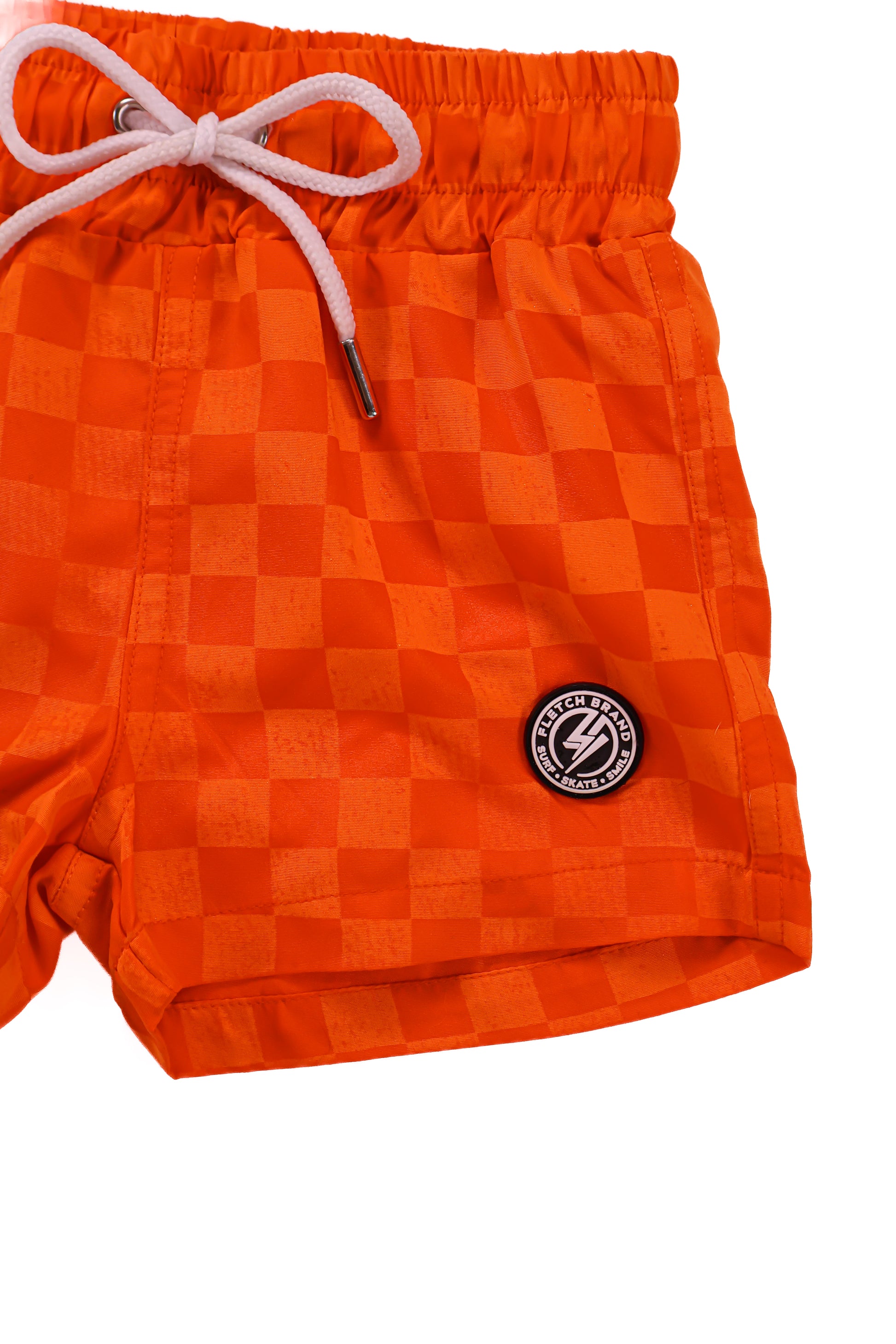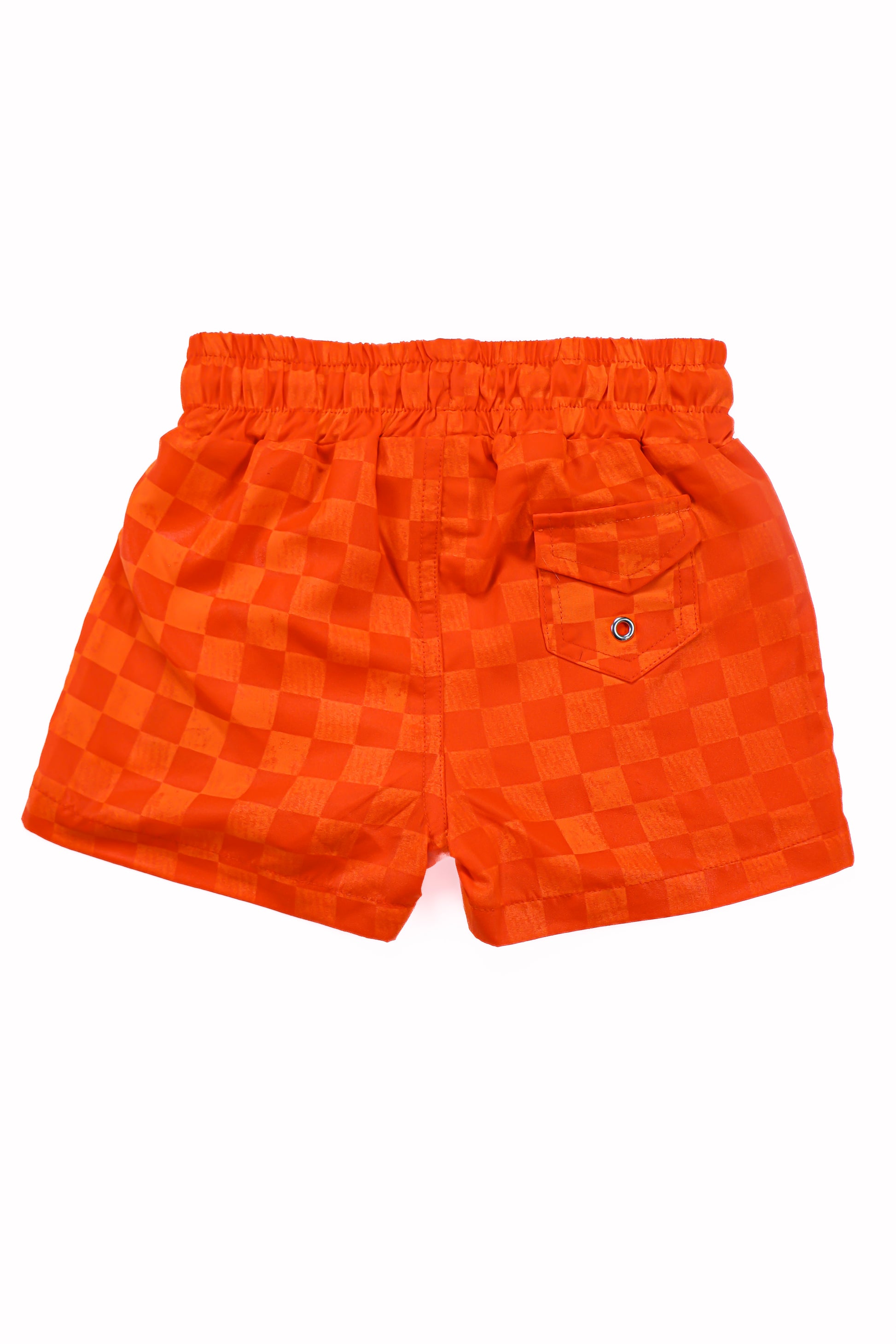 Neon Orange Checker Swim Trunks