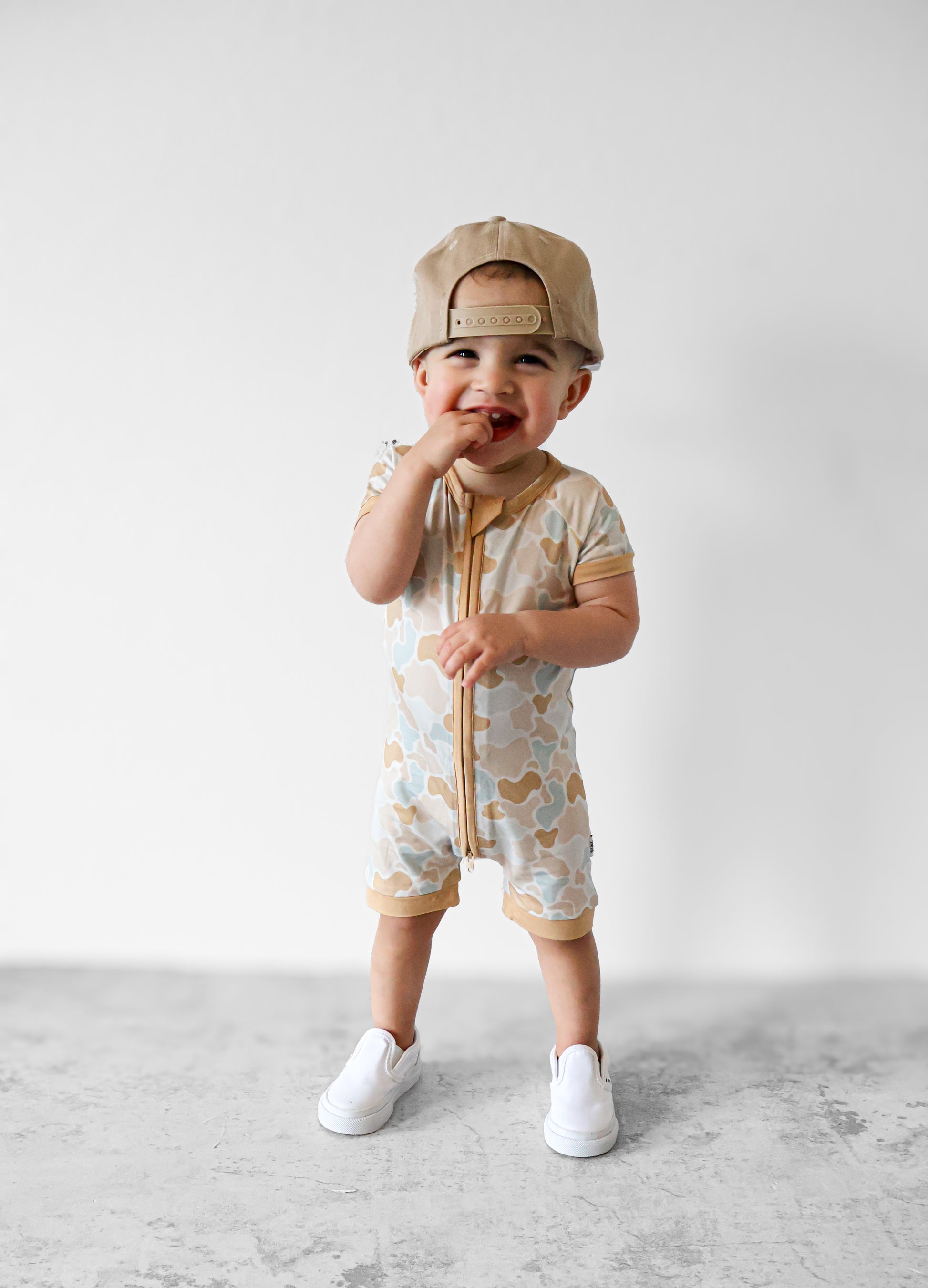Your kiddo will have sand-sational stealth mode and be able to do any dune disappearing act in this neutral desert-like camo print. Camo-leon’s know how to camouflage best, does your little one love playing hide and seek or playing desert adventures? This design is sure to be sneaky like a snake or a lizard in any sandy spot - but don’t worry, there’s parent seeing abilities sewn in.