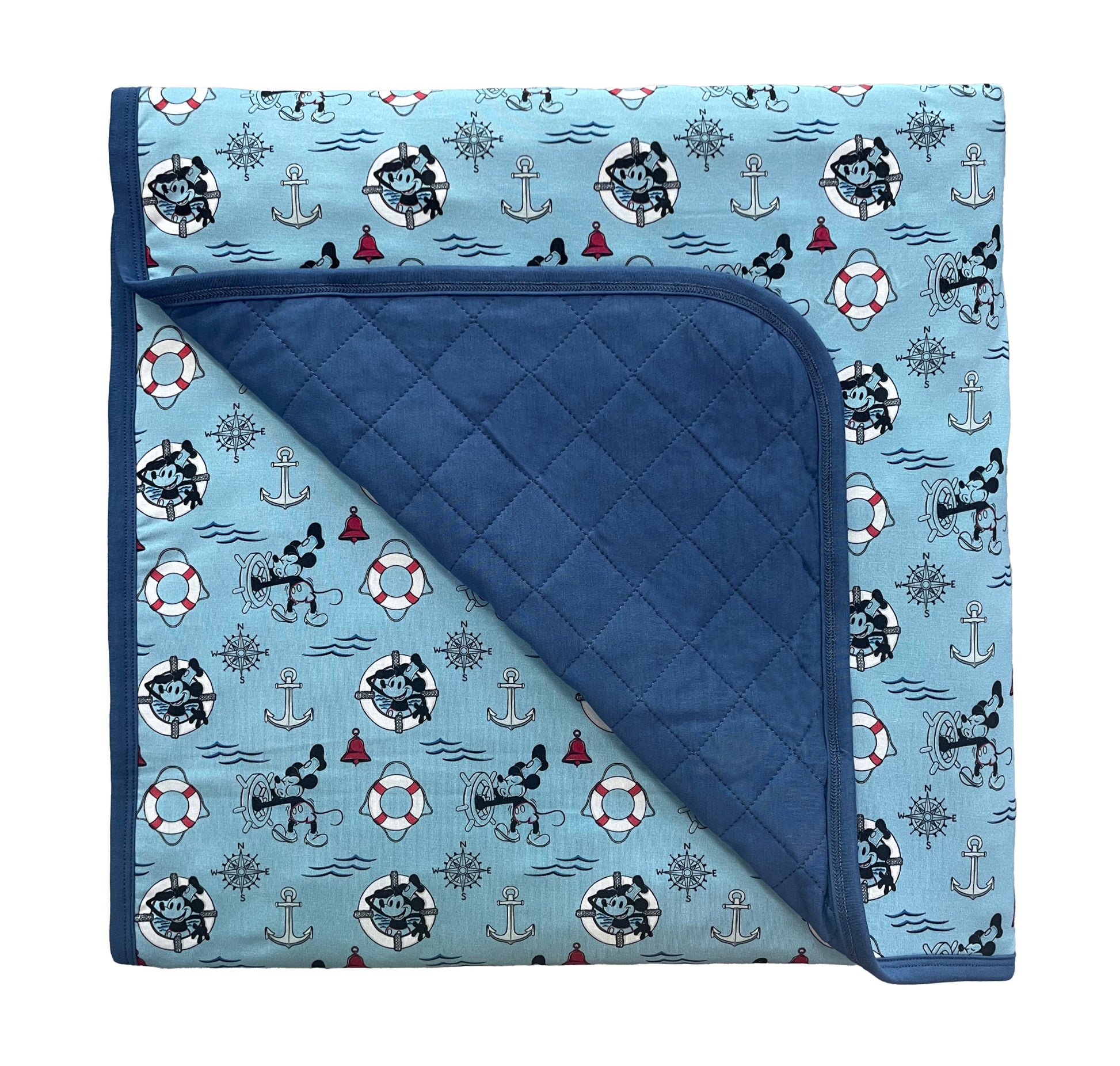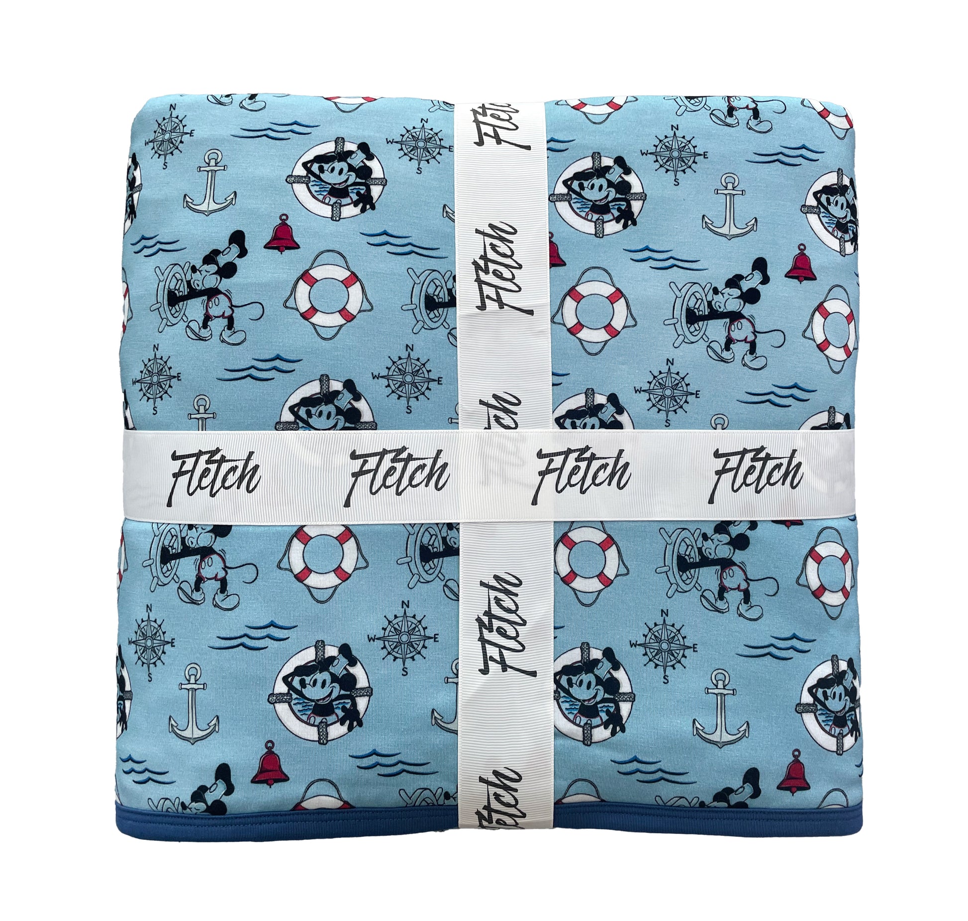 Ahoy there! Your pal mouse is an expert swimmer - Boat on the sea with your fave mouse in style while wearing this nautical themed design. With shades of blue, this print features sea adventures, boating, and whistlin’ along with the Cap’n cartoon mouse! Oh Buoy is this the perfect print for hangin’ around on your beach day or breaking out the kiddie pool in the backyard.