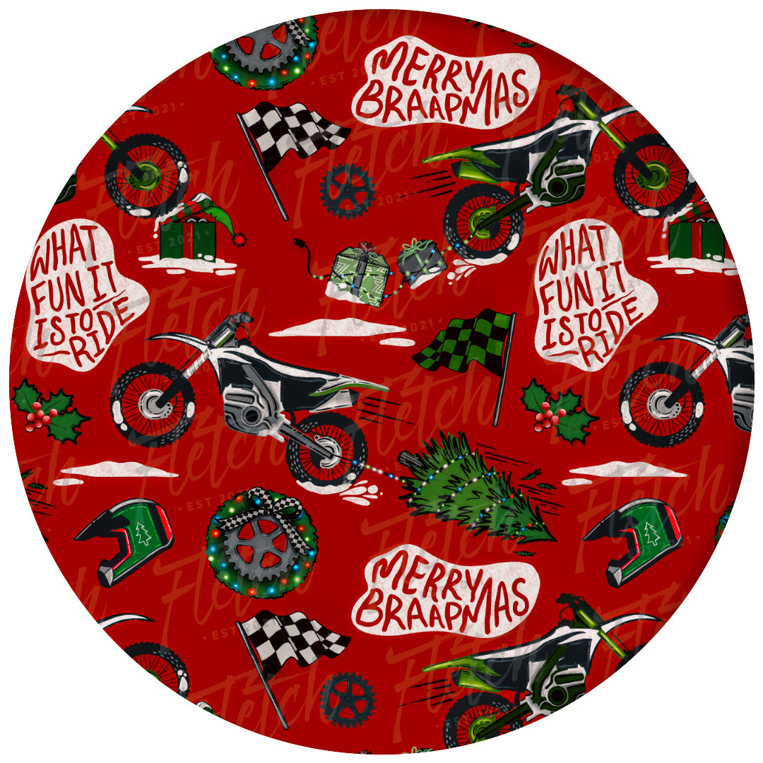 This epic Christmas motorcycle print is revving up the holidays with some seriously rad dirt bikes! Little dudes/dudettes will be stoked to see awesome motors & dirt bikes getting festive with holiday cheer. What Fun It Is to Ride, perfect for any little speed demon who loves big wheels and checkered racing flags, this design is ready to tear up the holiday trails.