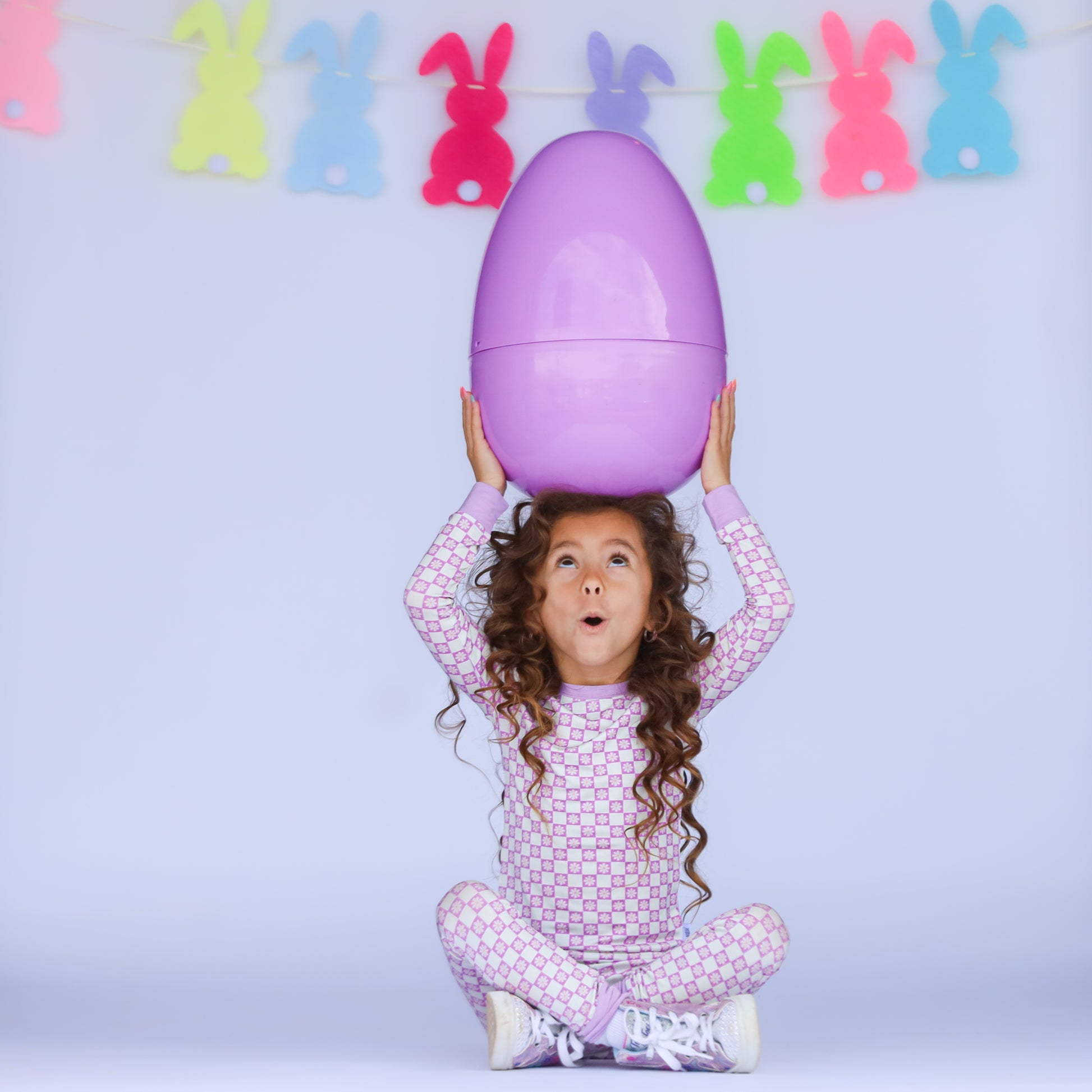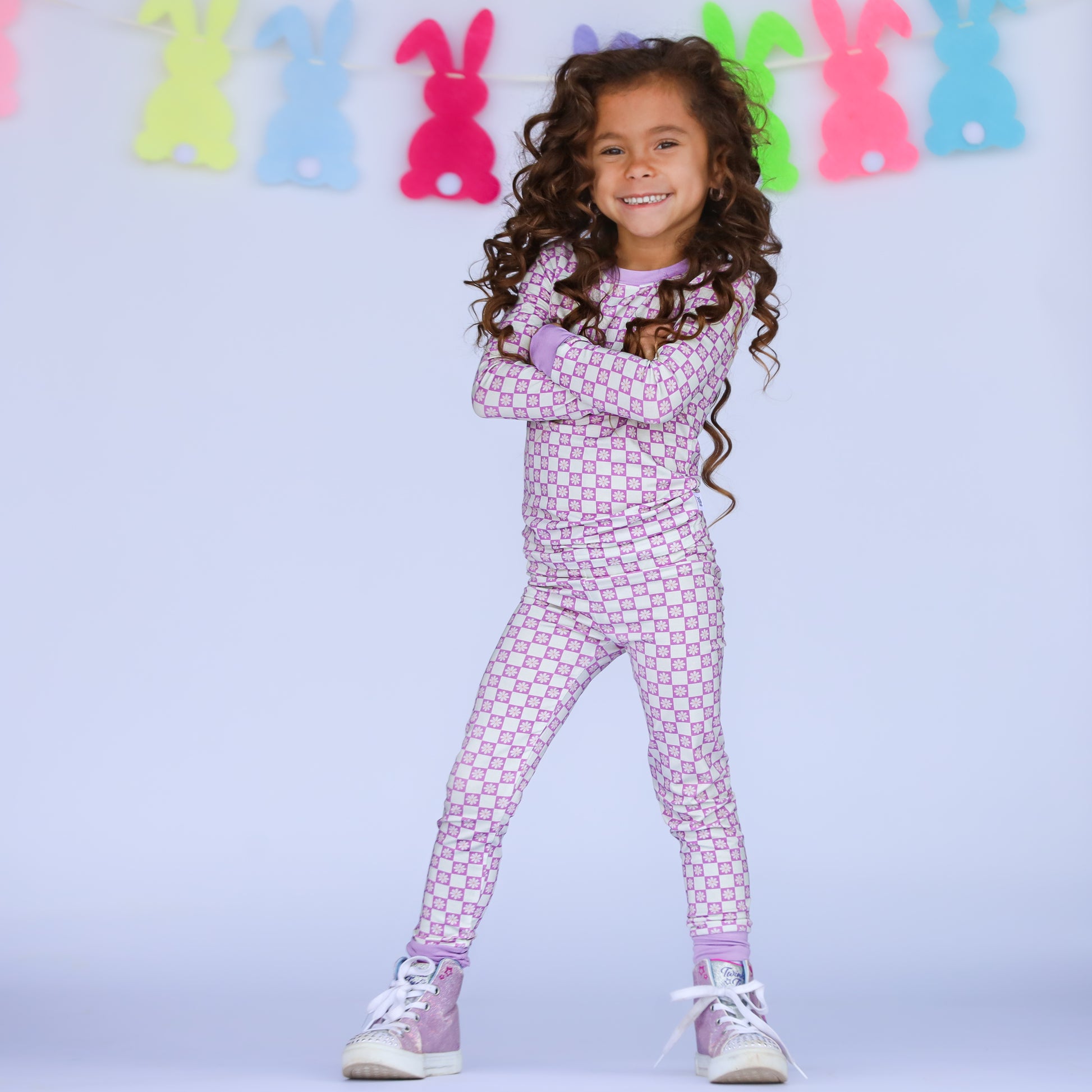 This retro purple & pink print features spring flowers in a checker theme, fitting for your rad flower-power gal that loves vintage vibes. The vibrant and playful color theme makes this print perfect for everyday wear when your babe’s feeling whimsical.