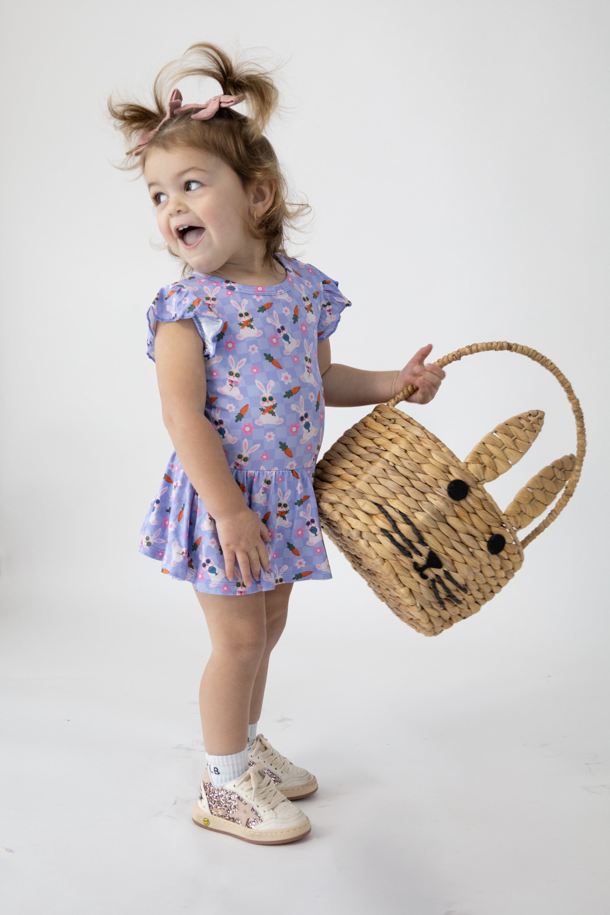 Hoppy Easter girlie bunnies! This totally adorable Easter print hops with the cutest spring bunnies with bows and sunglasses wearing flower crowns and floral accessories. Pink blooms and orange carrots scatter between these precious cotton-tailed cuties ready for the ultimate Easter egg hunt. Each little bunny rocks those big sparkly eyes and floppy ears - total bunny goals! The garden party vibe is on with the flowers throughout this Spring print. Perfect for little rabbits ready to hop into Easter Sunday with serious cuteness and all the spring celebration energy! The perfect Easter basket gift.