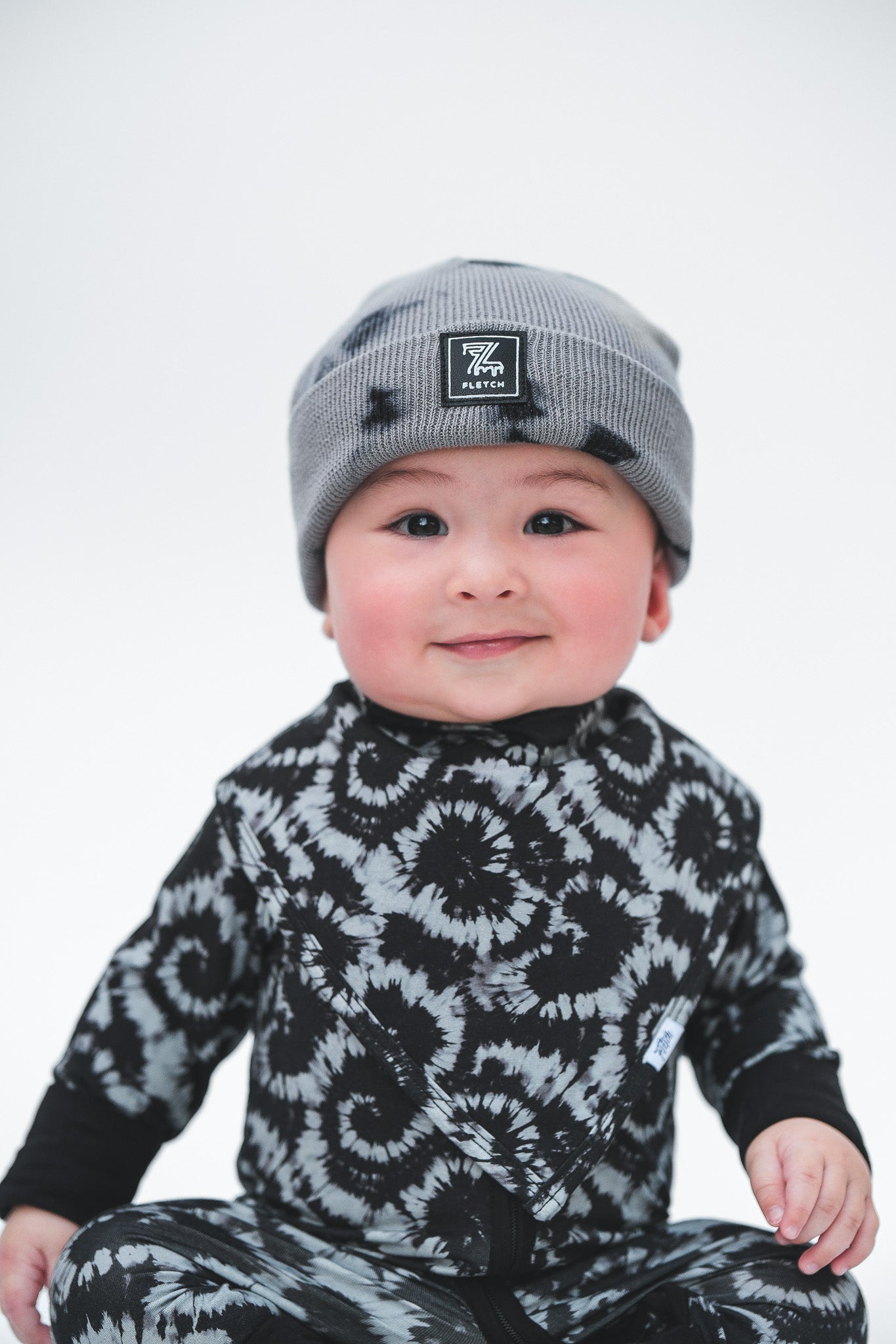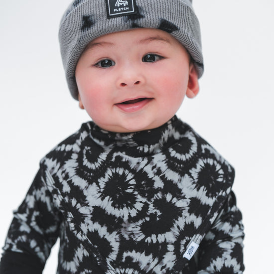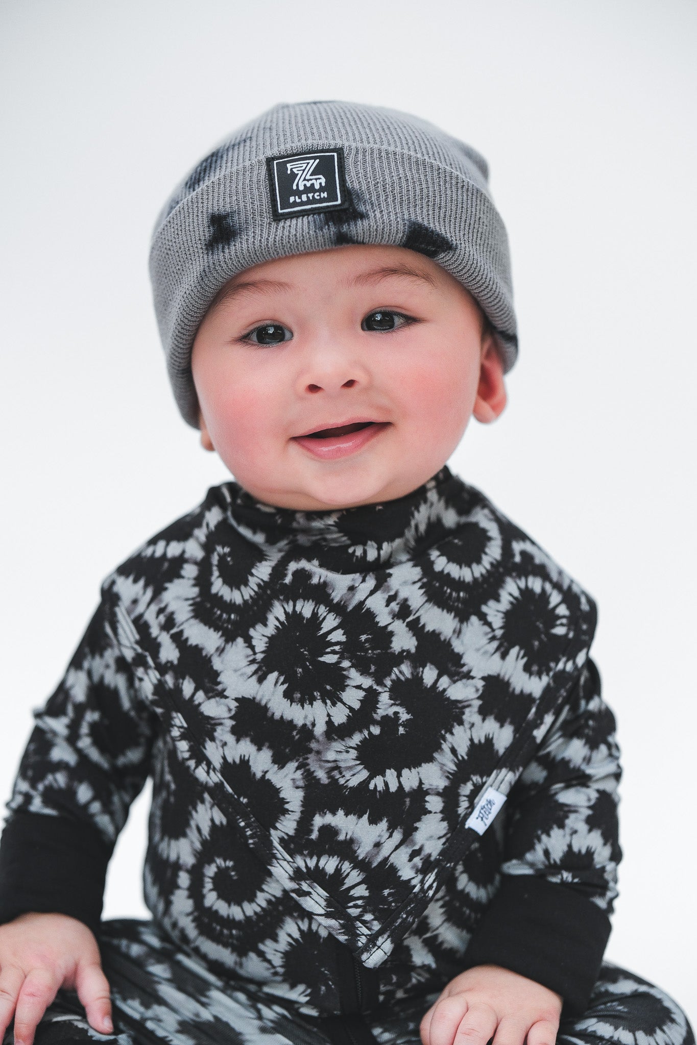 This tie-dye design is absolutely killer! The swirled gray and black pattern's so rad, any little dude/dudette will feel the swirl of epic Halloween vibes. It's tie-dye for!