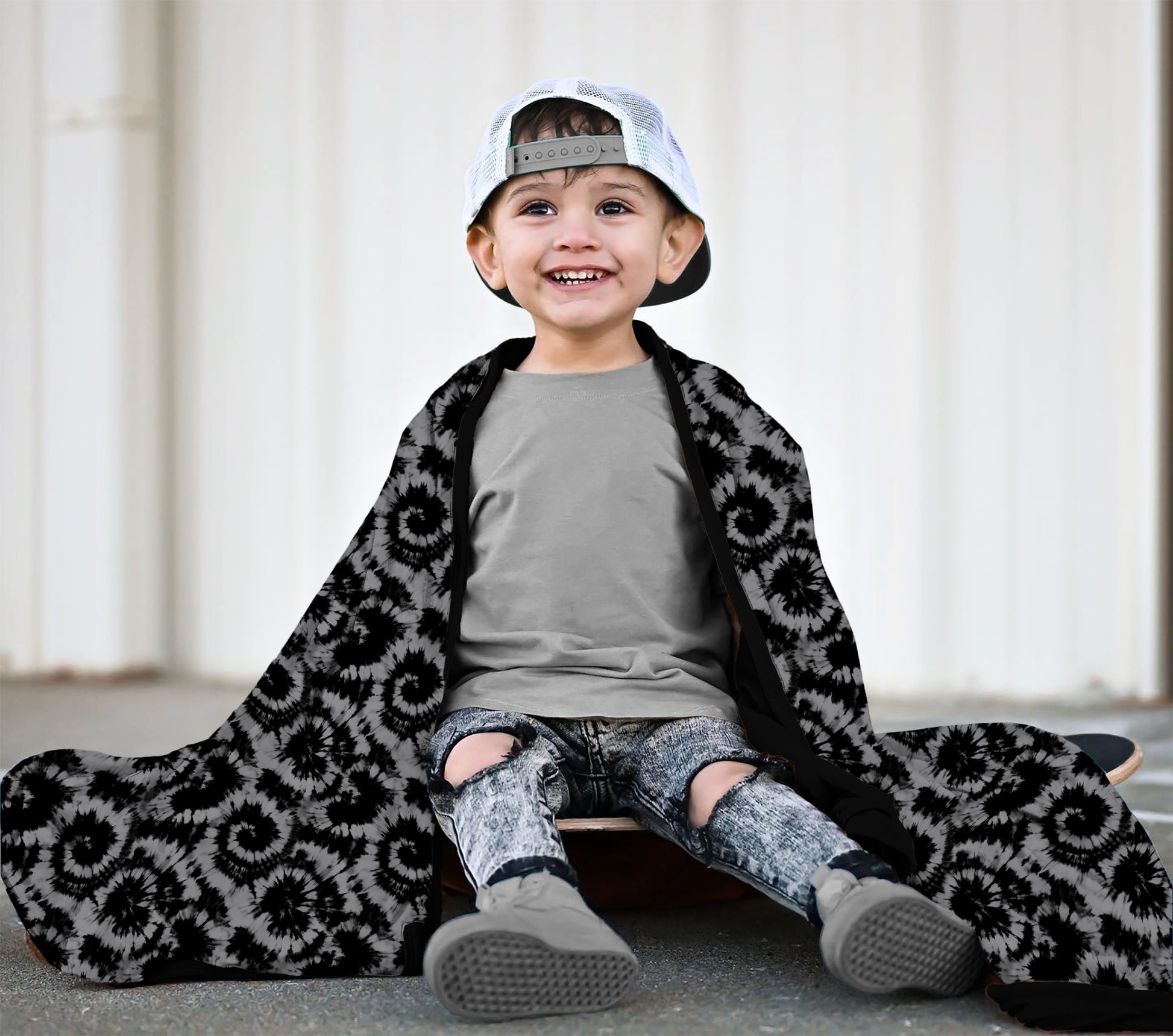 This tie-dye design is absolutely killer! The swirled gray and black pattern's so rad, any little dude/dudette will feel the swirl of epic Halloween vibes. It's tie-dye for!