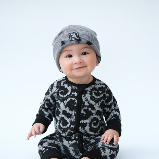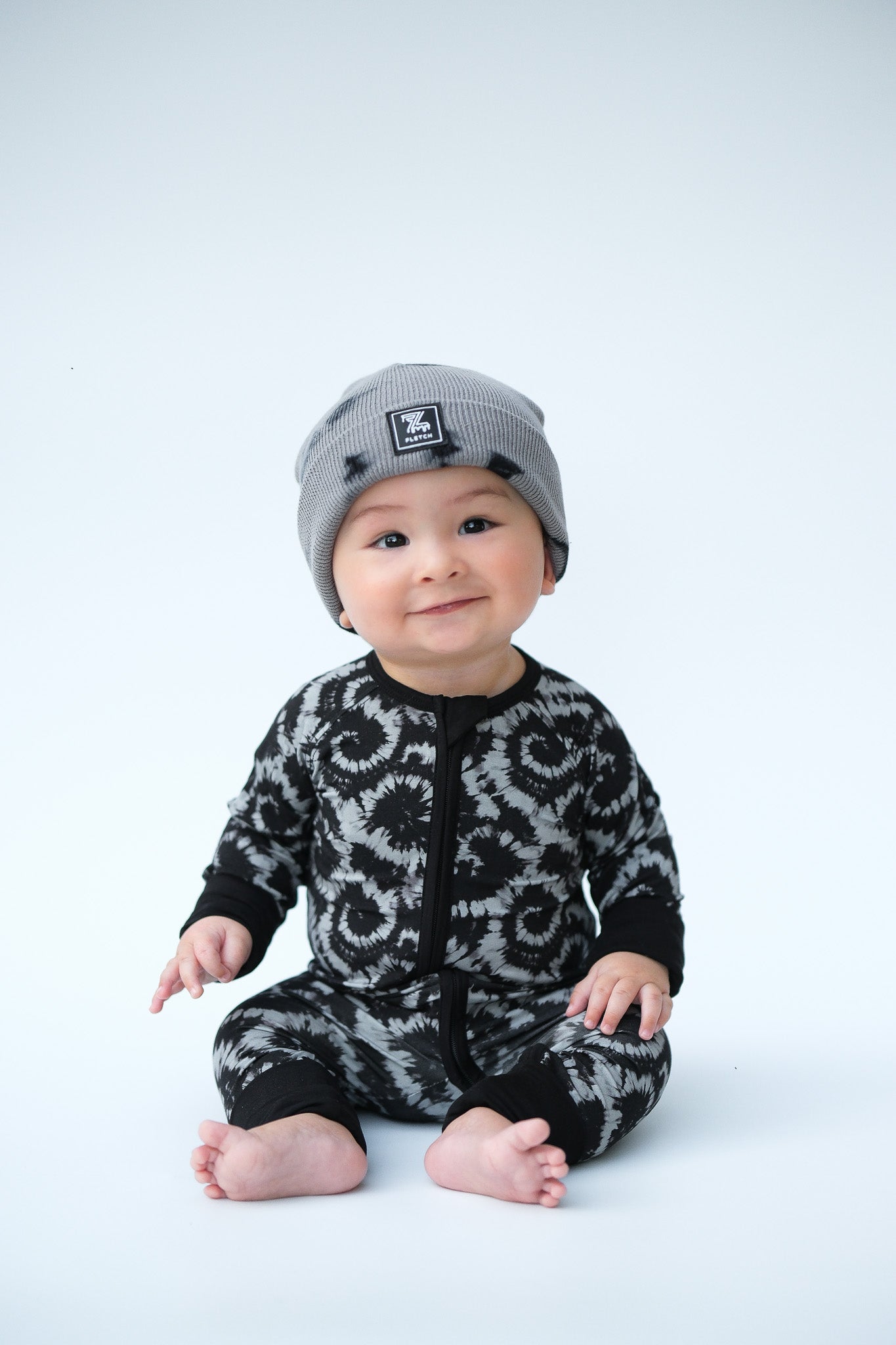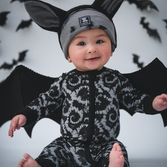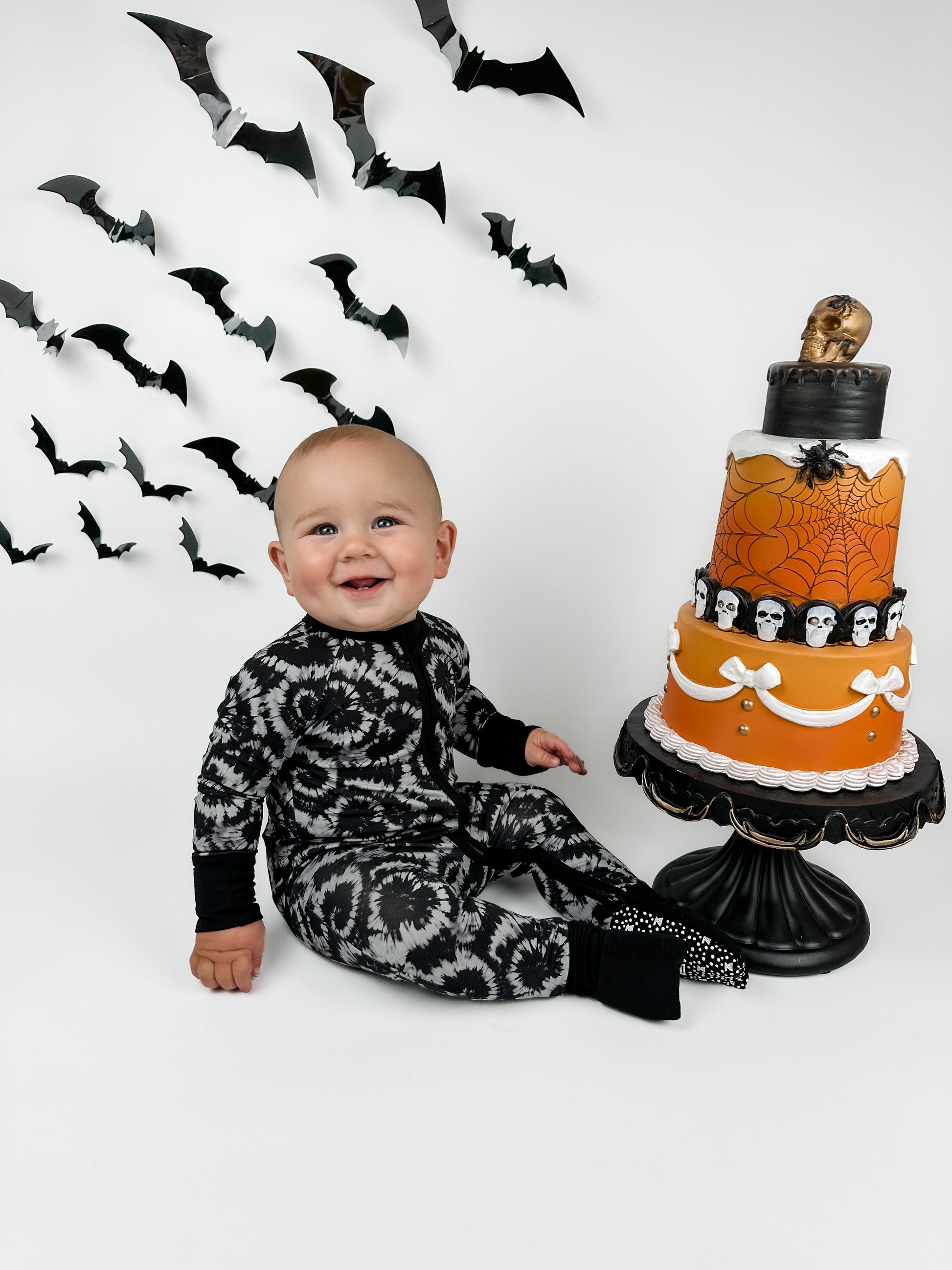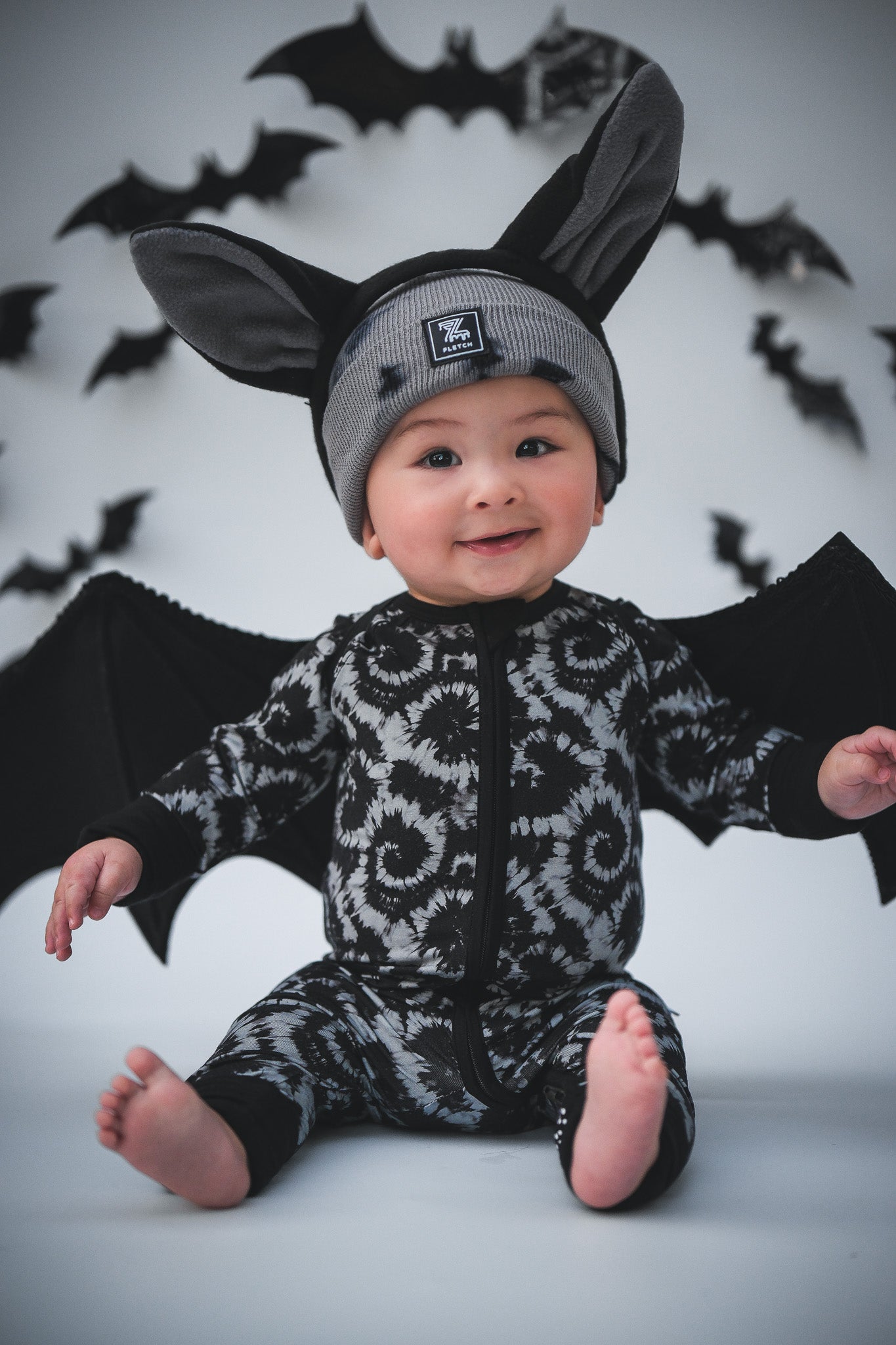This tie-dye design is absolutely killer! The swirled gray and black pattern's so rad, any little dude/dudette will feel the swirl of epic Halloween vibes. It's tie-dye for!