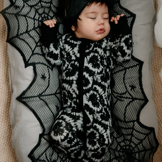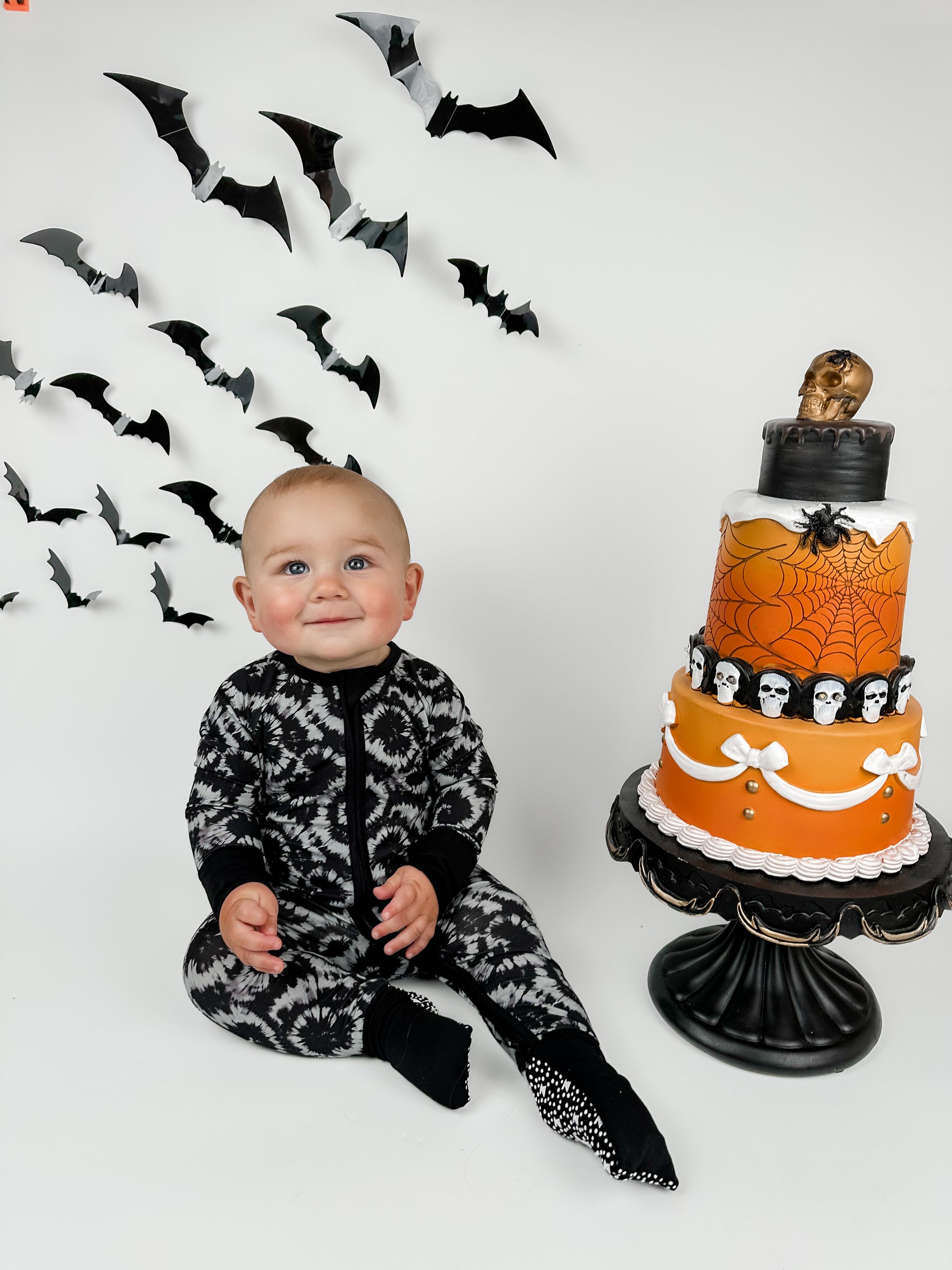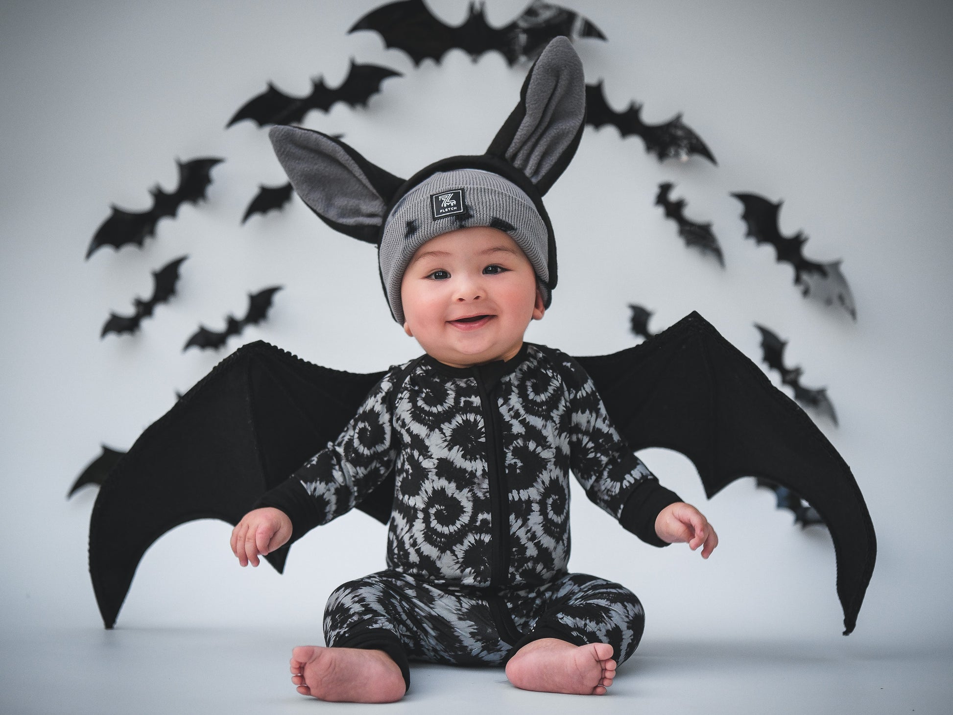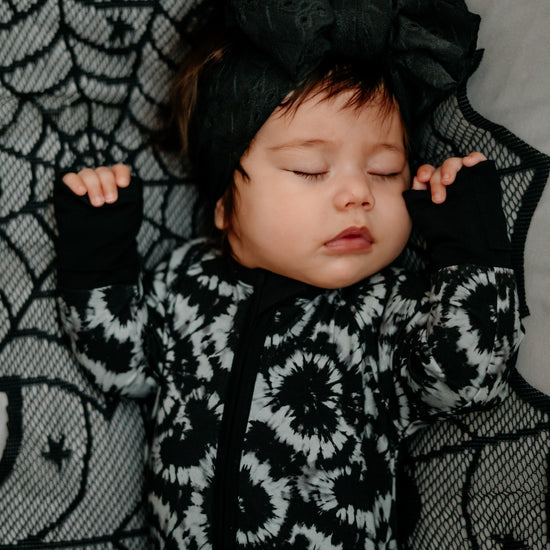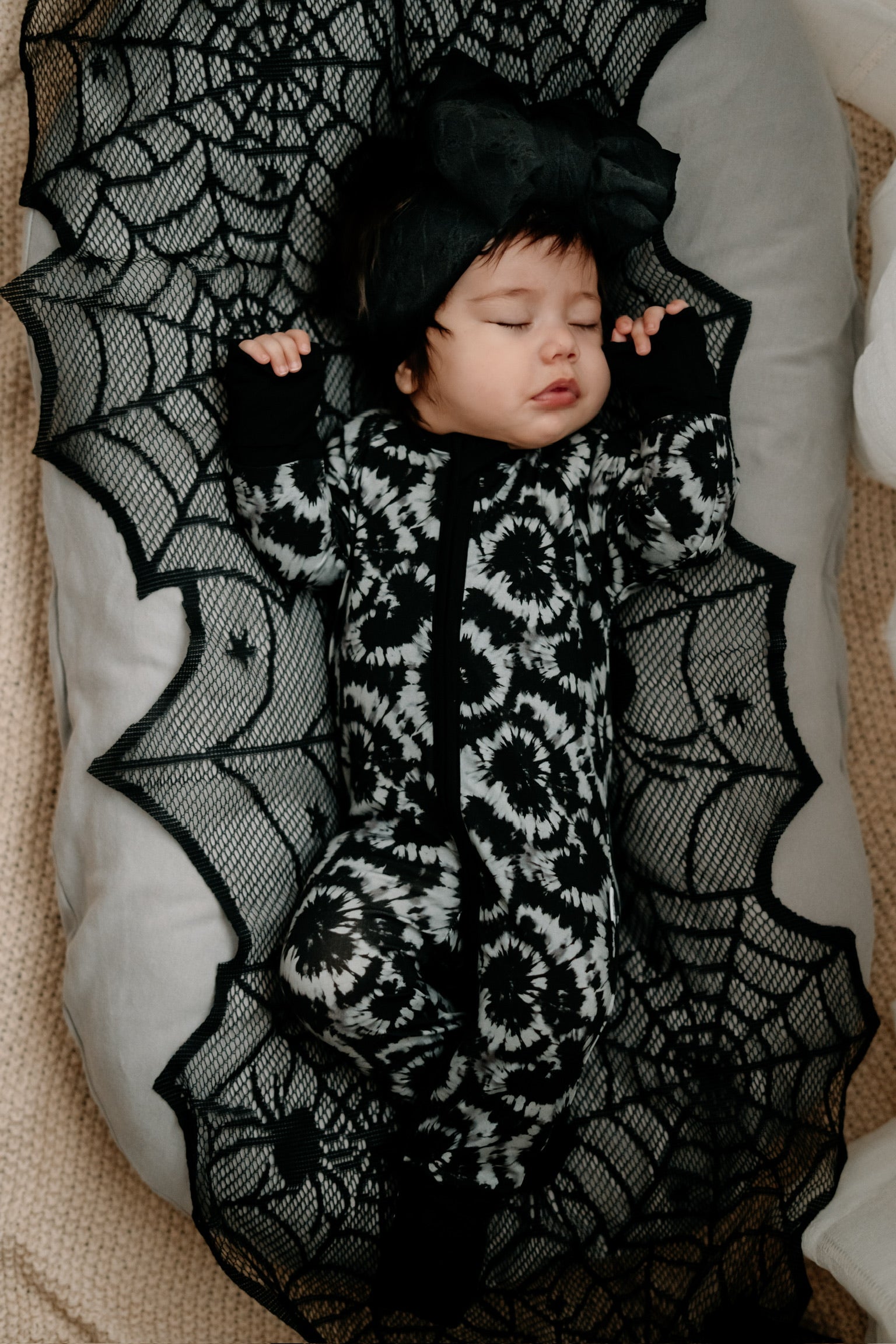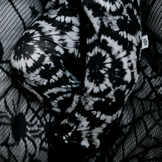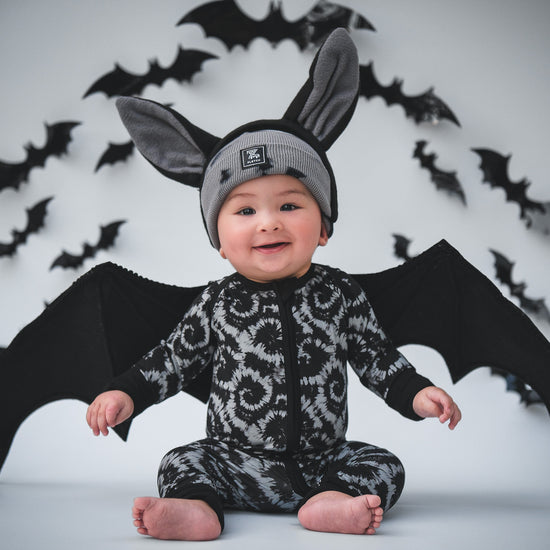 This tie-dye design is absolutely killer! The swirled gray and black pattern's so rad, any little dude/dudette will feel the swirl of epic Halloween vibes. It's tie-dye for!