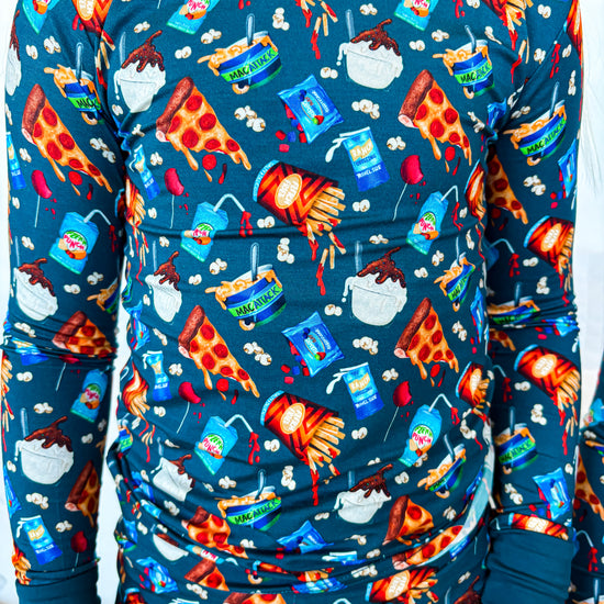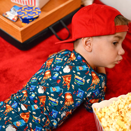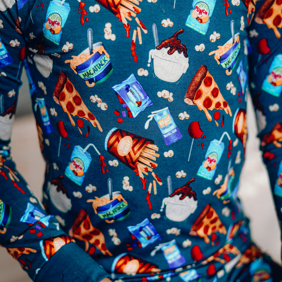 Let's get this snack party started! This epic food groups print serves up all the favorites; pizza slices, golden fries, epic burgers, and icy popsicles make this design a treat. Get popcorn ready for movie night, and cookies perfect for little foodies who appreciate the important food groups - you know, the delicious ones! This playful print brings that carnival, movie theater, and backyard BBQ energy all in one rad design.