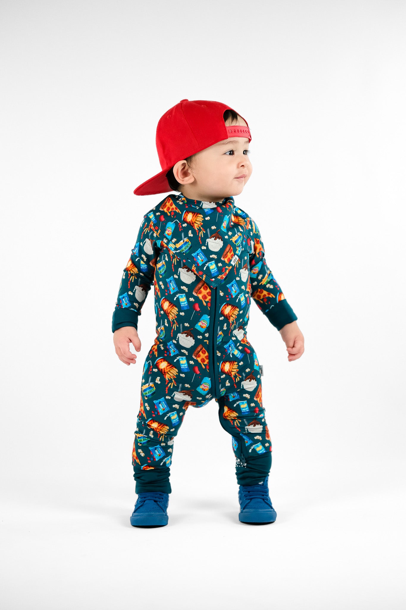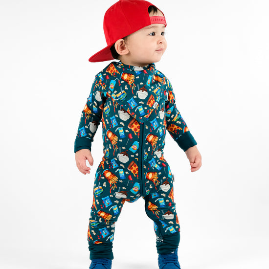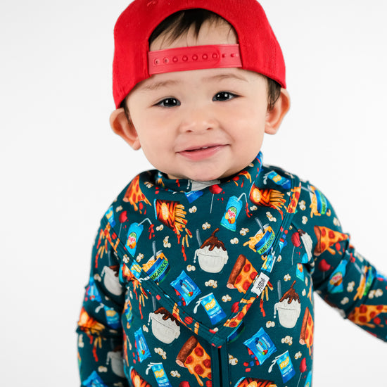 Let's get this snack party started! This epic food groups print serves up all the favorites; pizza slices, golden fries, epic burgers, and icy popsicles make this design a treat. Get popcorn ready for movie night, and cookies perfect for little foodies who appreciate the important food groups - you know, the delicious ones! This playful print brings that carnival, movie theater, and backyard BBQ energy all in one rad design.