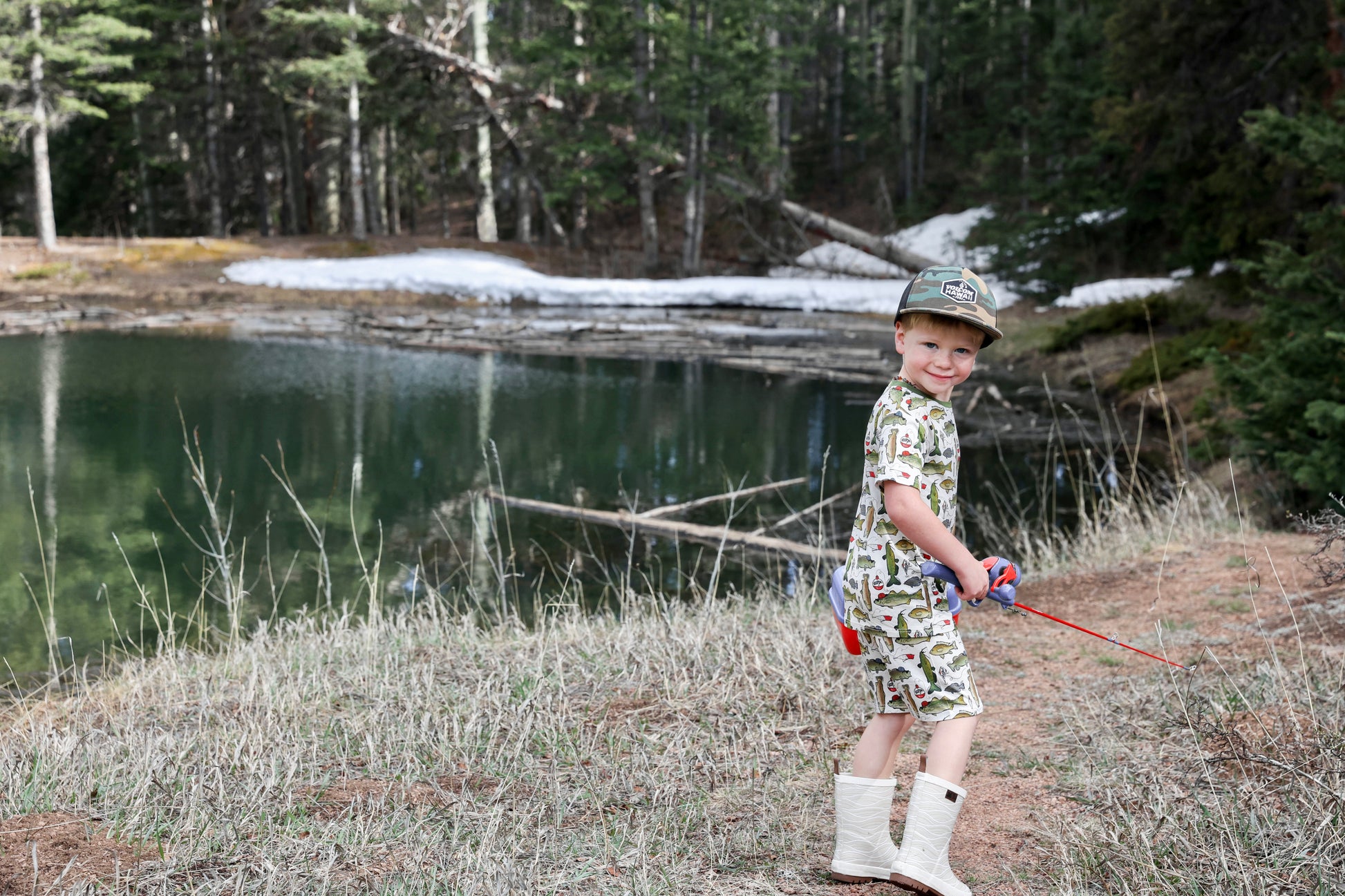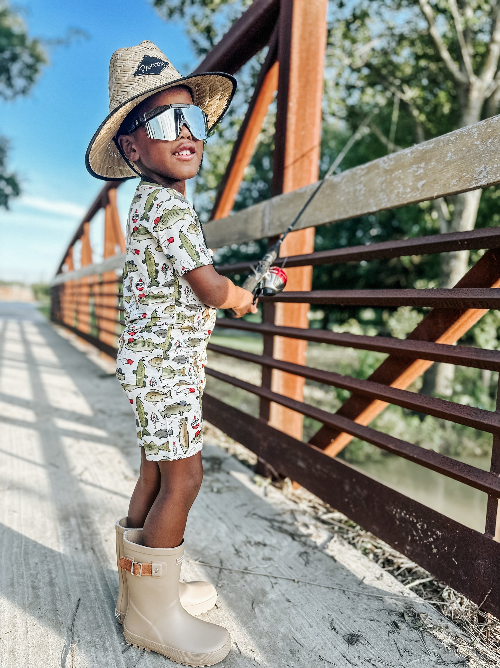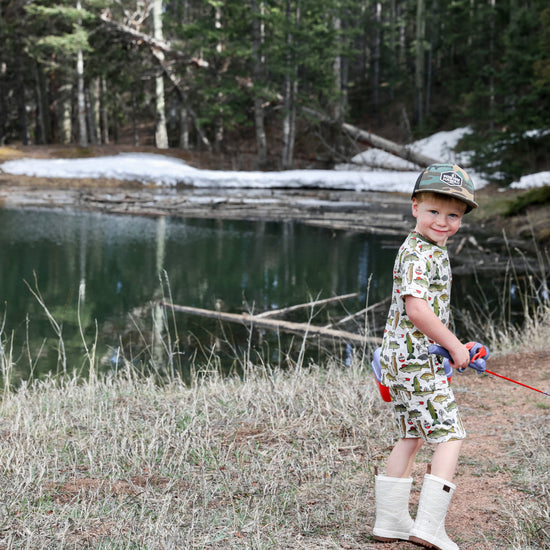 Get hooked on this fishing print by Fletch; it’s one dad and grandpa and the whole outdoor-sy fam will love. Featuring fishhooks, fishing poles and big catches, your kiddo will be “keepin it reel” 24/7. Get ready to hop in the boat and enjoy the sunshine!